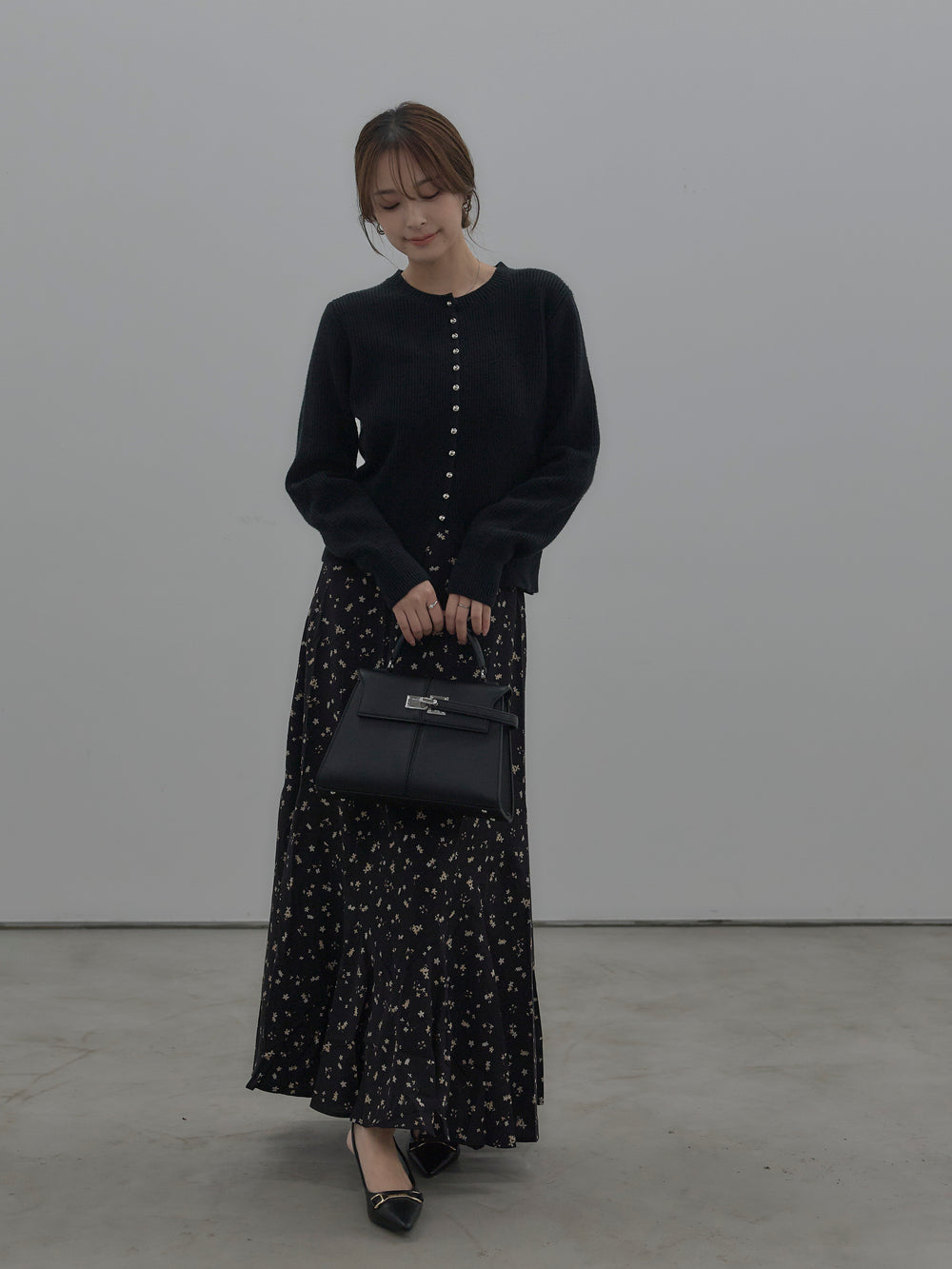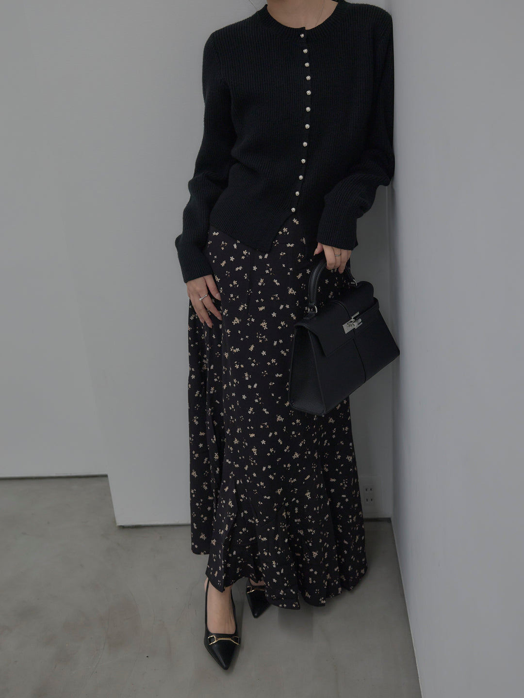 【SET】メタルボタンリブニットカーディガン+フラワーパターンマーメイドフレアスカート(2set)