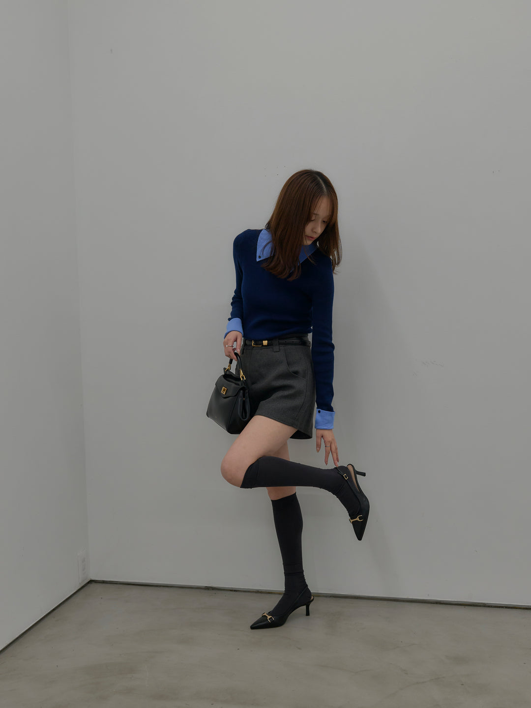 【SET】配色カフスニットポロ+ウールタッチミニショートパンツ(2set)