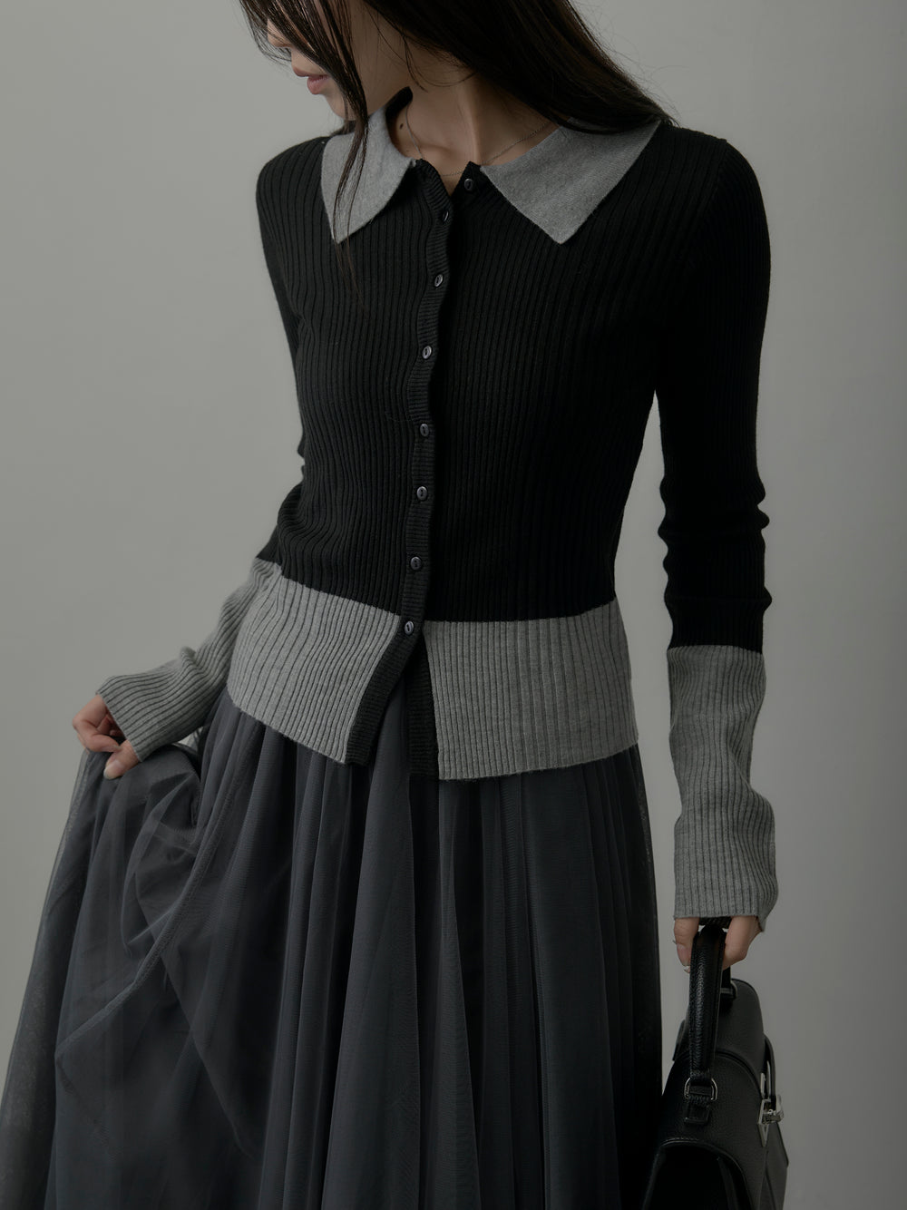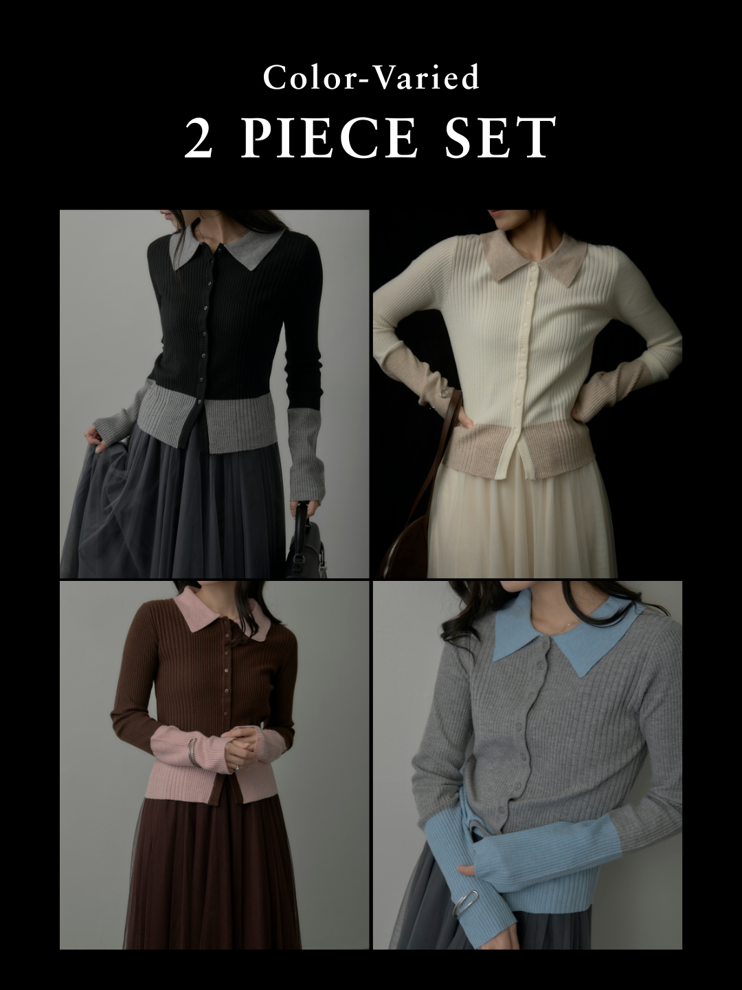 【SET】バイカラーリブニットポロトップス+バイカラーリブニットポロトップス(2set)
