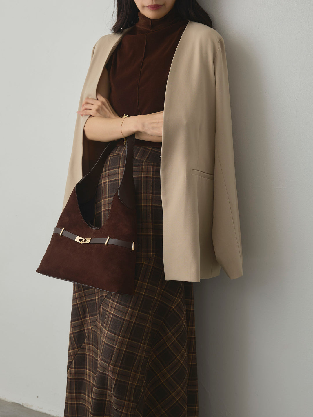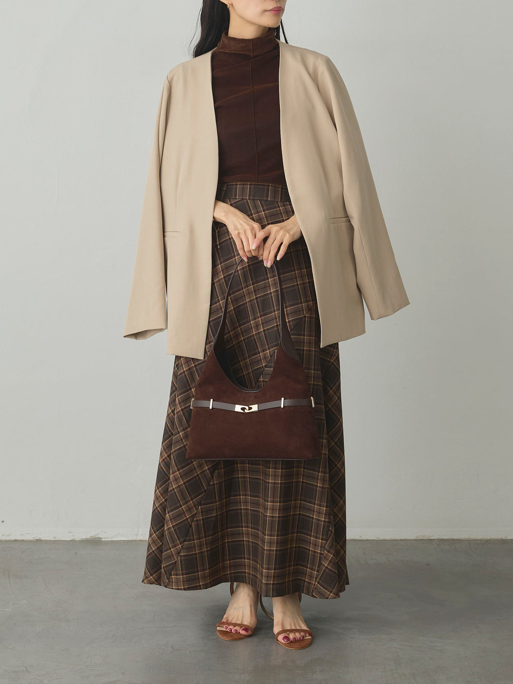 【SET】【Essential】フロントホックノーカラージャケット+クラシカルチェックパネルスカート(2set)