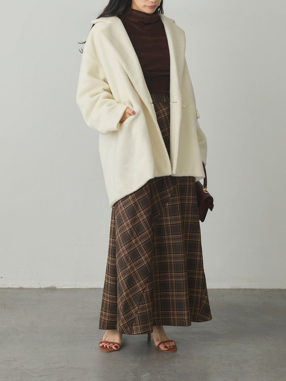 【SET】【Essential】オーバーサイズジャケットコート+クラシカルチェックパネルスカート(2set)