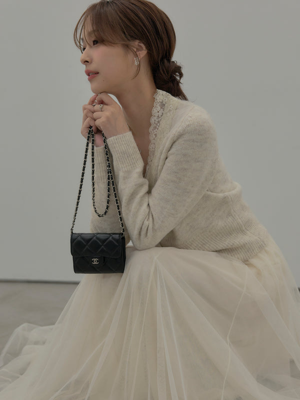 【SET】レース襟ニットトップス+ボリュームチュールスカート(2set)
