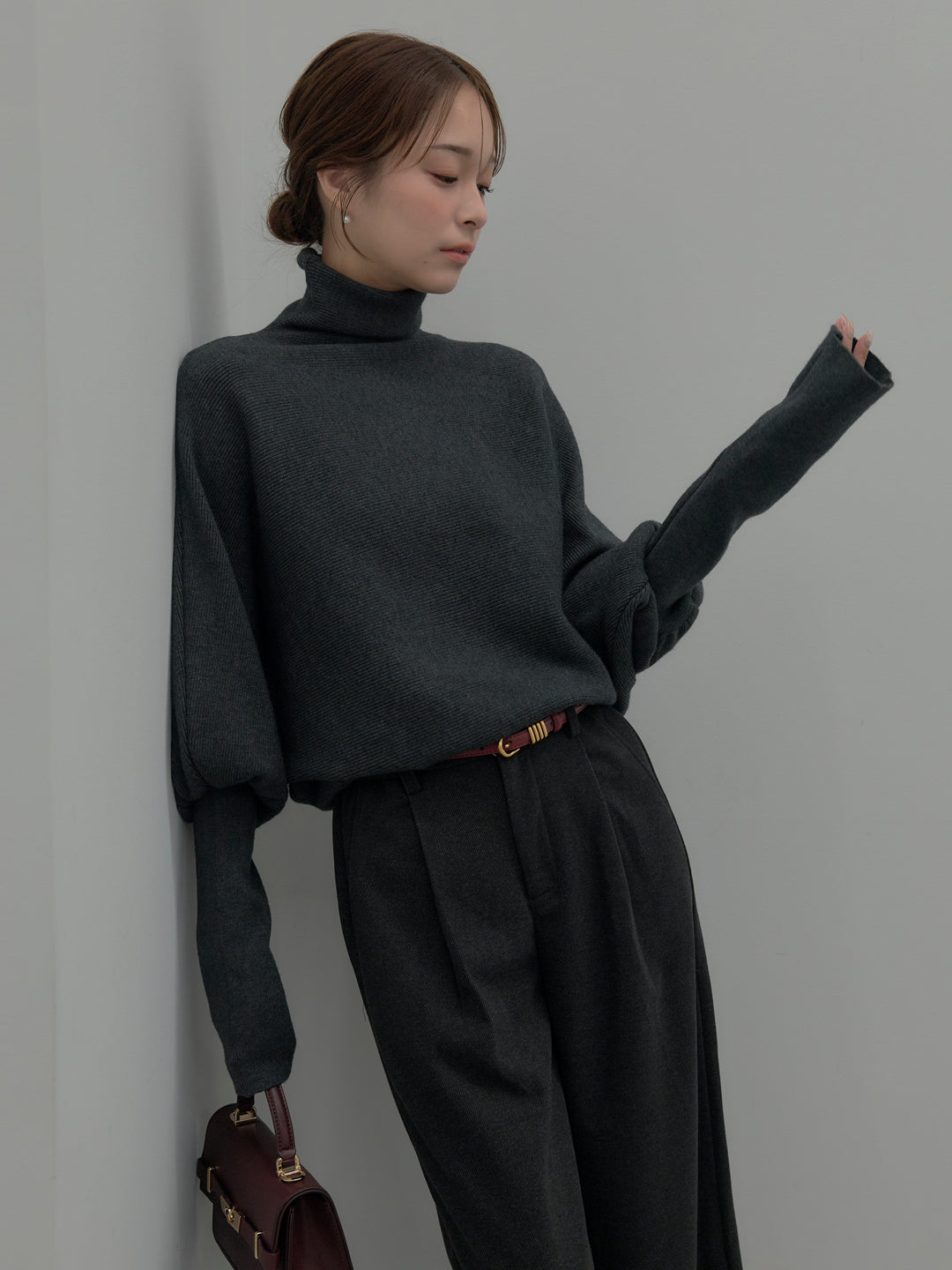 ドルマンハイネックニットトップス