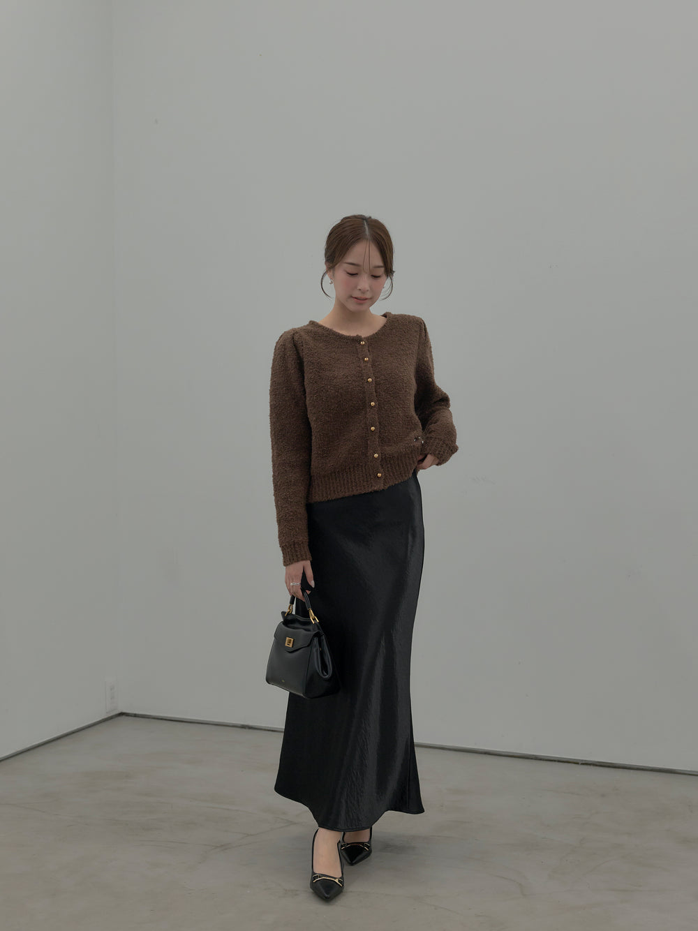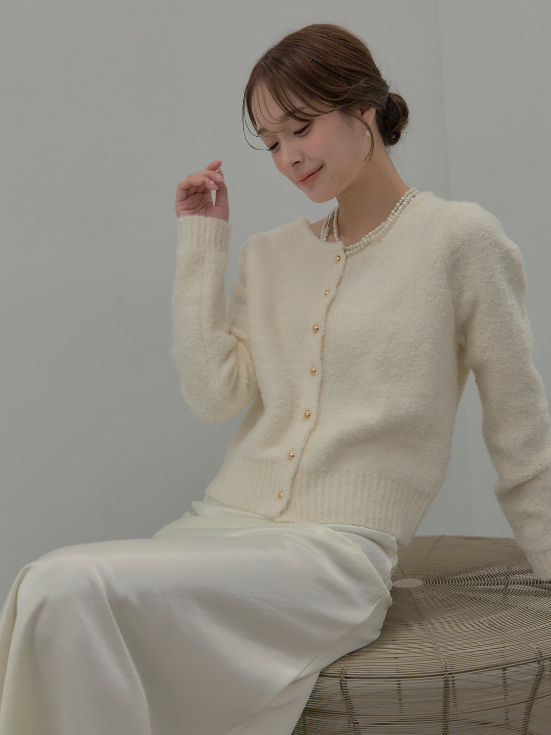 プードルニットパフスリーブカーディガン