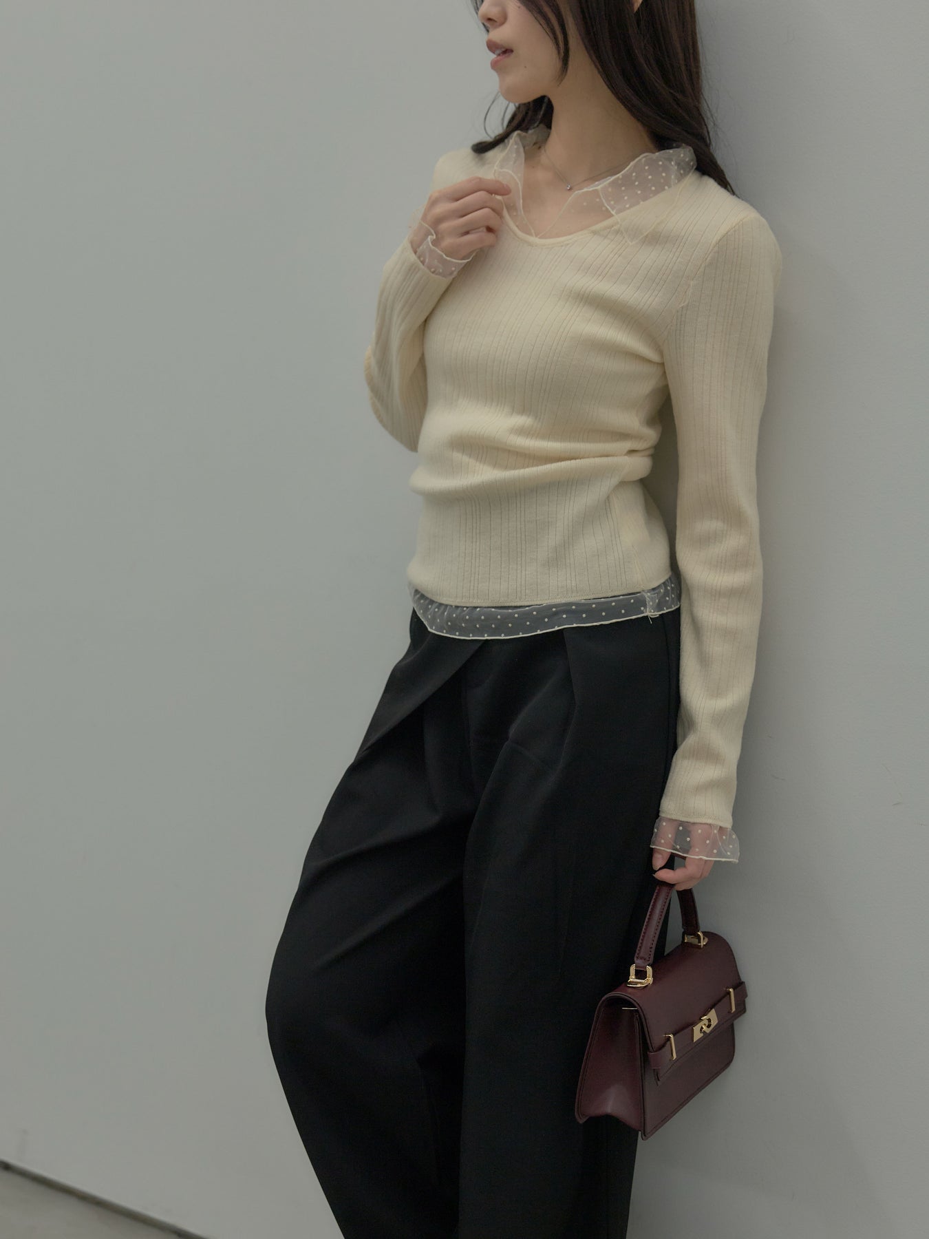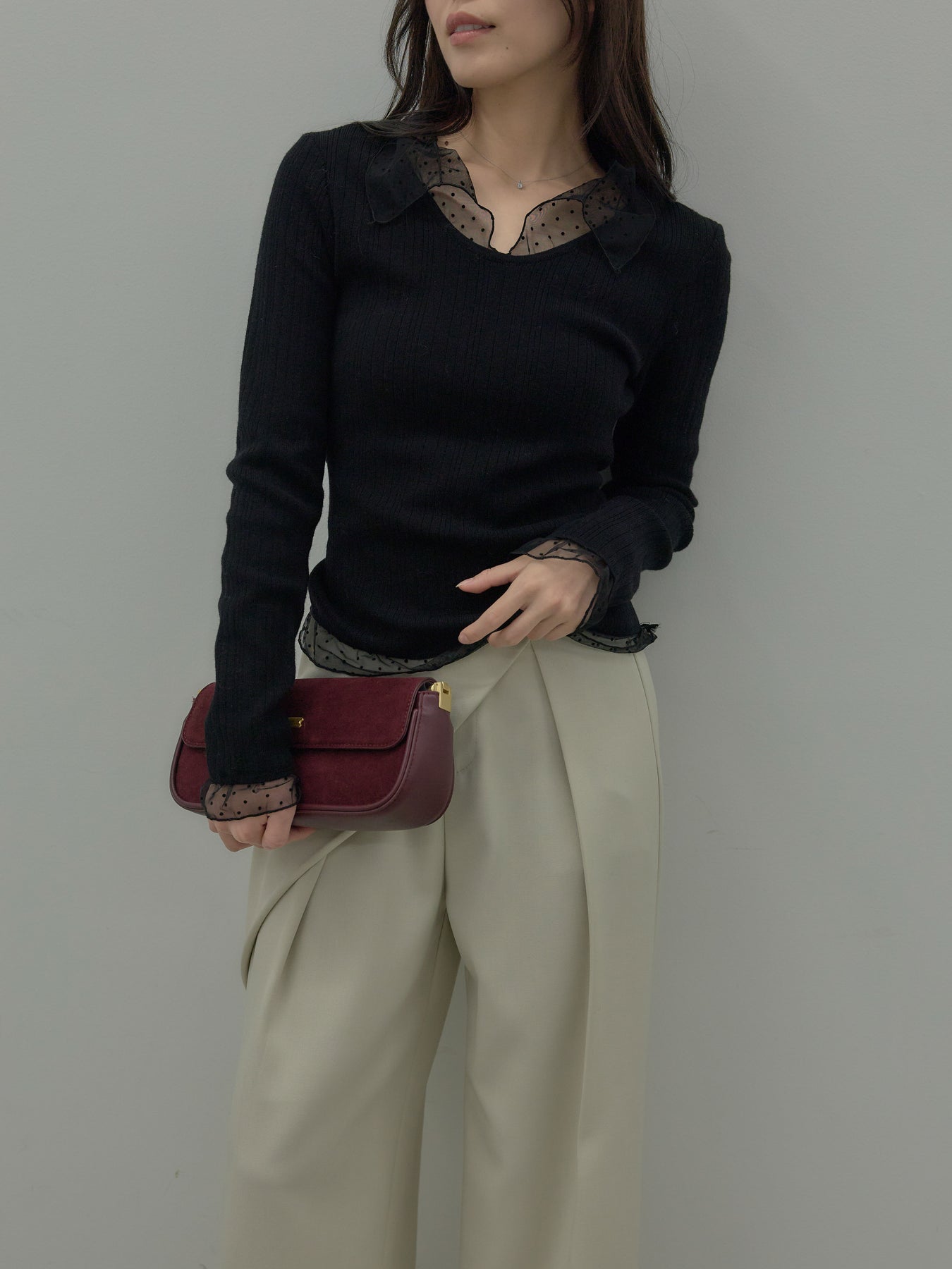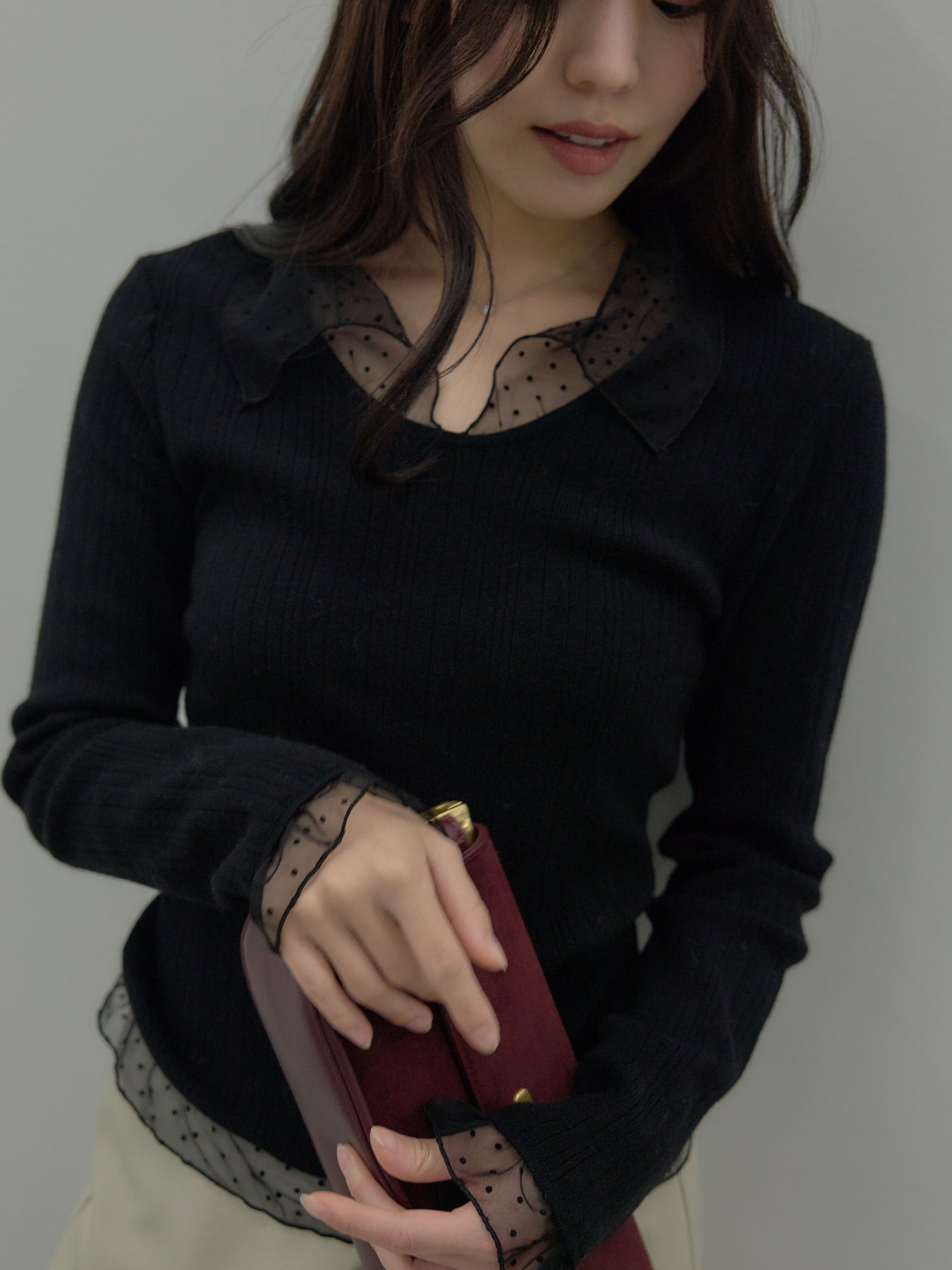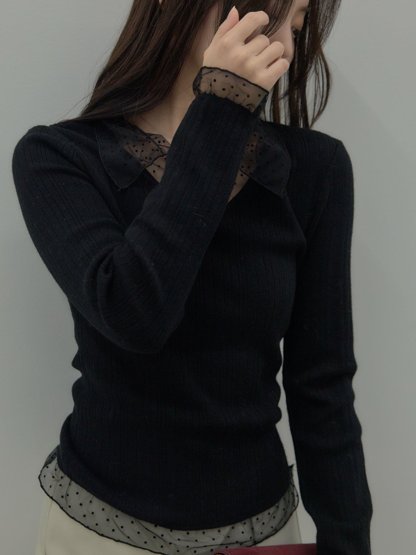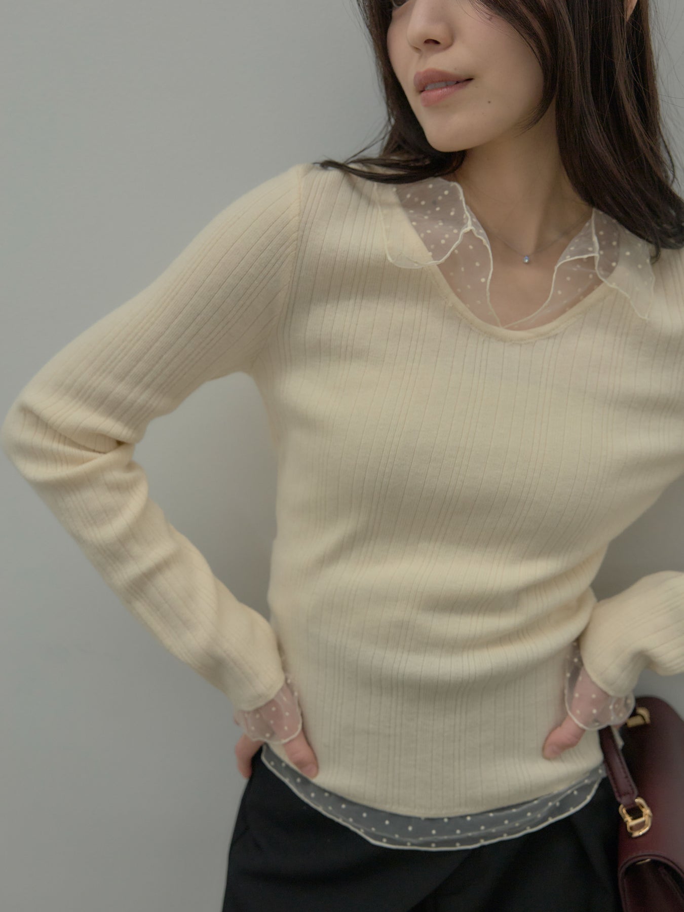ドットチュールデザインニットトップス
