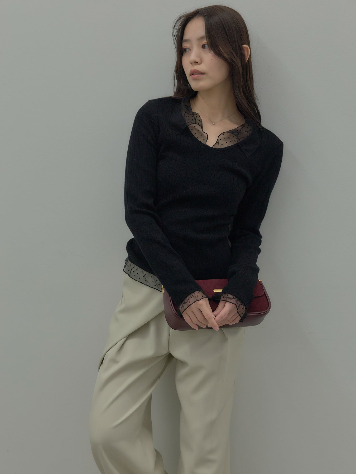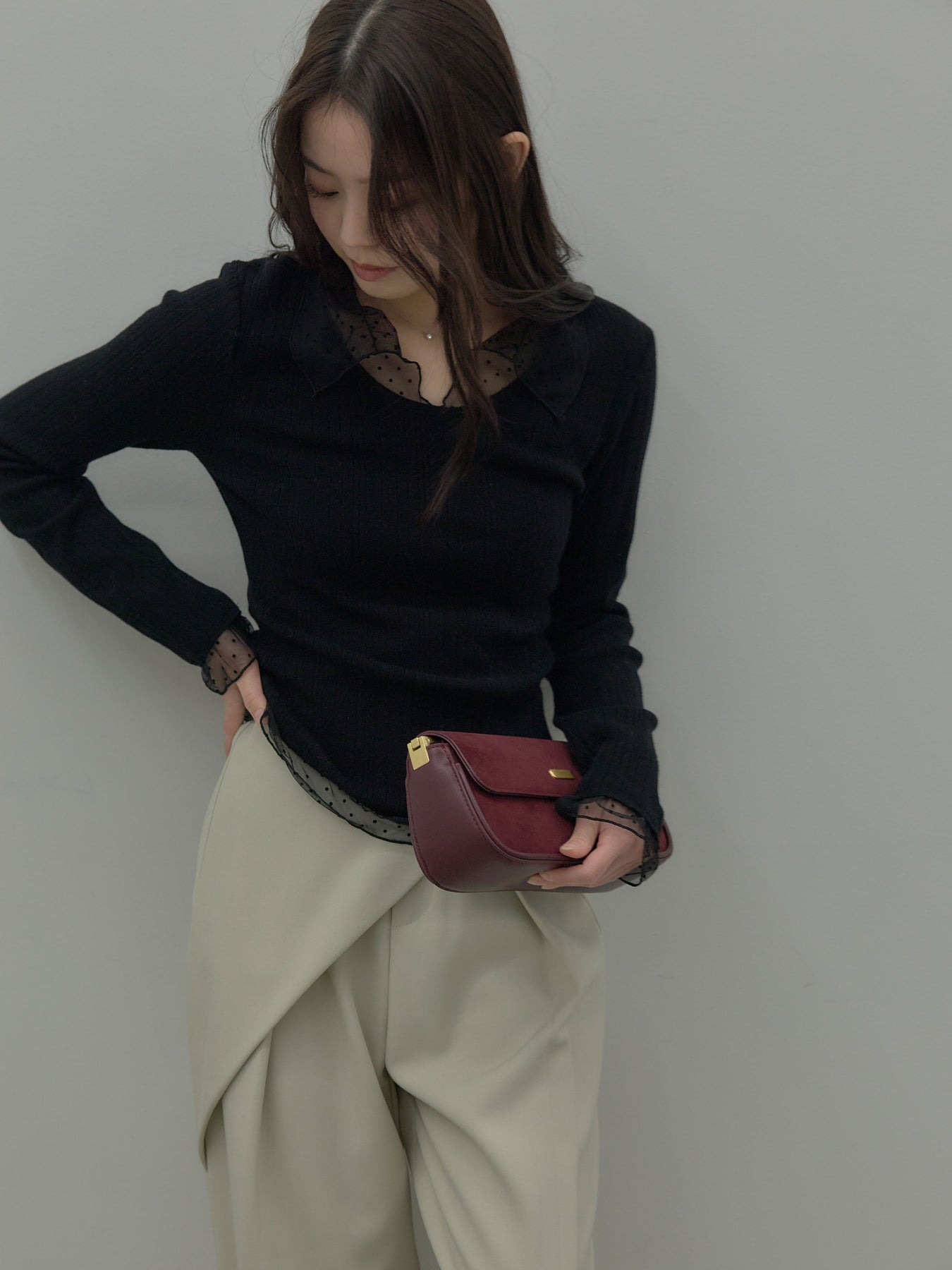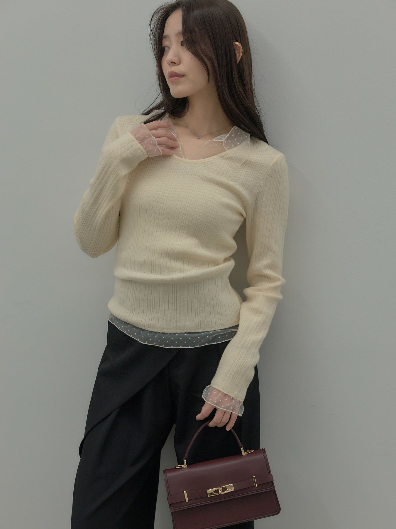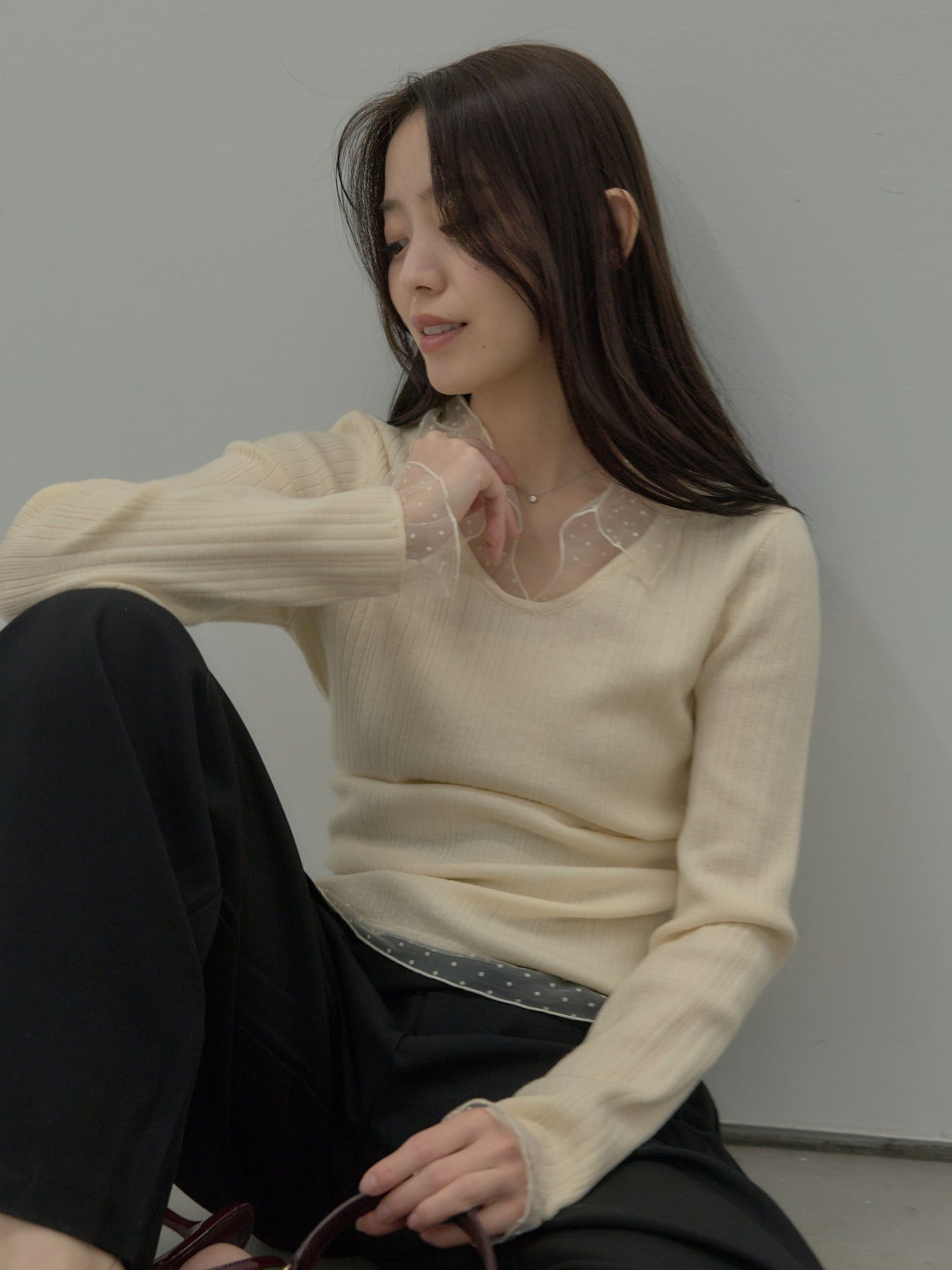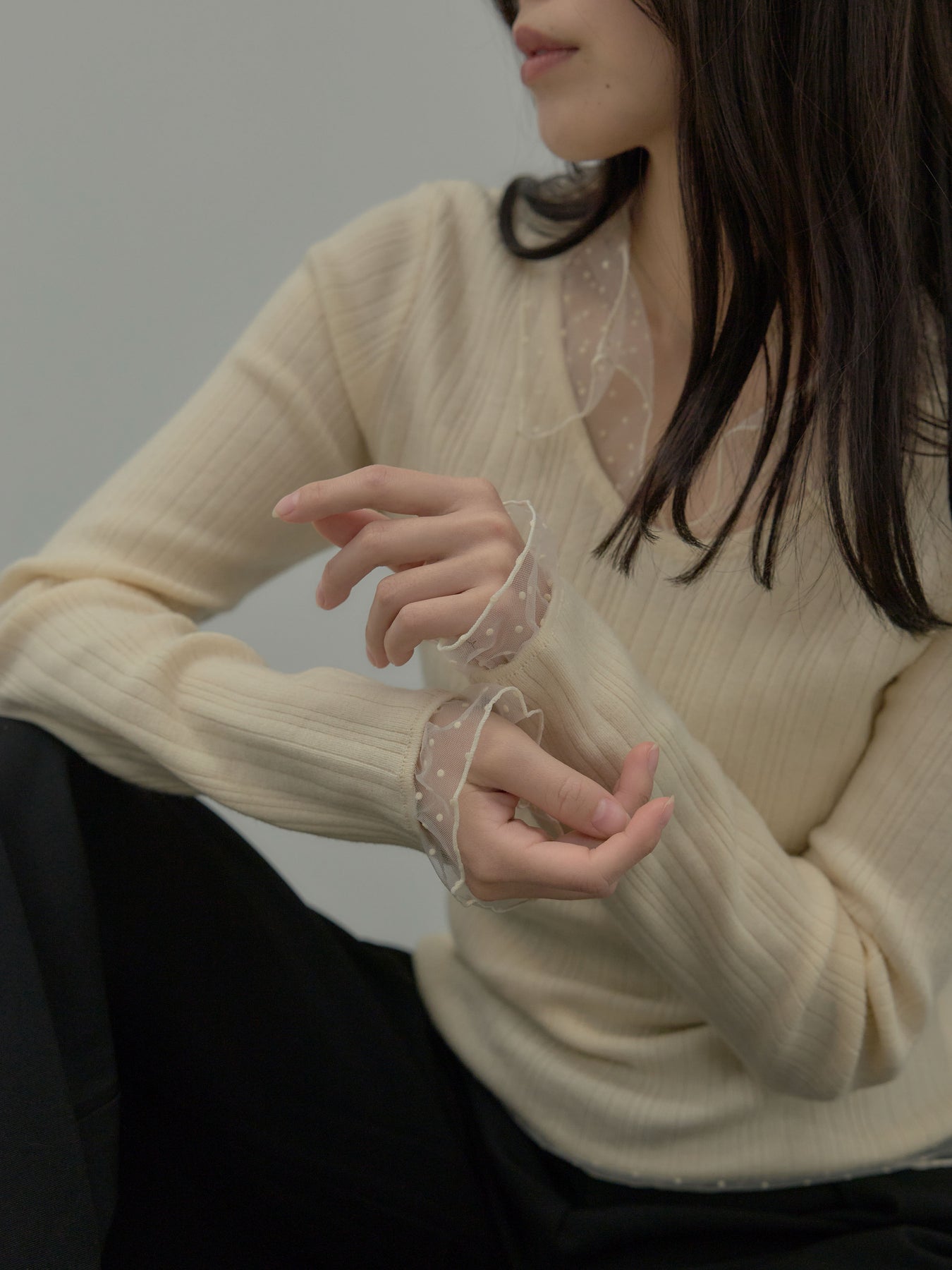 ドットチュールデザインニットトップス