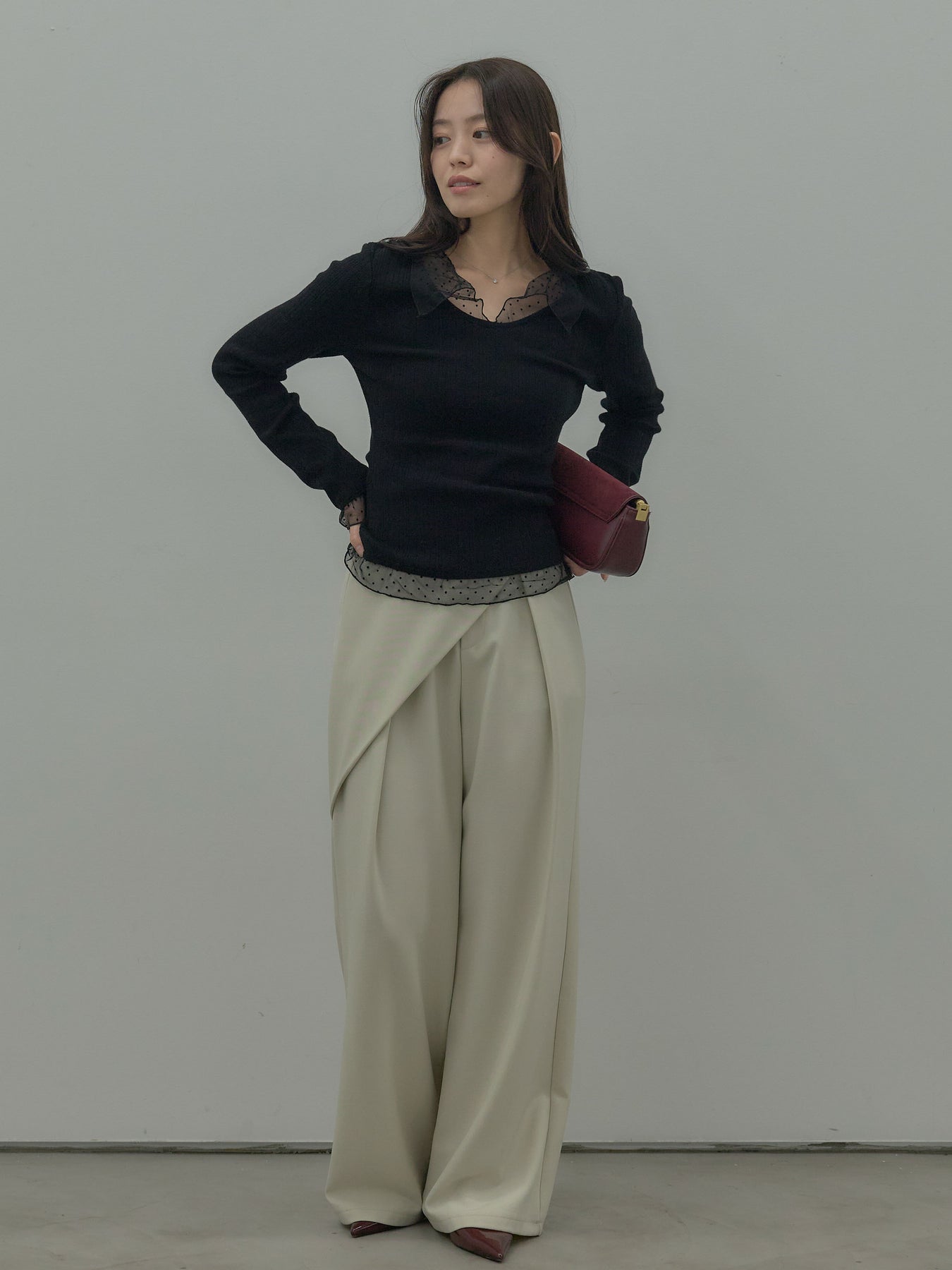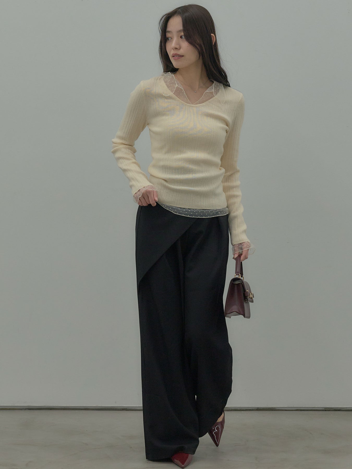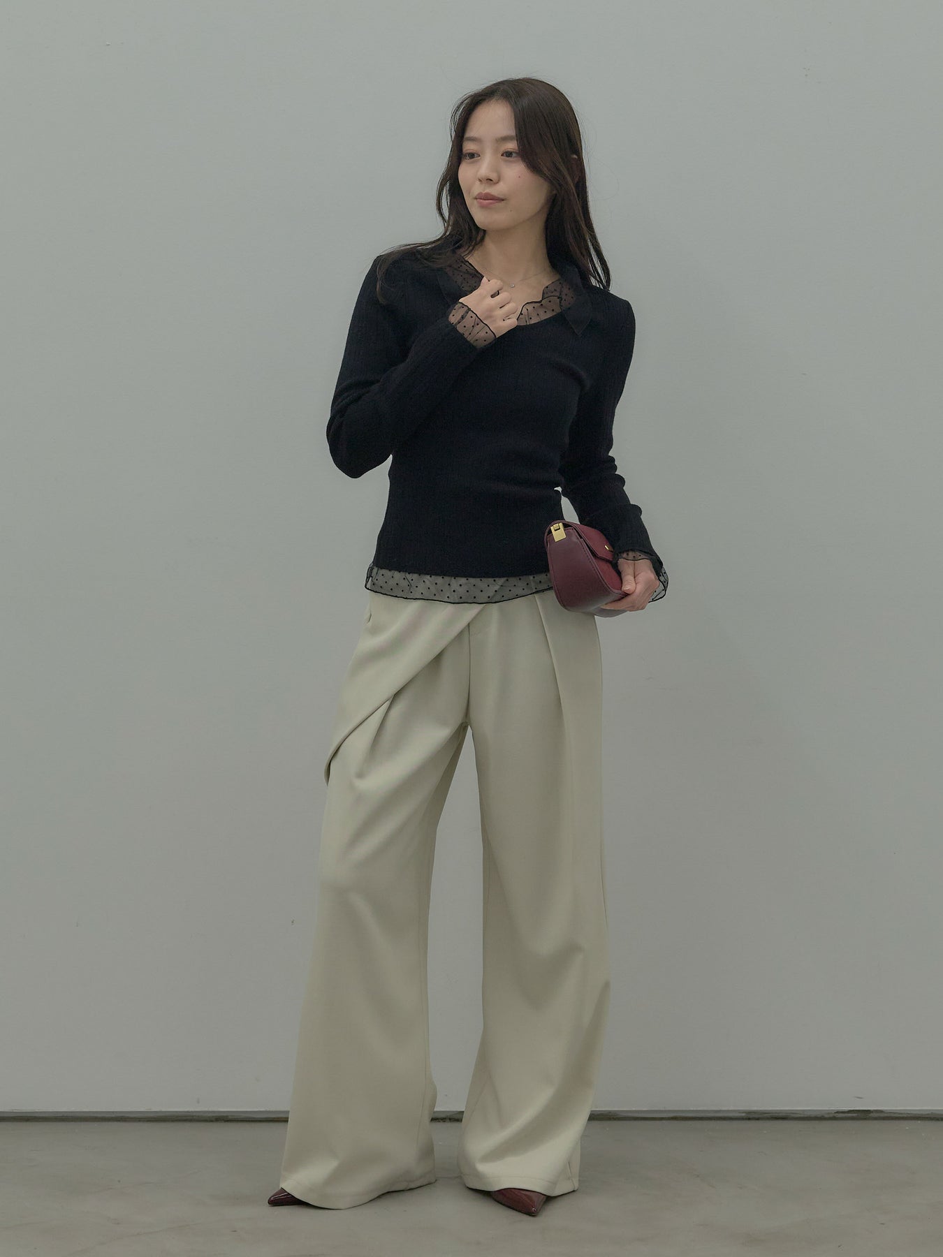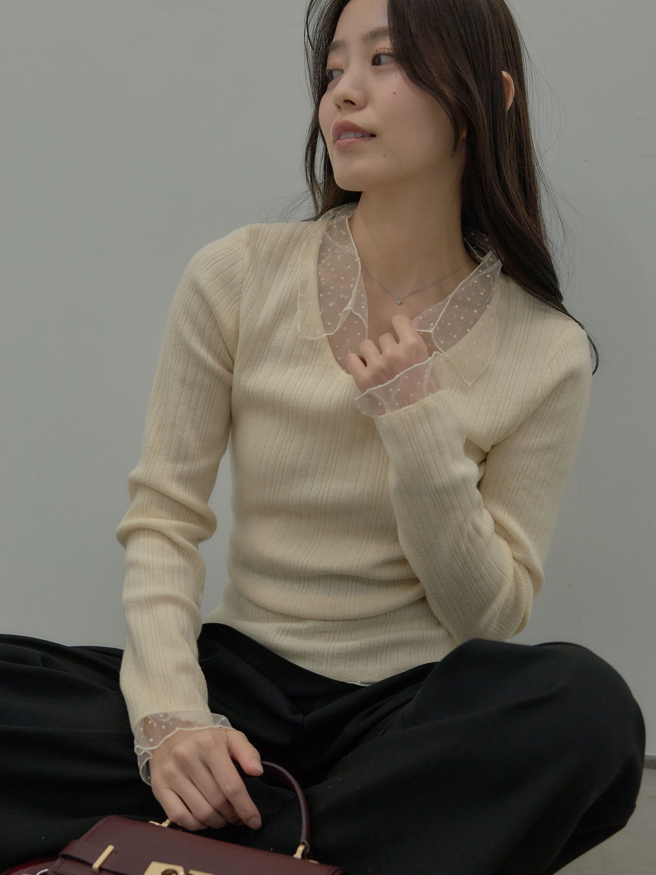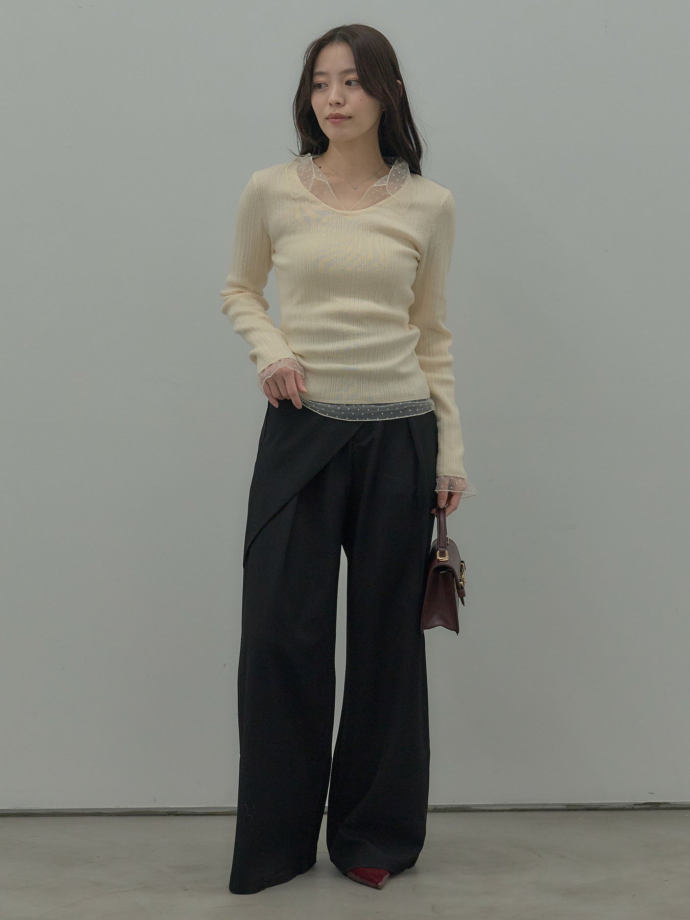 ドットチュールデザインニットトップス
