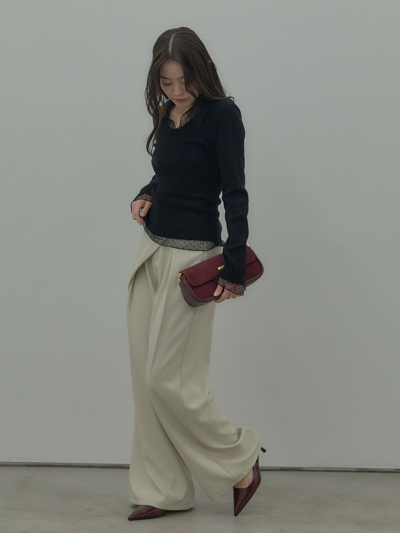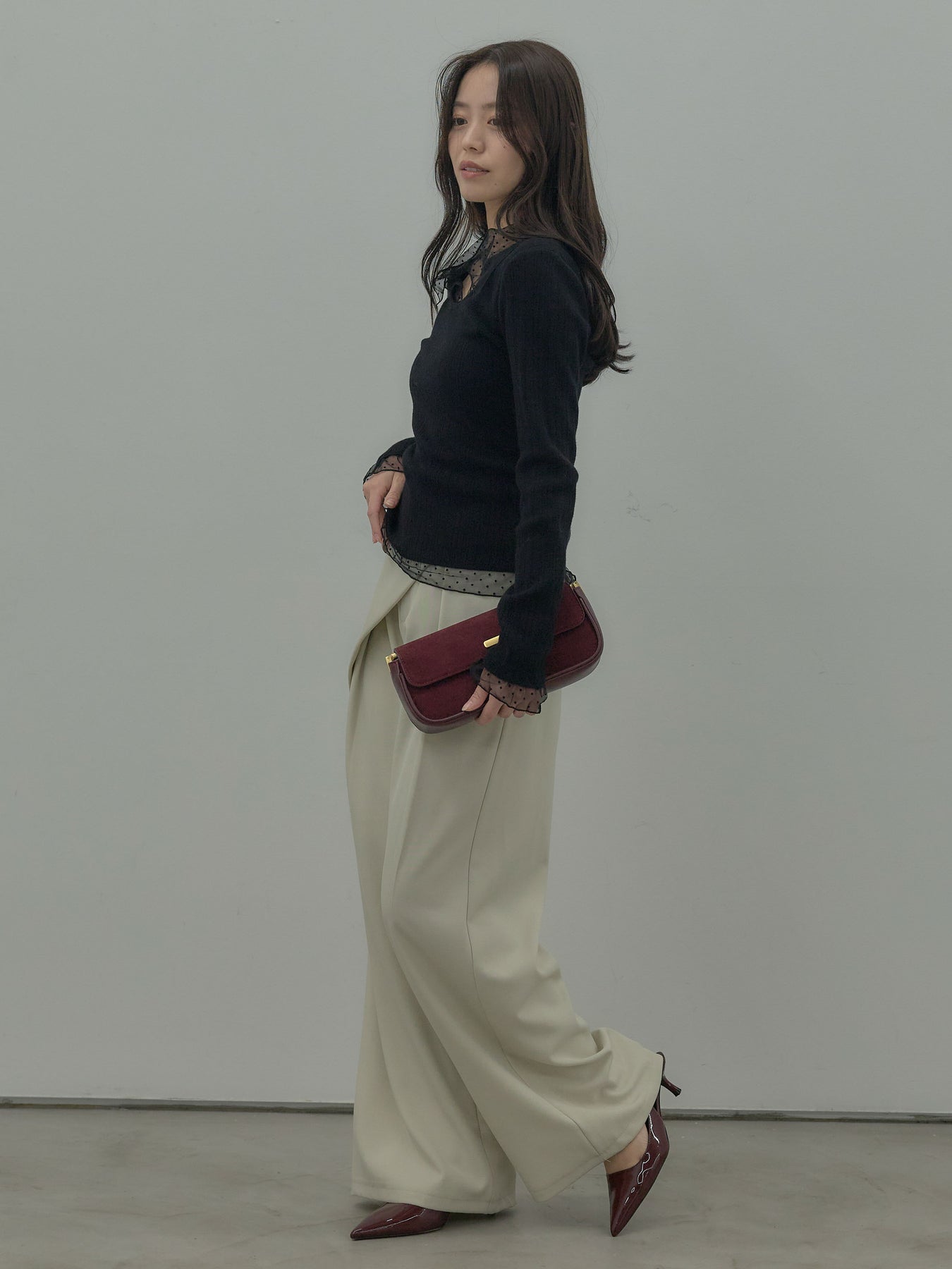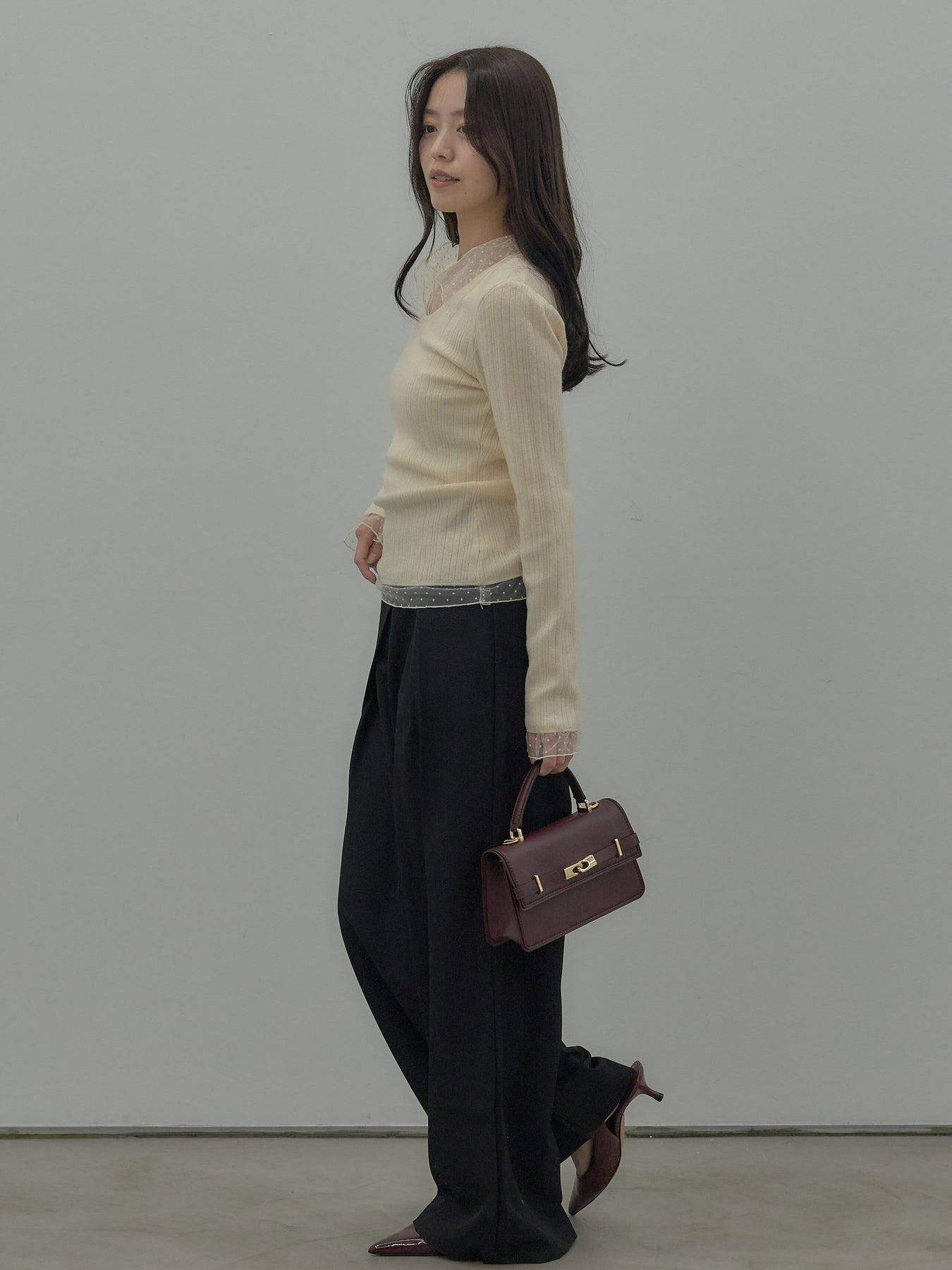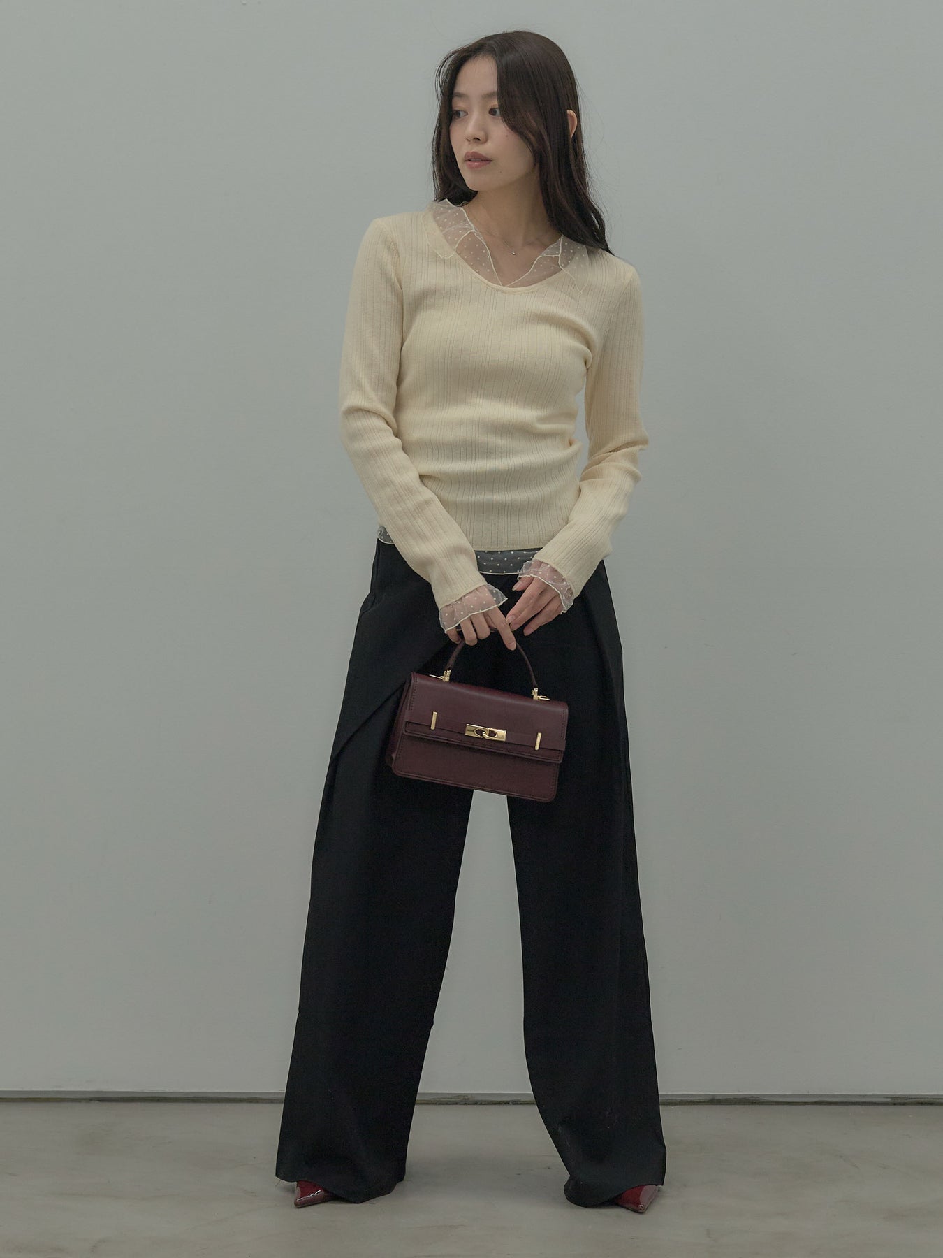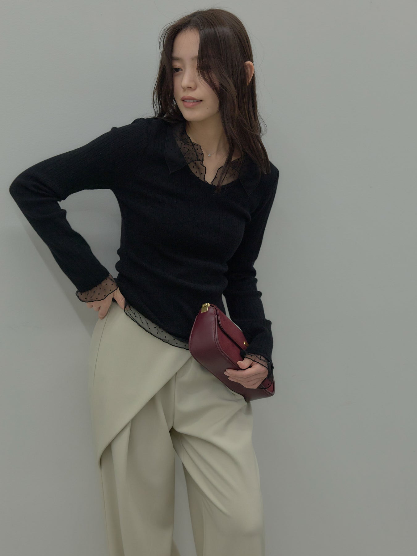 ドットチュールデザインニットトップス