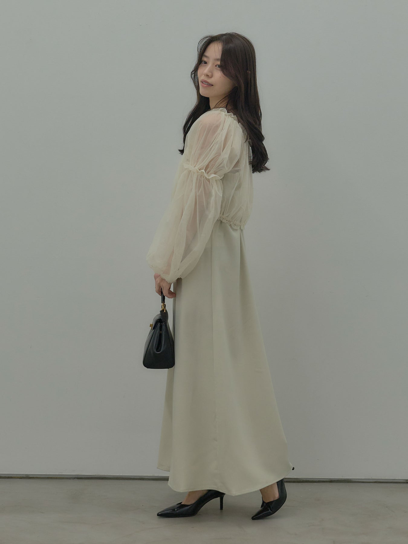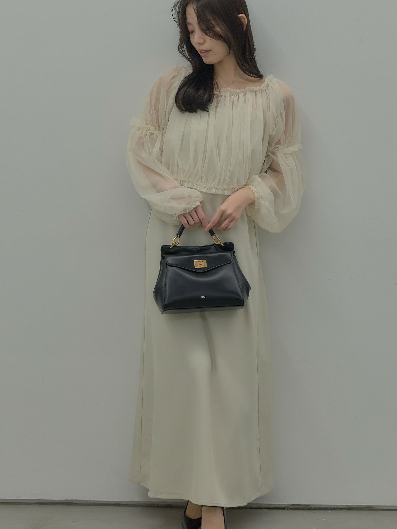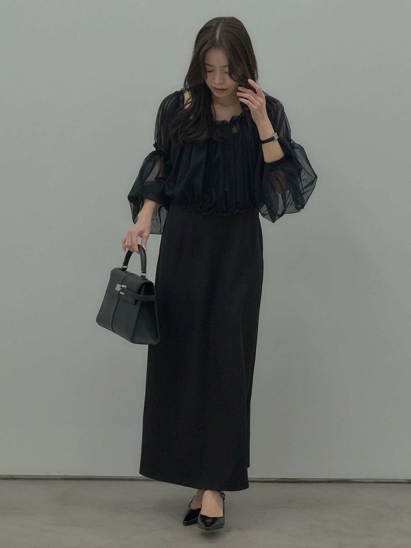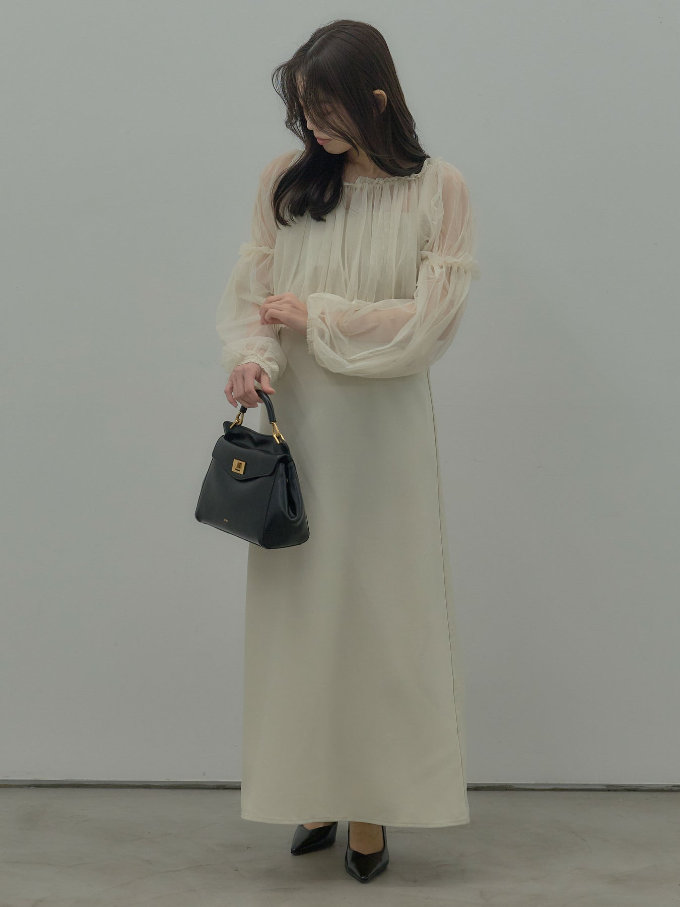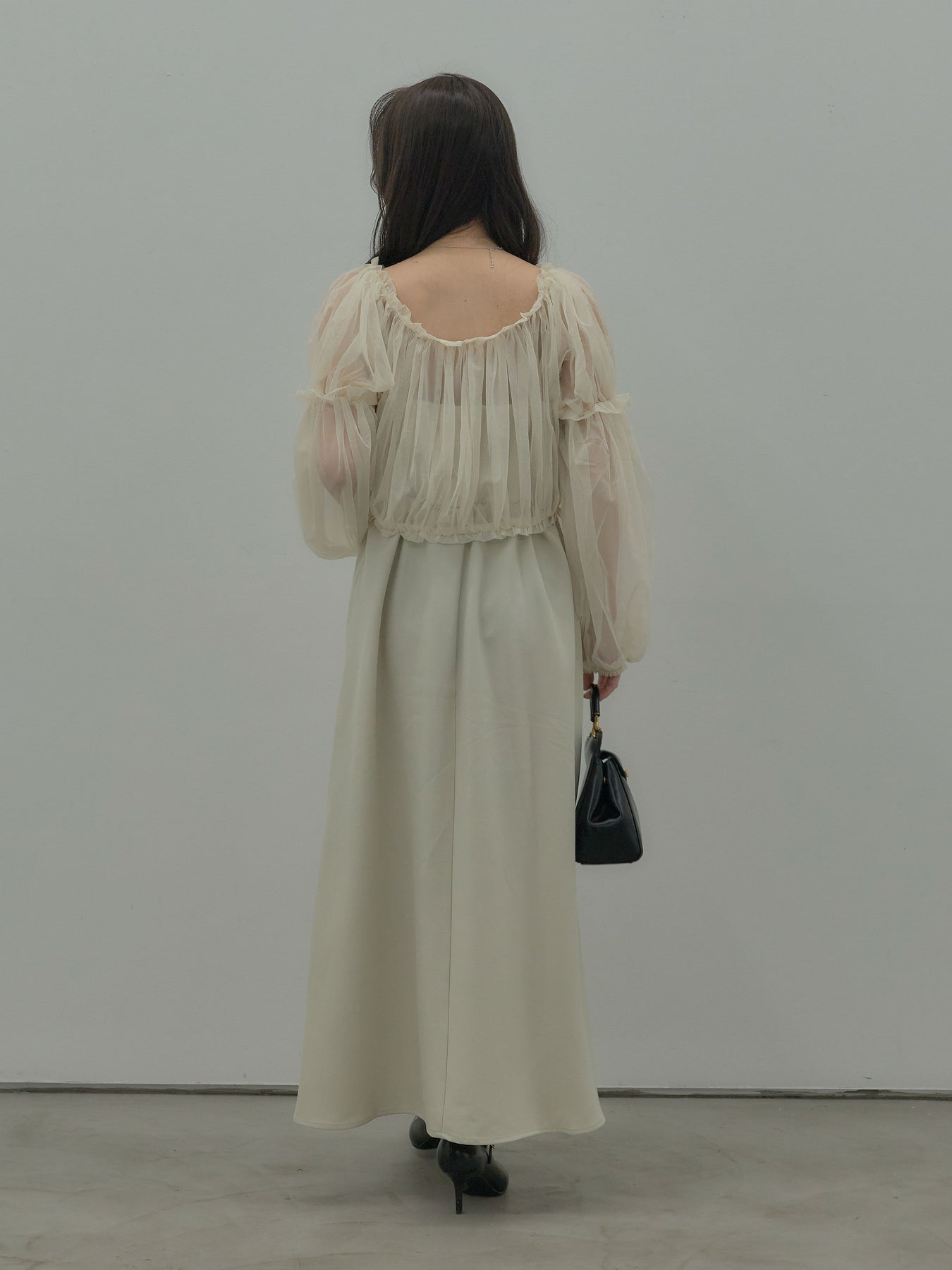 チュールブラウス付きで着こなしの幅が広がる2wayワンピース。ブラウススタイルとオフショルダースタイルの2wayです。 繊細な透け感が華やかさをプラスし、シーンに合わせて印象チェンジが可能。 一枚で完成度の高いスタイルが叶う、特別感のあるアイテムです。