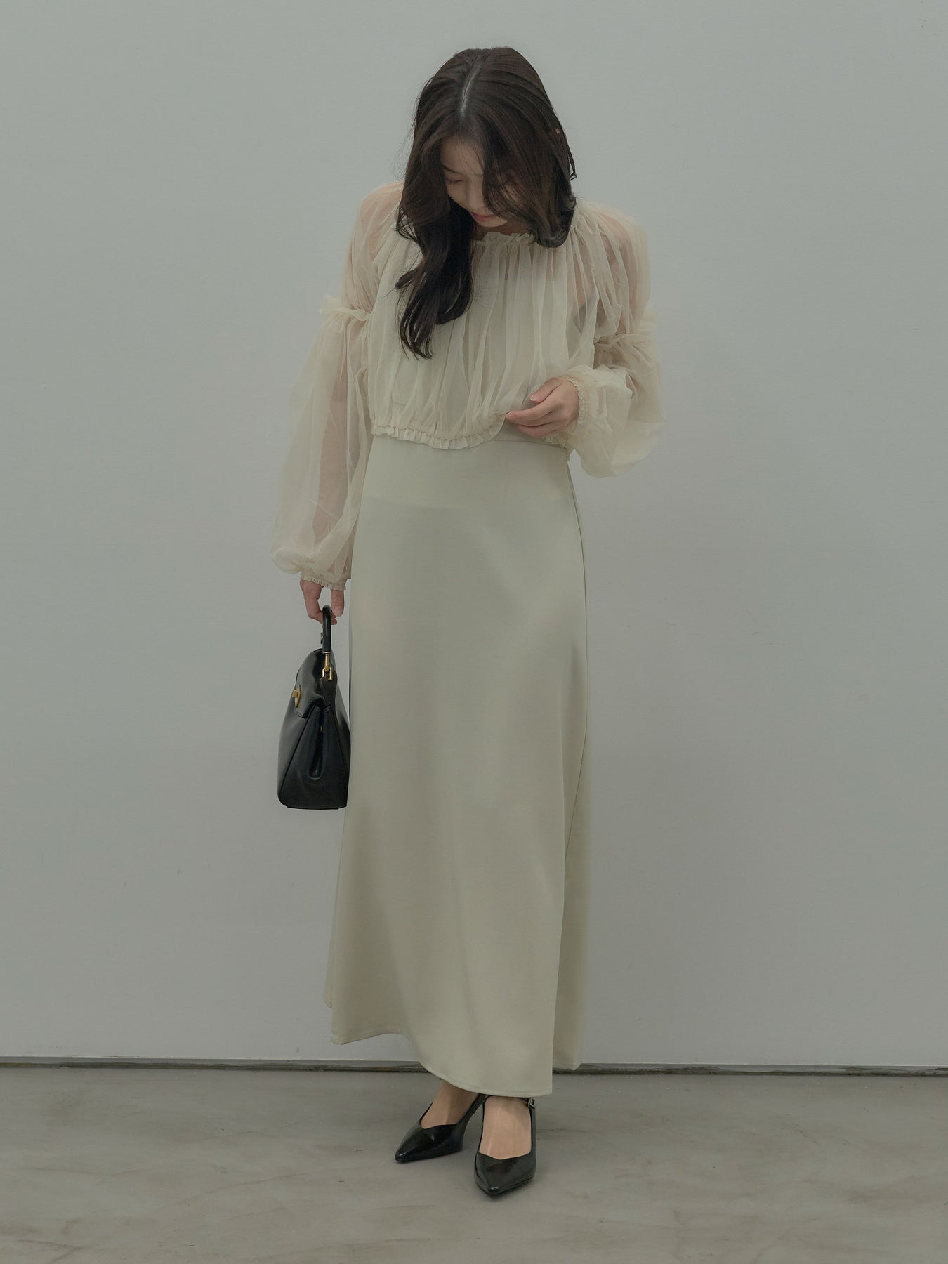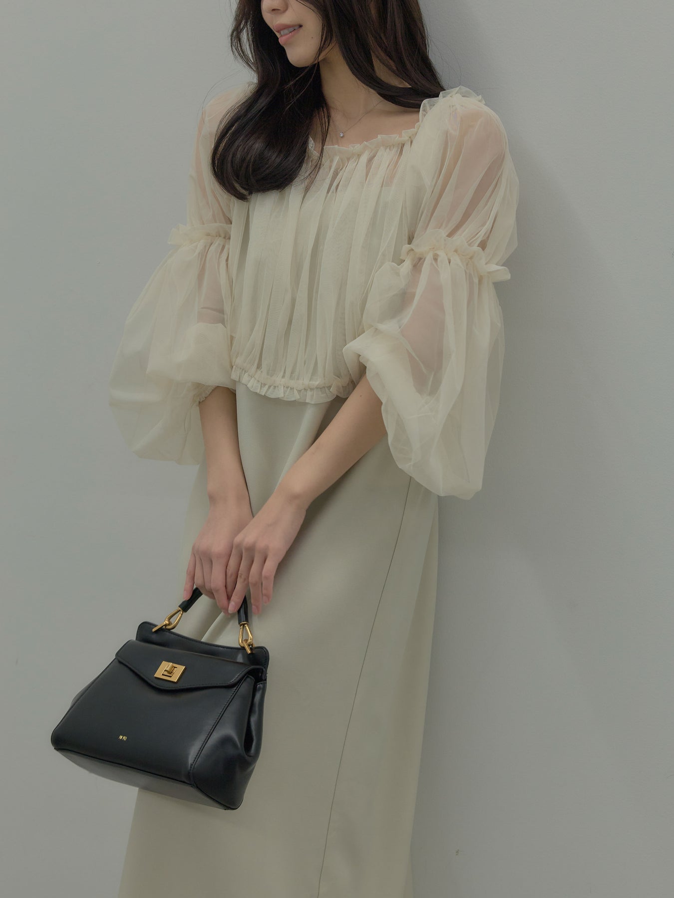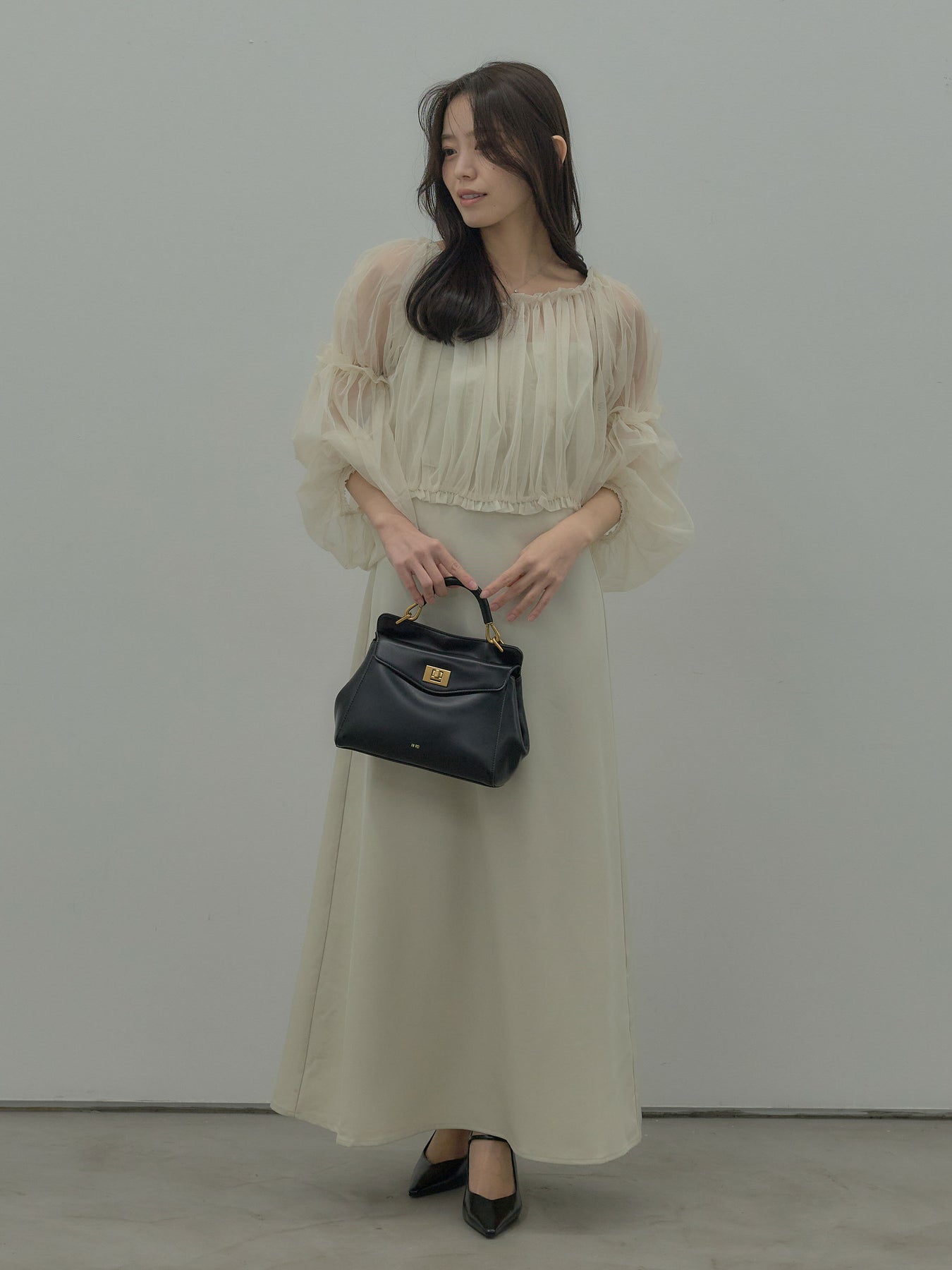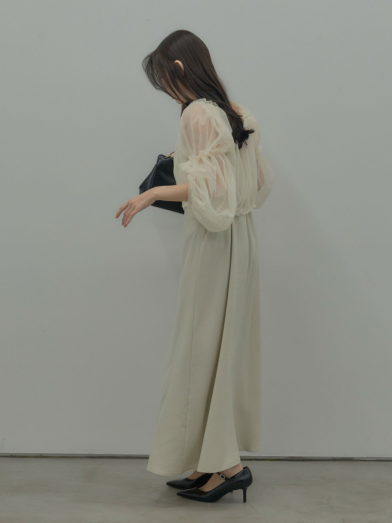 チュールブラウス付きで着こなしの幅が広がる2wayワンピース。ブラウススタイルとオフショルダースタイルの2wayです。 繊細な透け感が華やかさをプラスし、シーンに合わせて印象チェンジが可能。 一枚で完成度の高いスタイルが叶う、特別感のあるアイテムです。