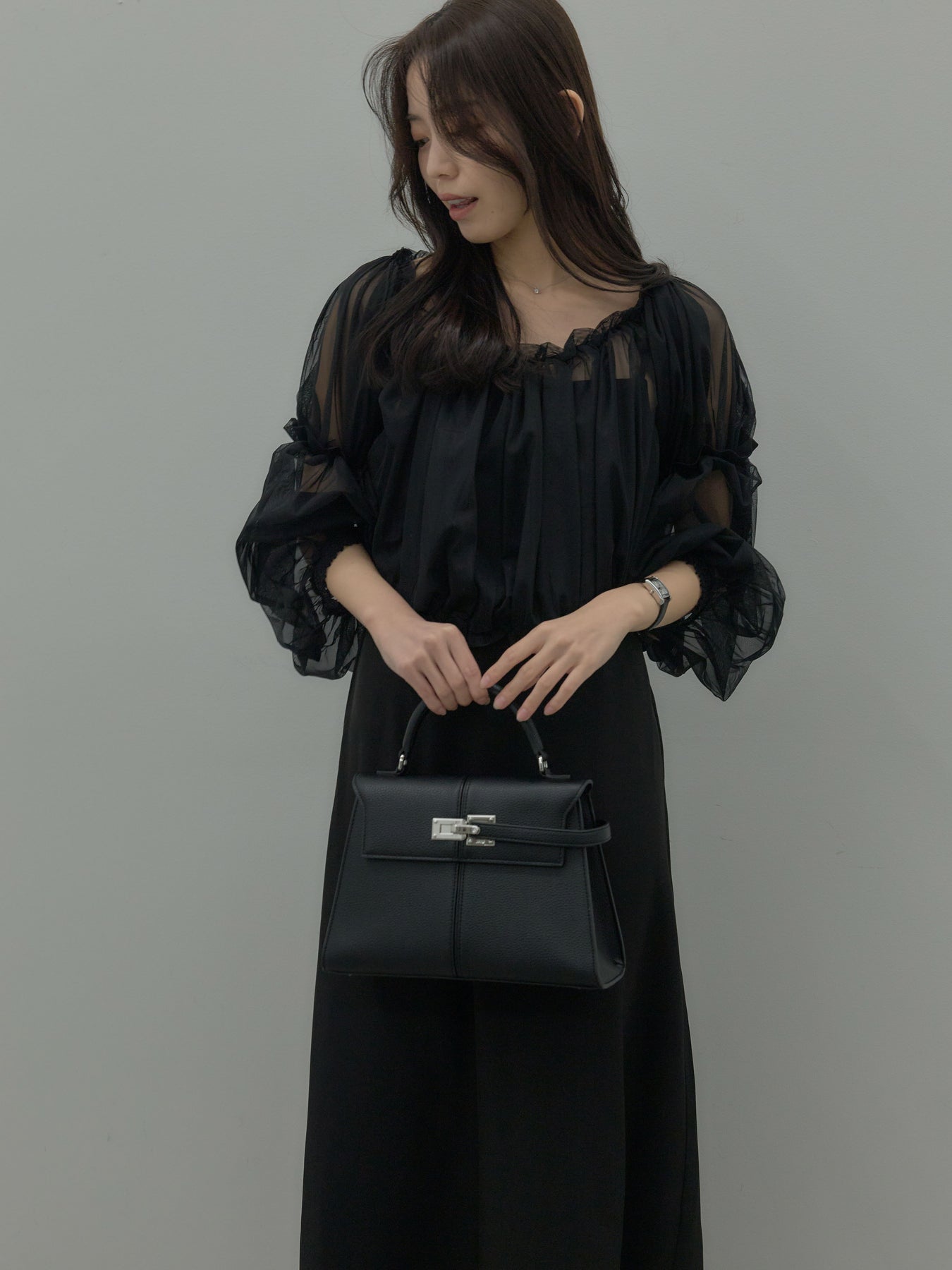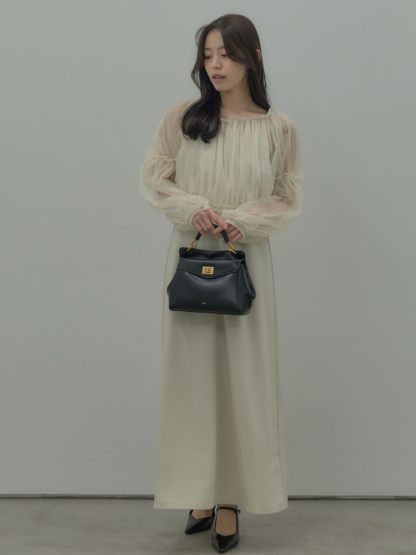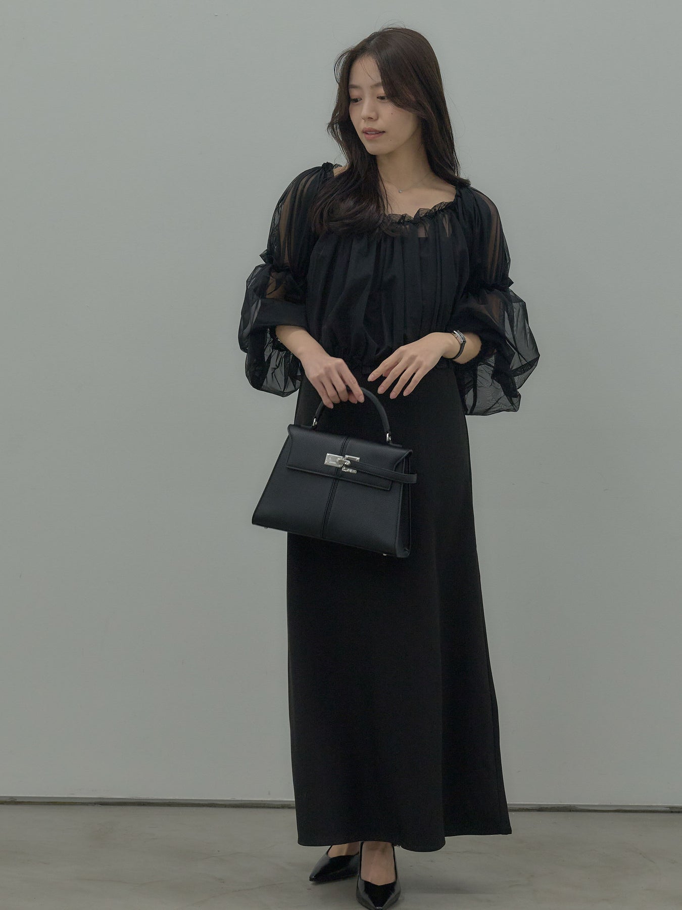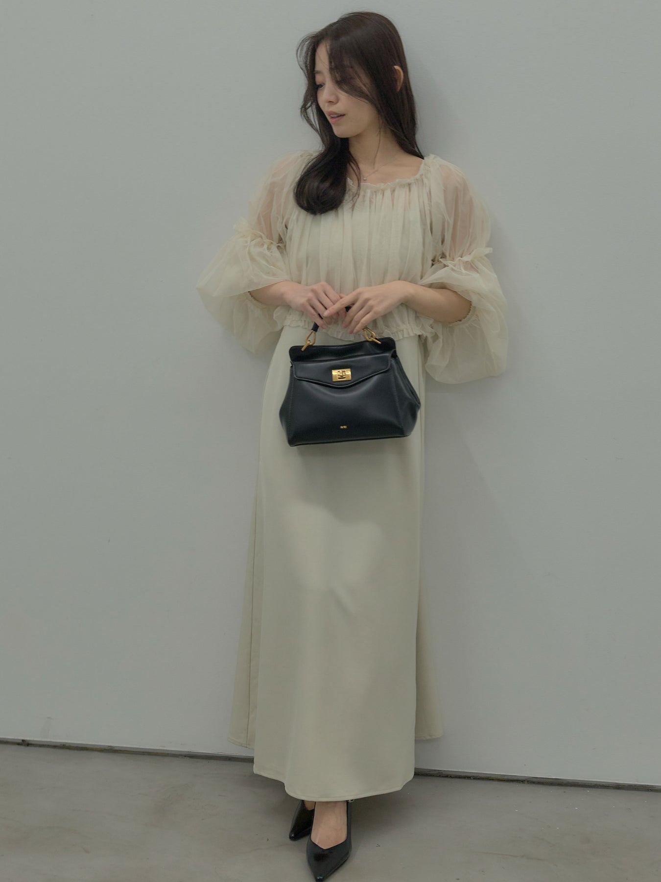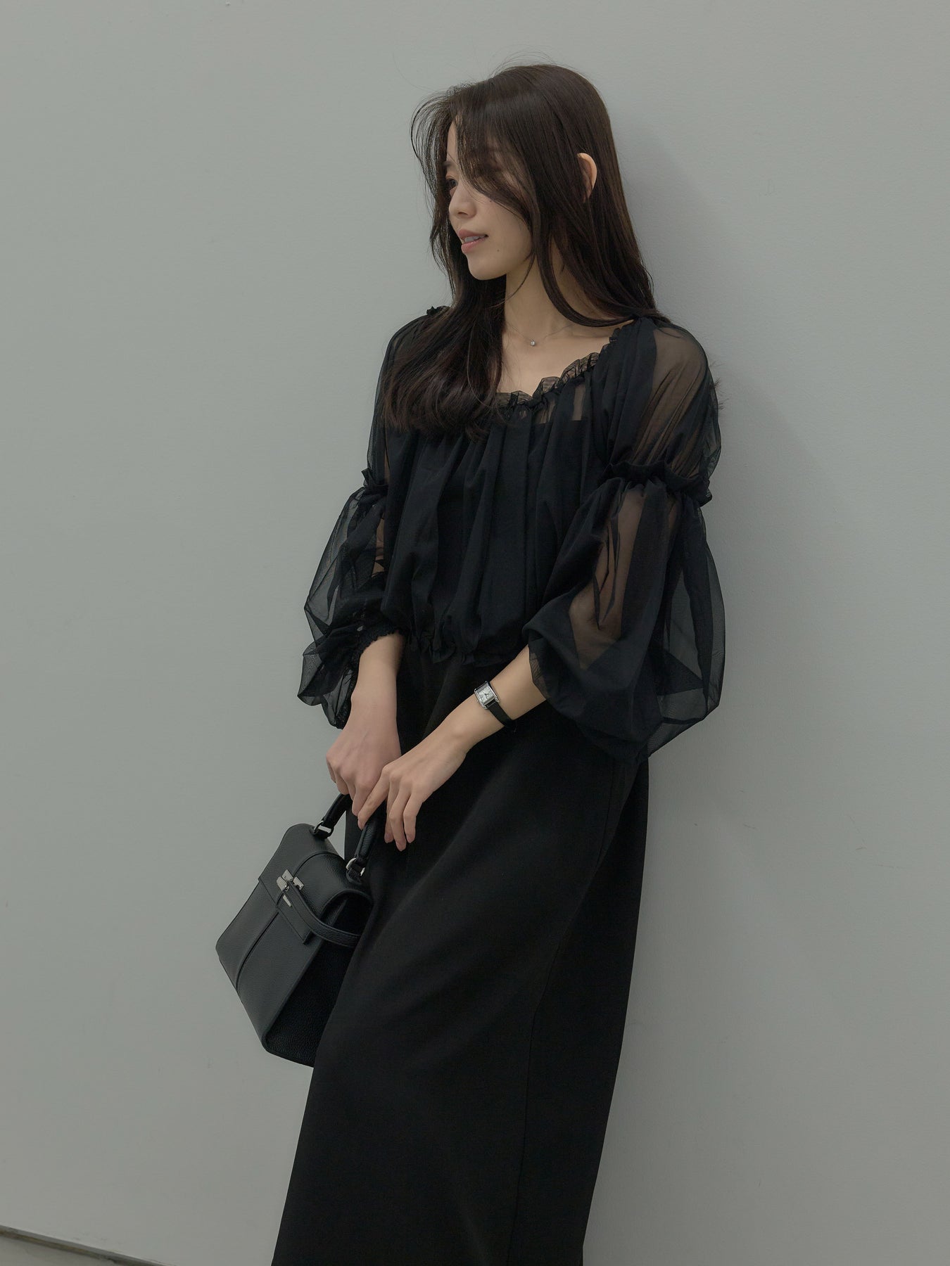 チュールブラウス付きで着こなしの幅が広がる2wayワンピース。ブラウススタイルとオフショルダースタイルの2wayです。 繊細な透け感が華やかさをプラスし、シーンに合わせて印象チェンジが可能。 一枚で完成度の高いスタイルが叶う、特別感のあるアイテムです。