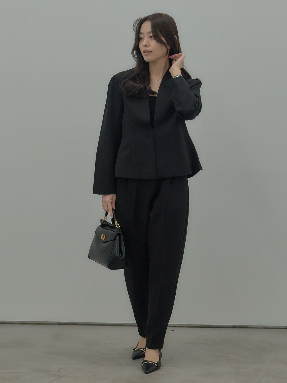 コントゥアフロントホックノーカラージャケット
