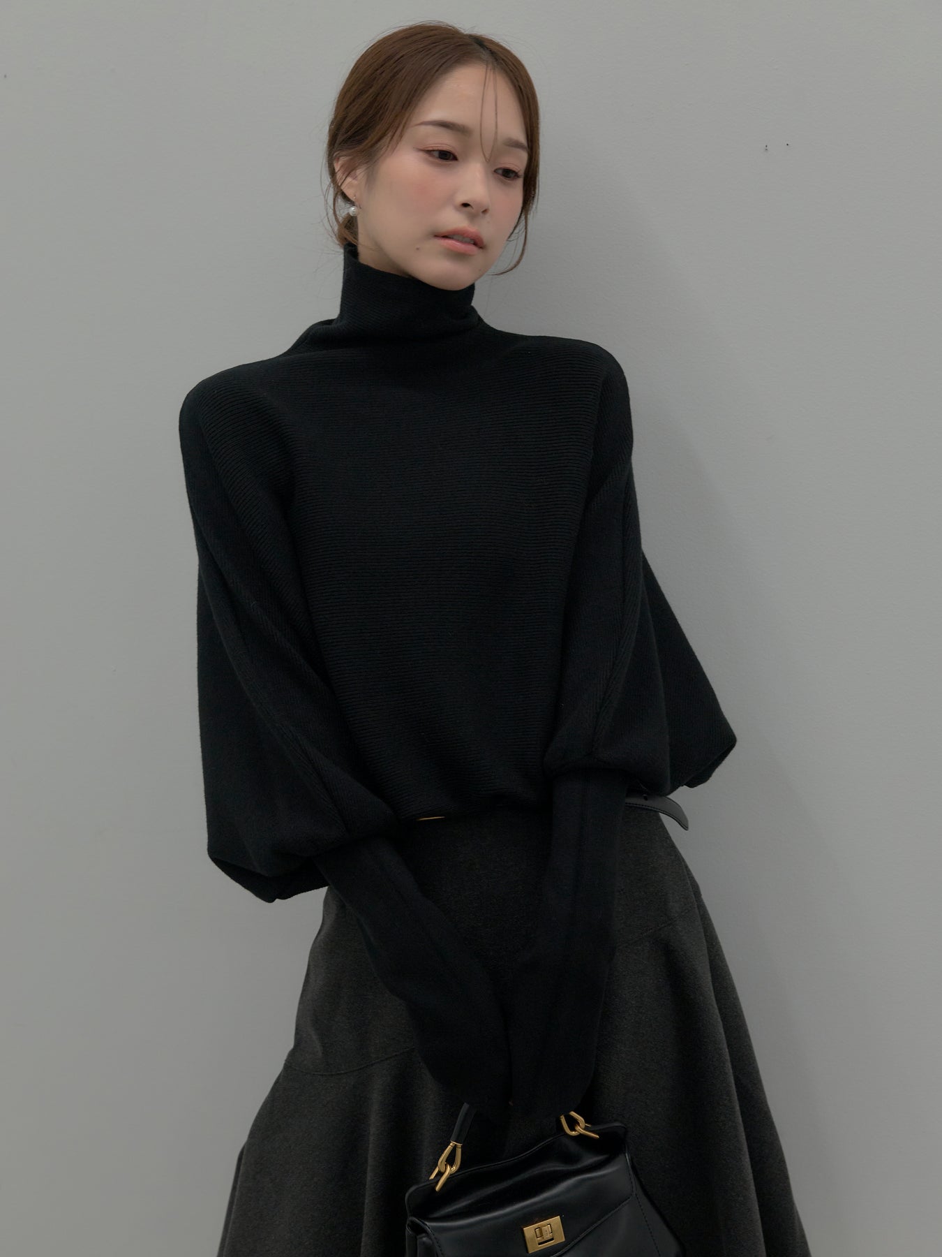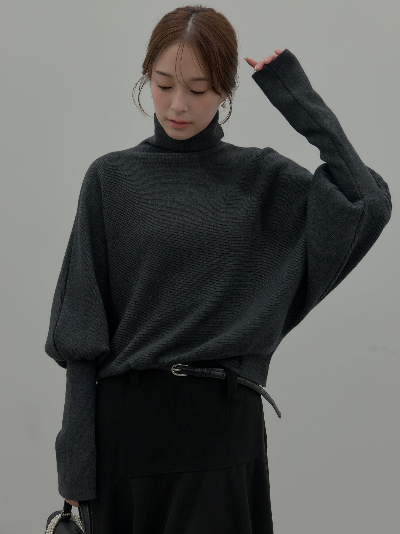 ドルマンハイネックニットトップス