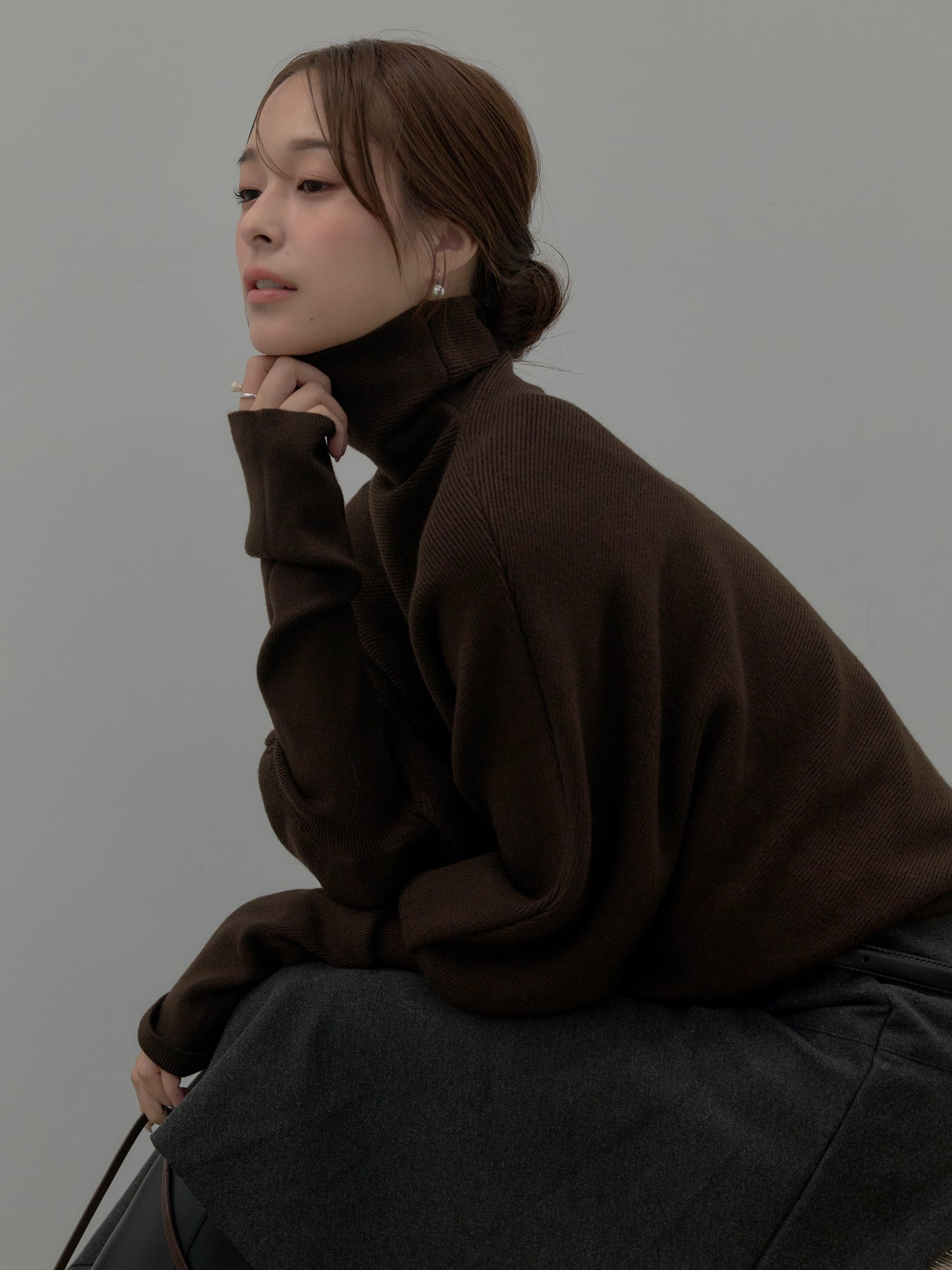 ゆるやかなドルマンスリーブが抜け感をつくるハイネックニットトップス。 程よいボリューム感と落ち感のあるシルエットで、体のラインを上品にカバー。 一枚でこなれた雰囲気が完成する、万能ニットです。