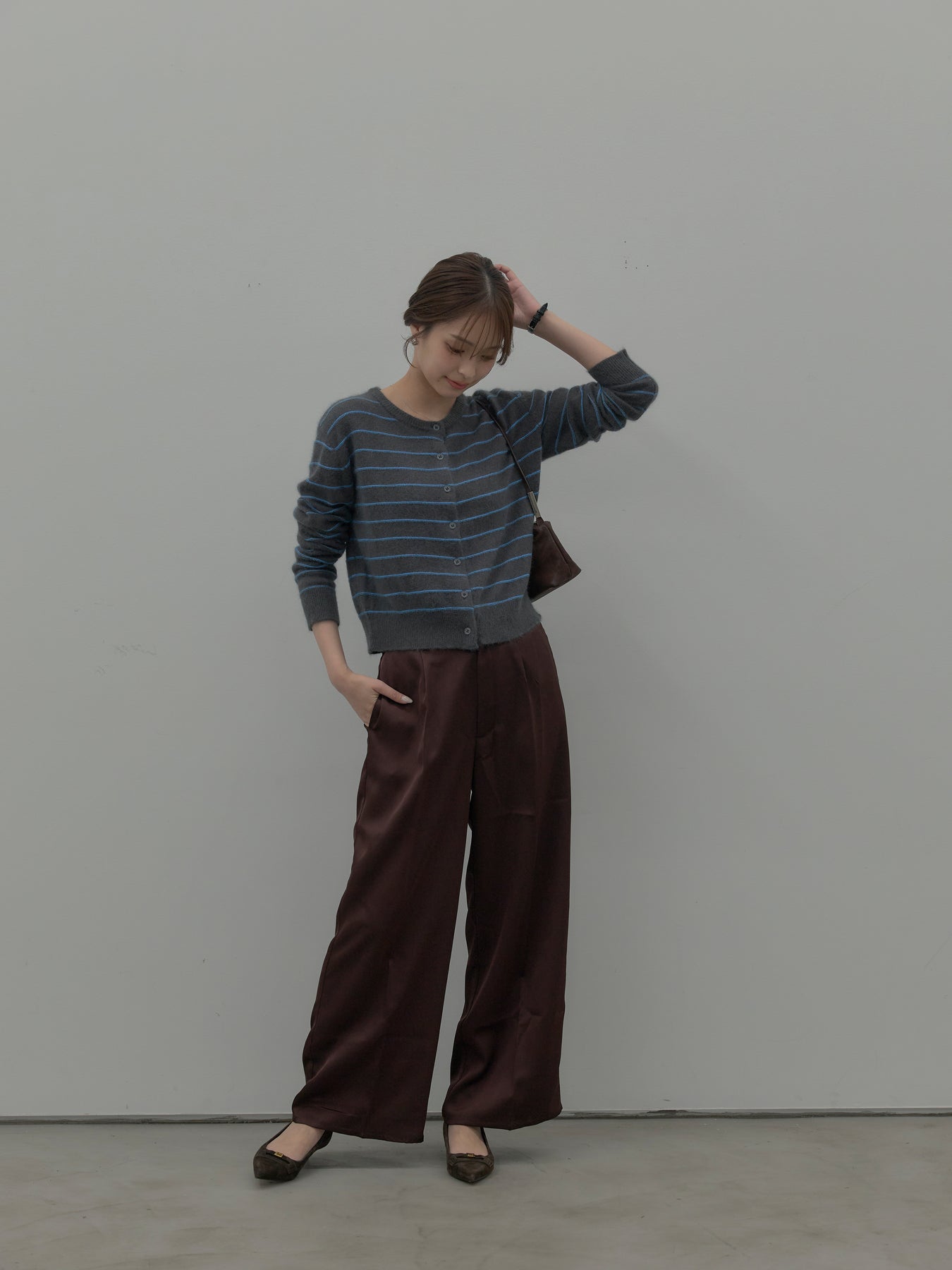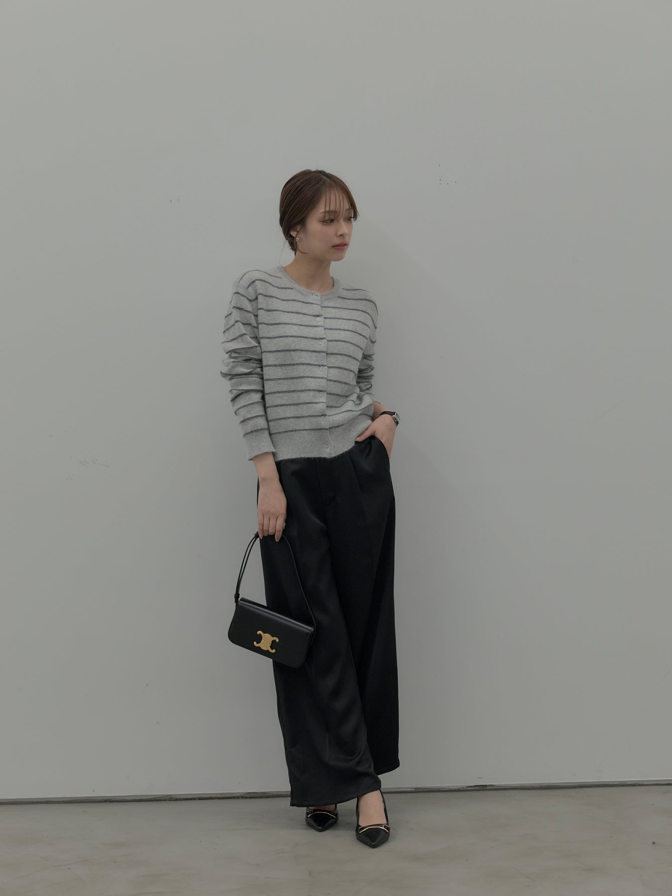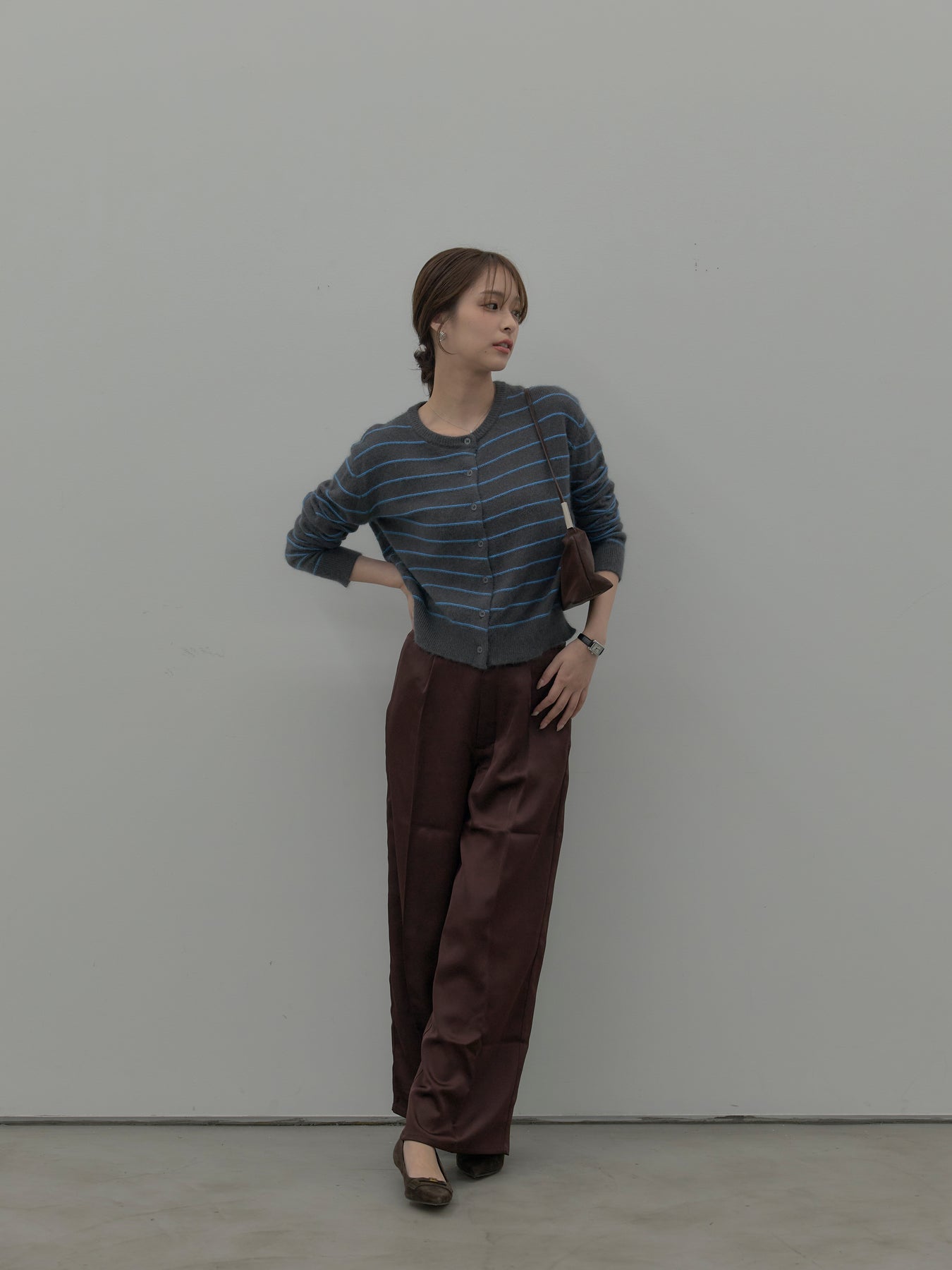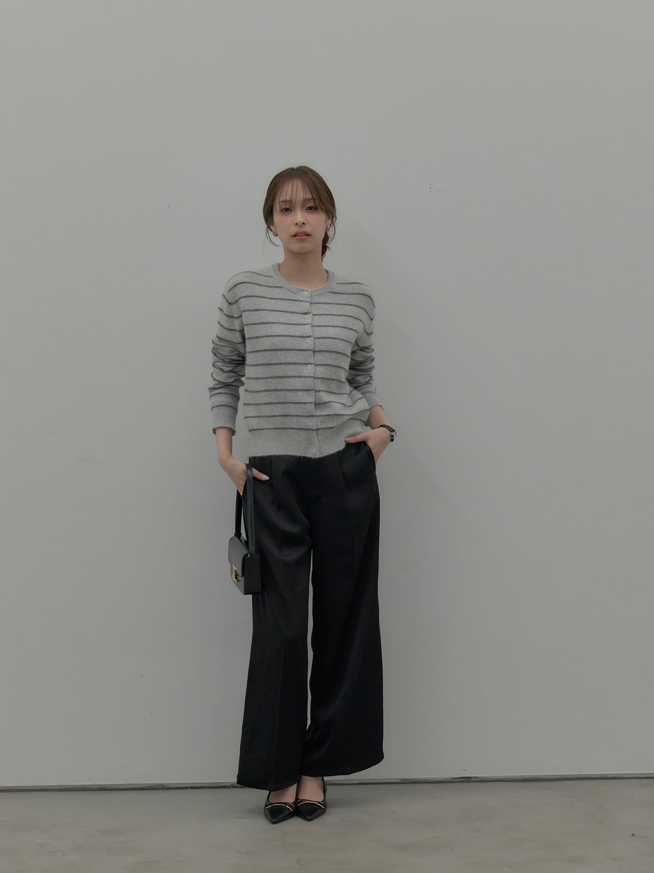 【SET】【premium touch】アルパカタッチボーダーニットカーディガン+【Essential】センタープレスサテンパンツ(2set)