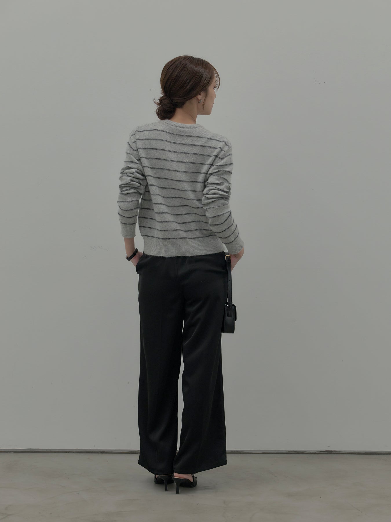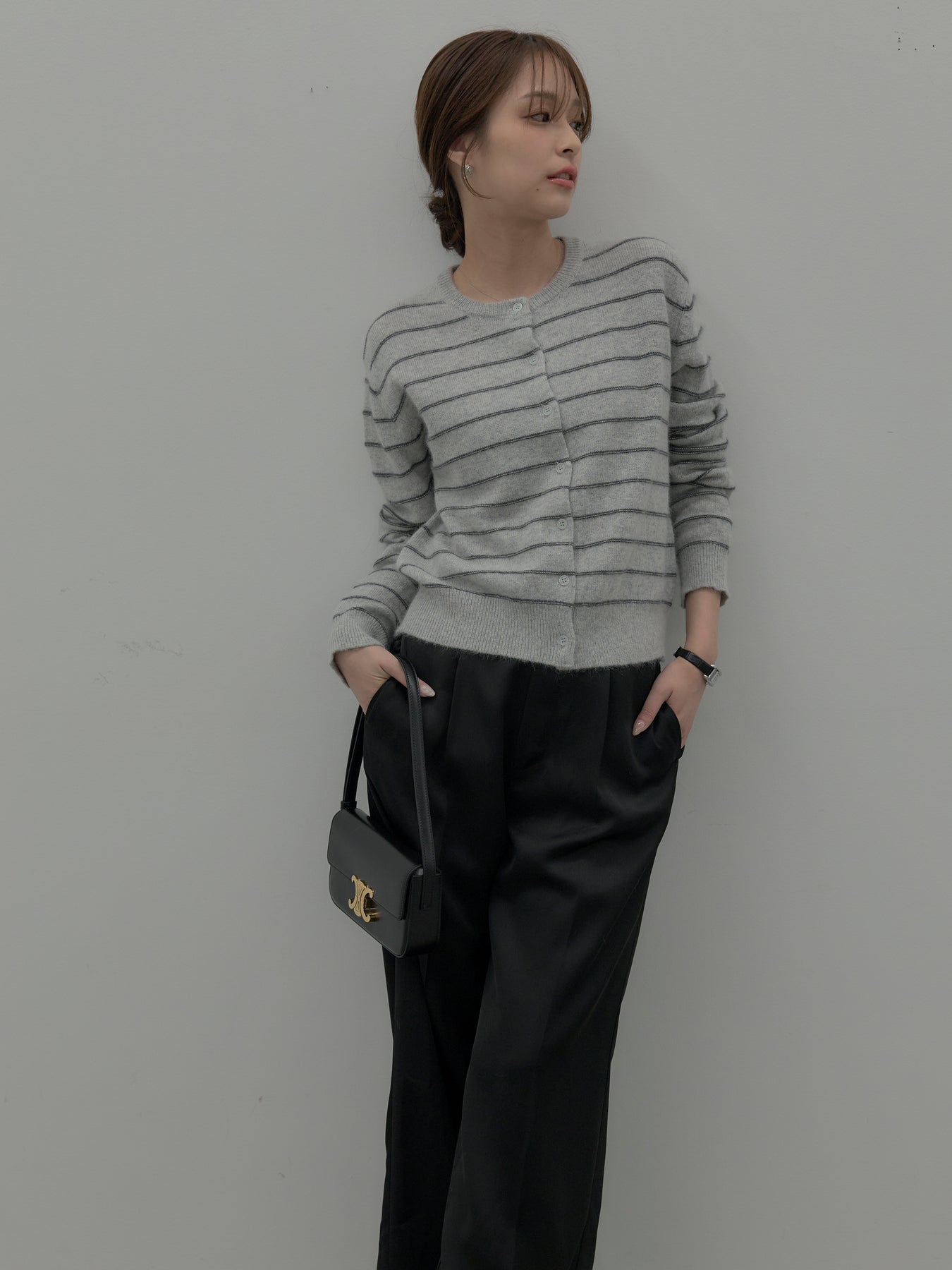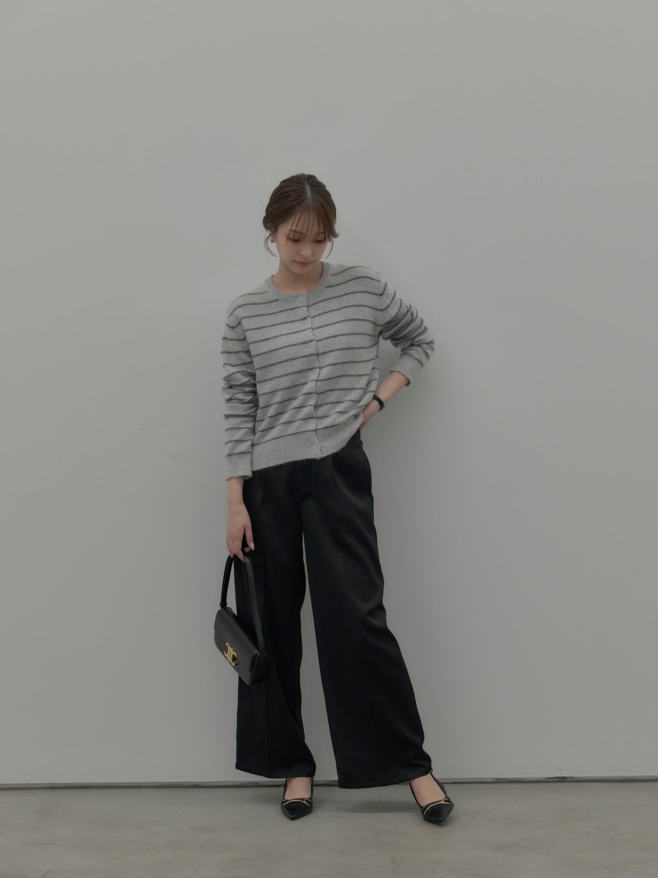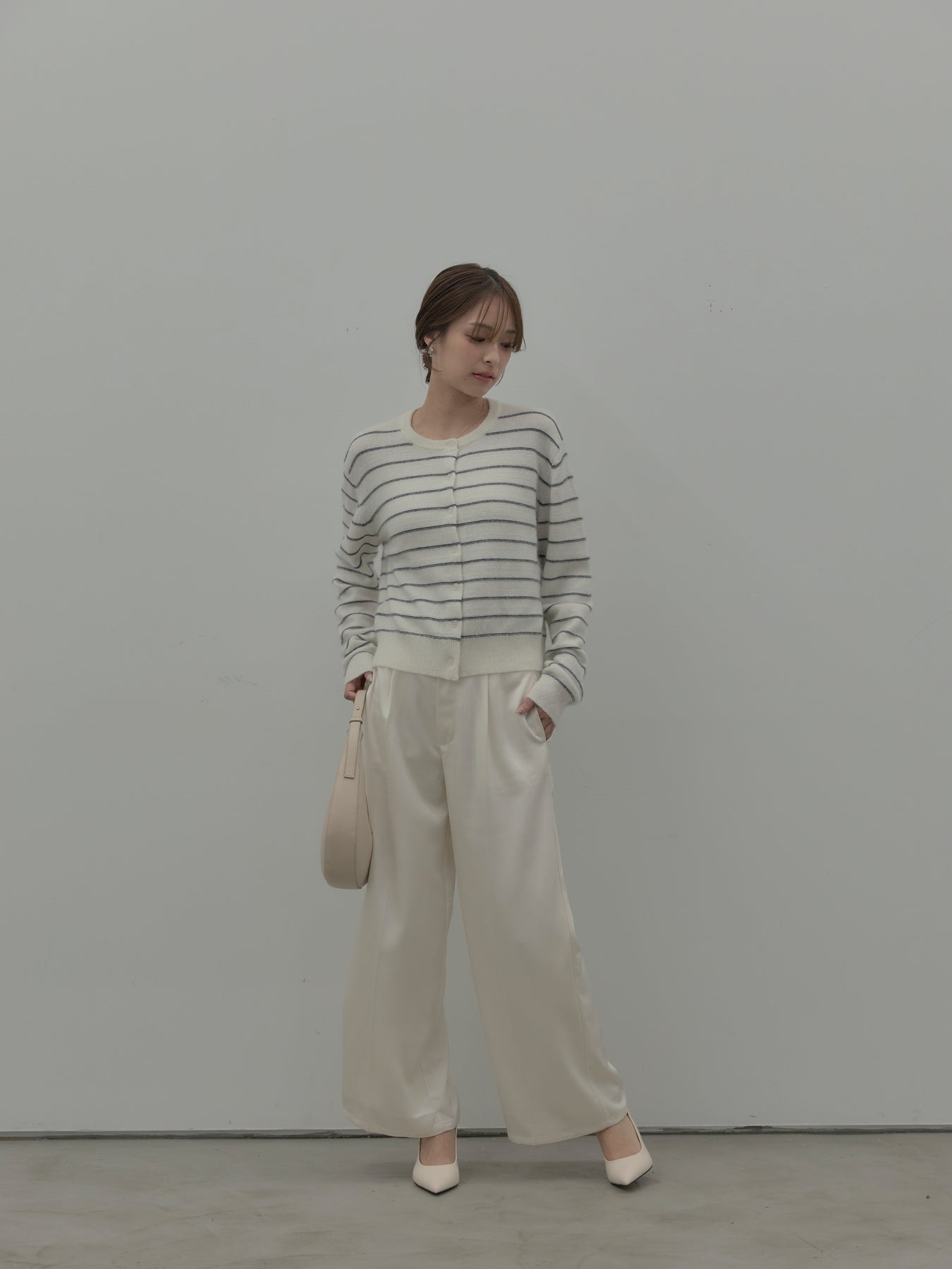 【SET】【premium touch】アルパカタッチボーダーニットカーディガン+【Essential】センタープレスサテンパンツ(2set)