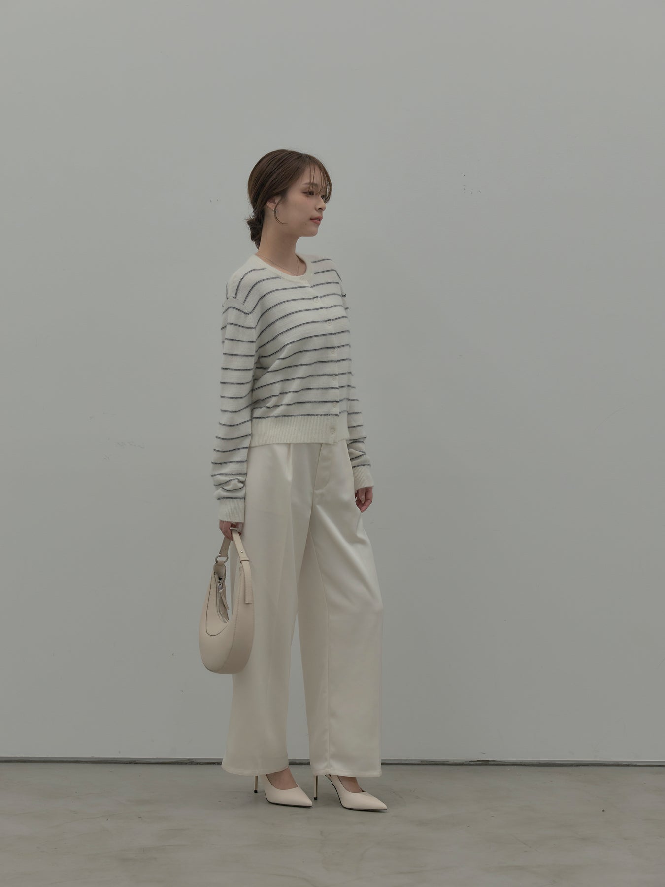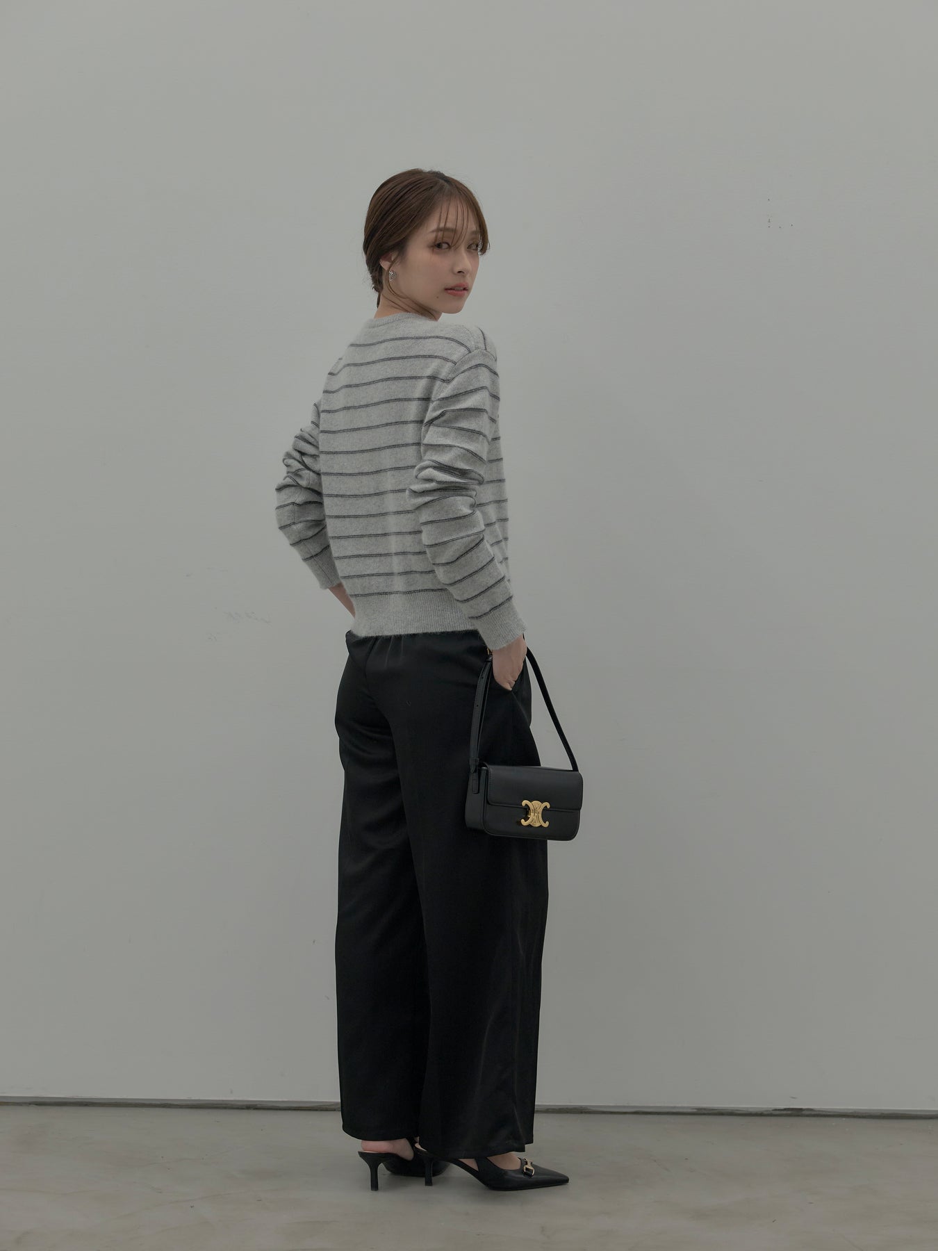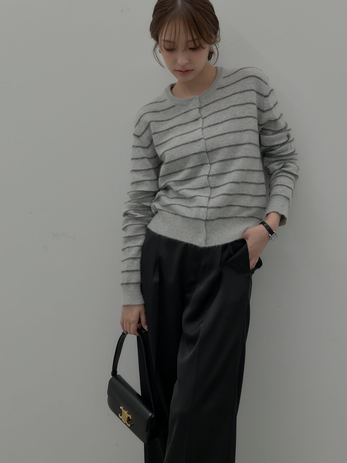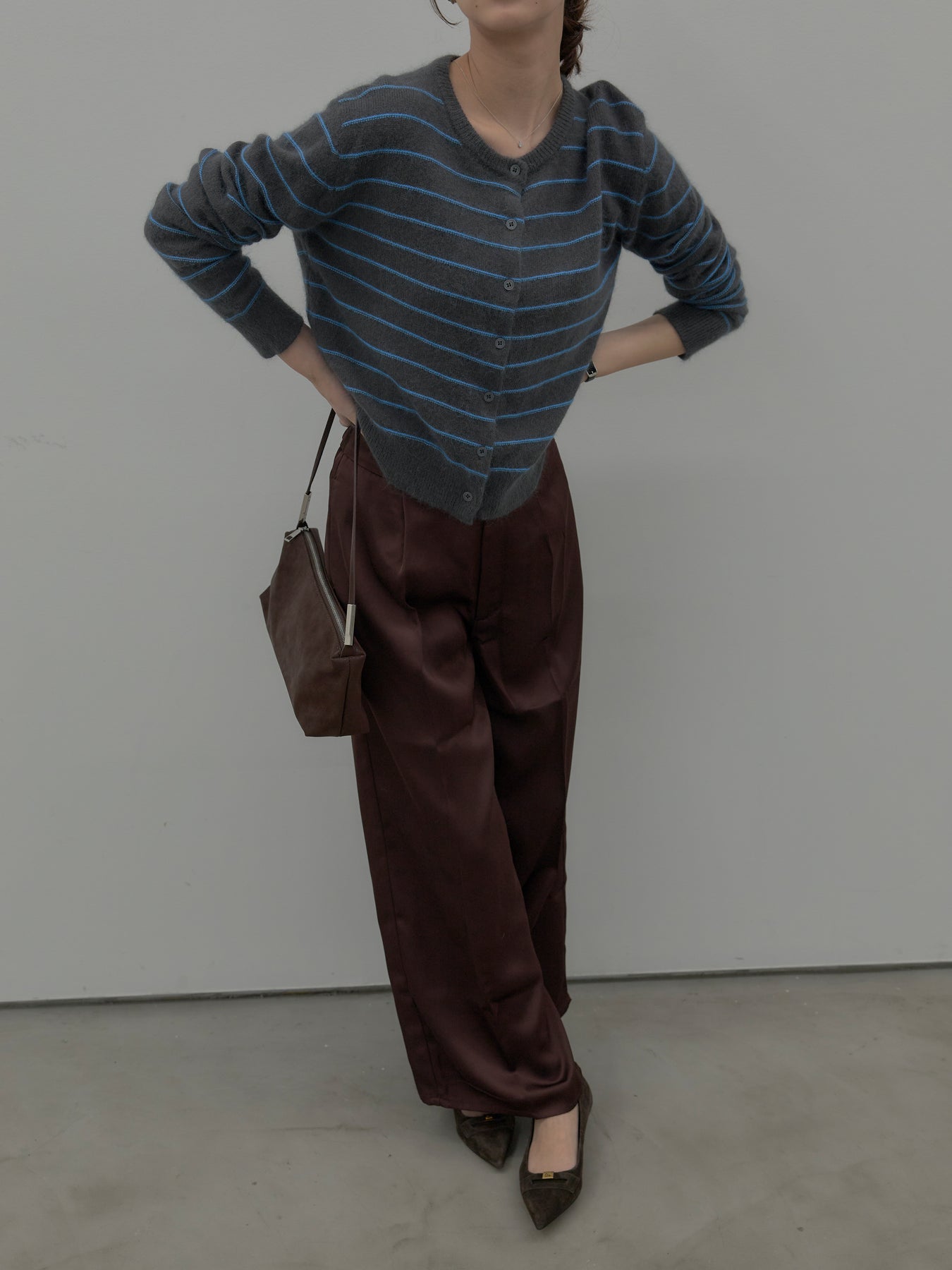 【SET】【premium touch】アルパカタッチボーダーニットカーディガン+【Essential】センタープレスサテンパンツ(2set)