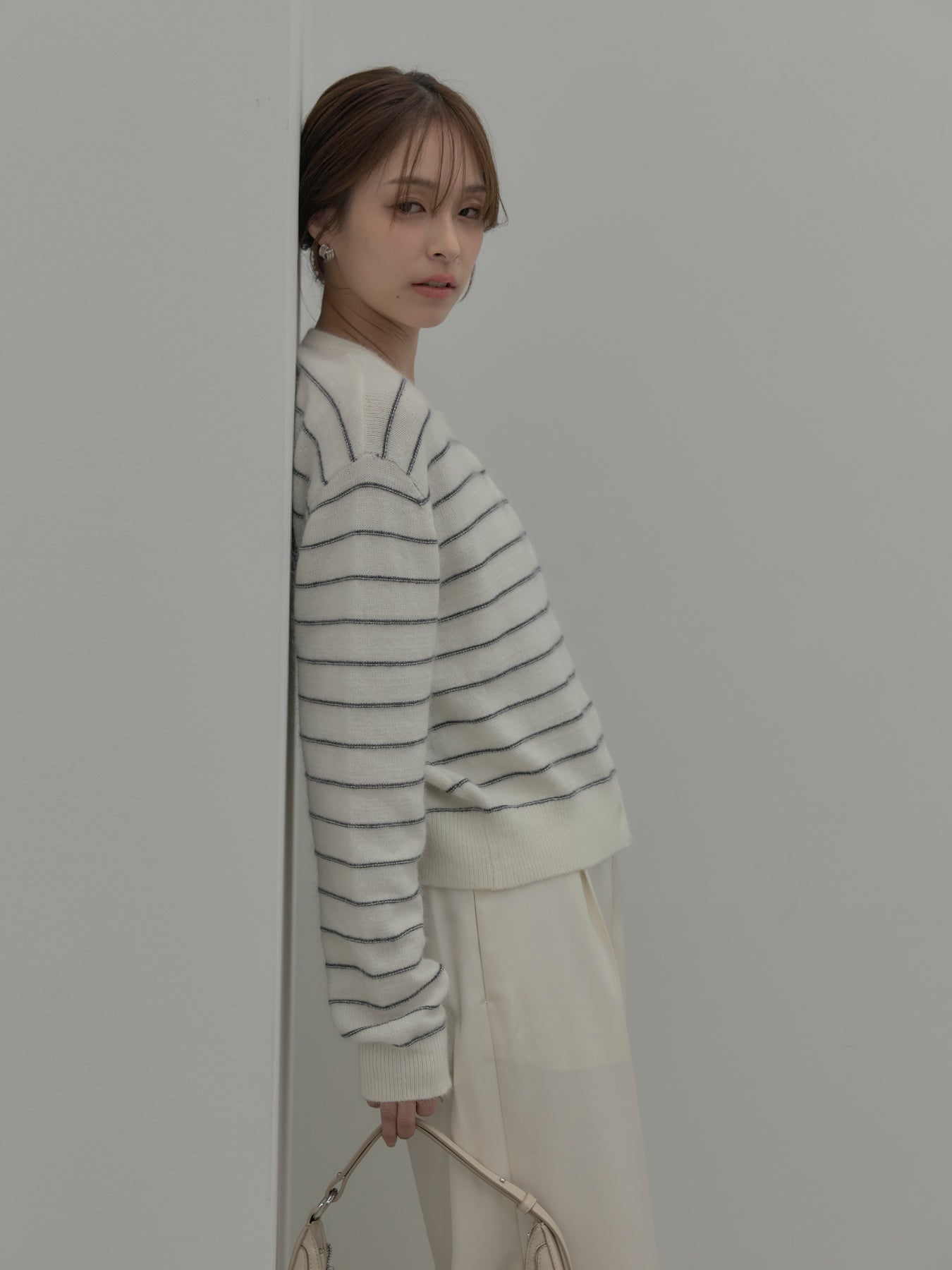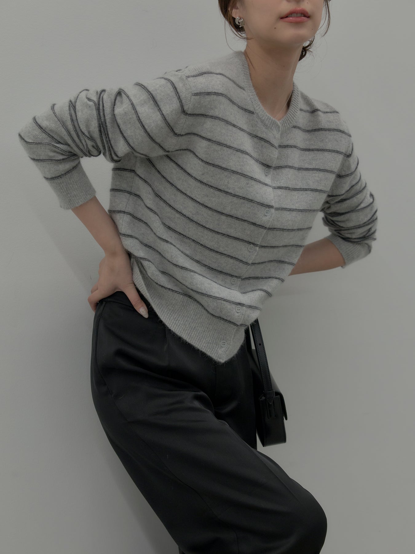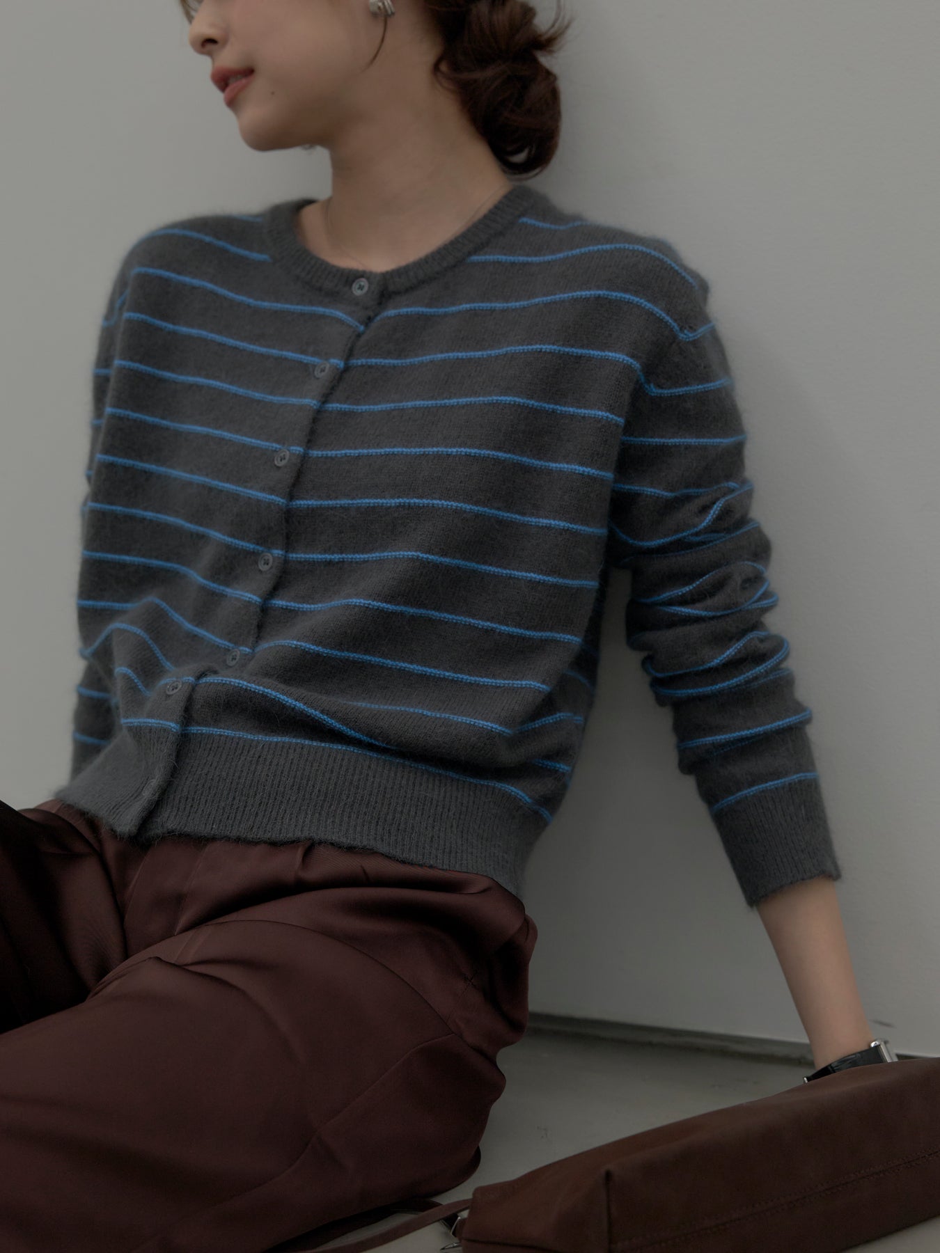 【premium touch】アルパカタッチボーダーニットカーディガン