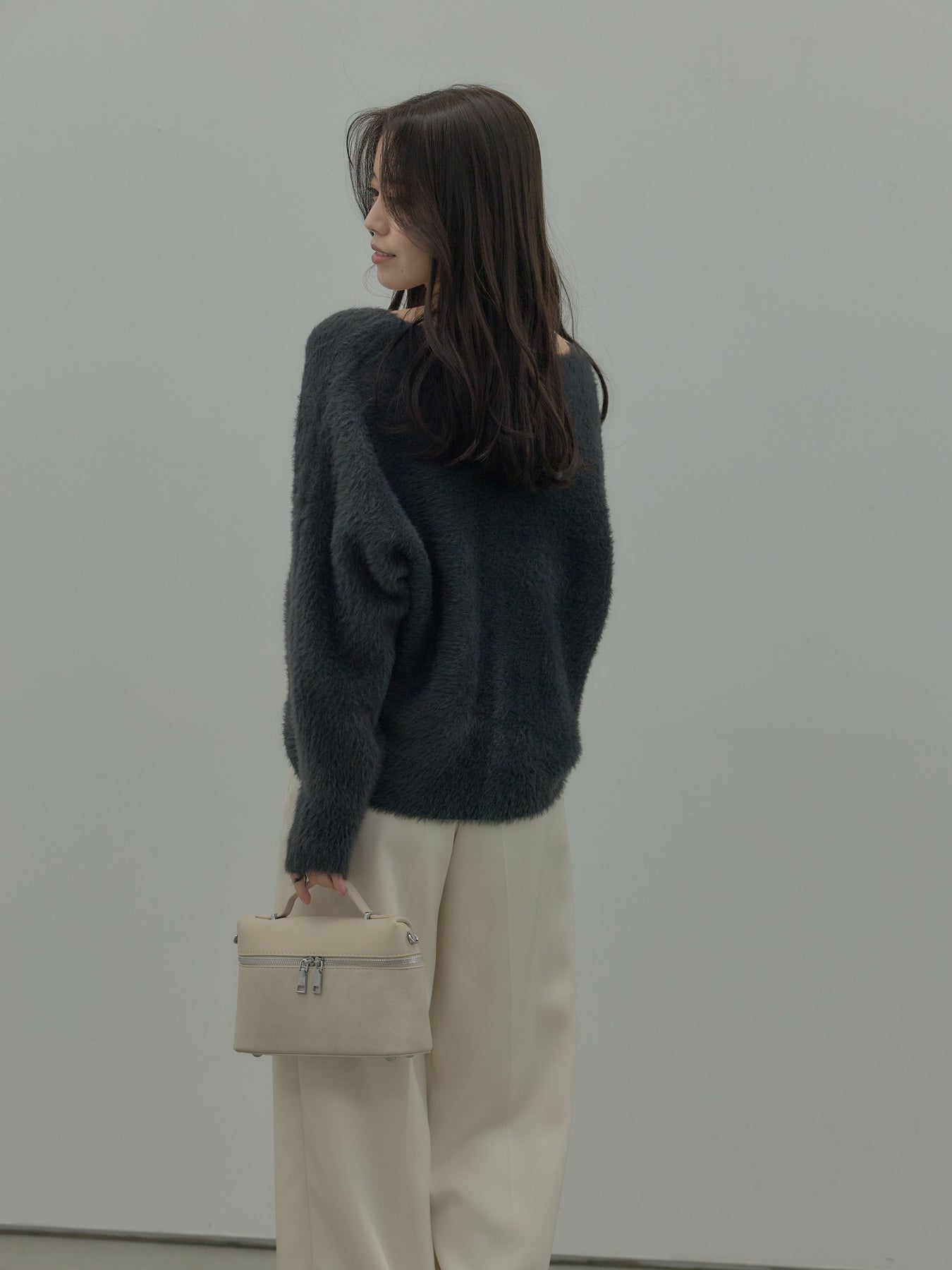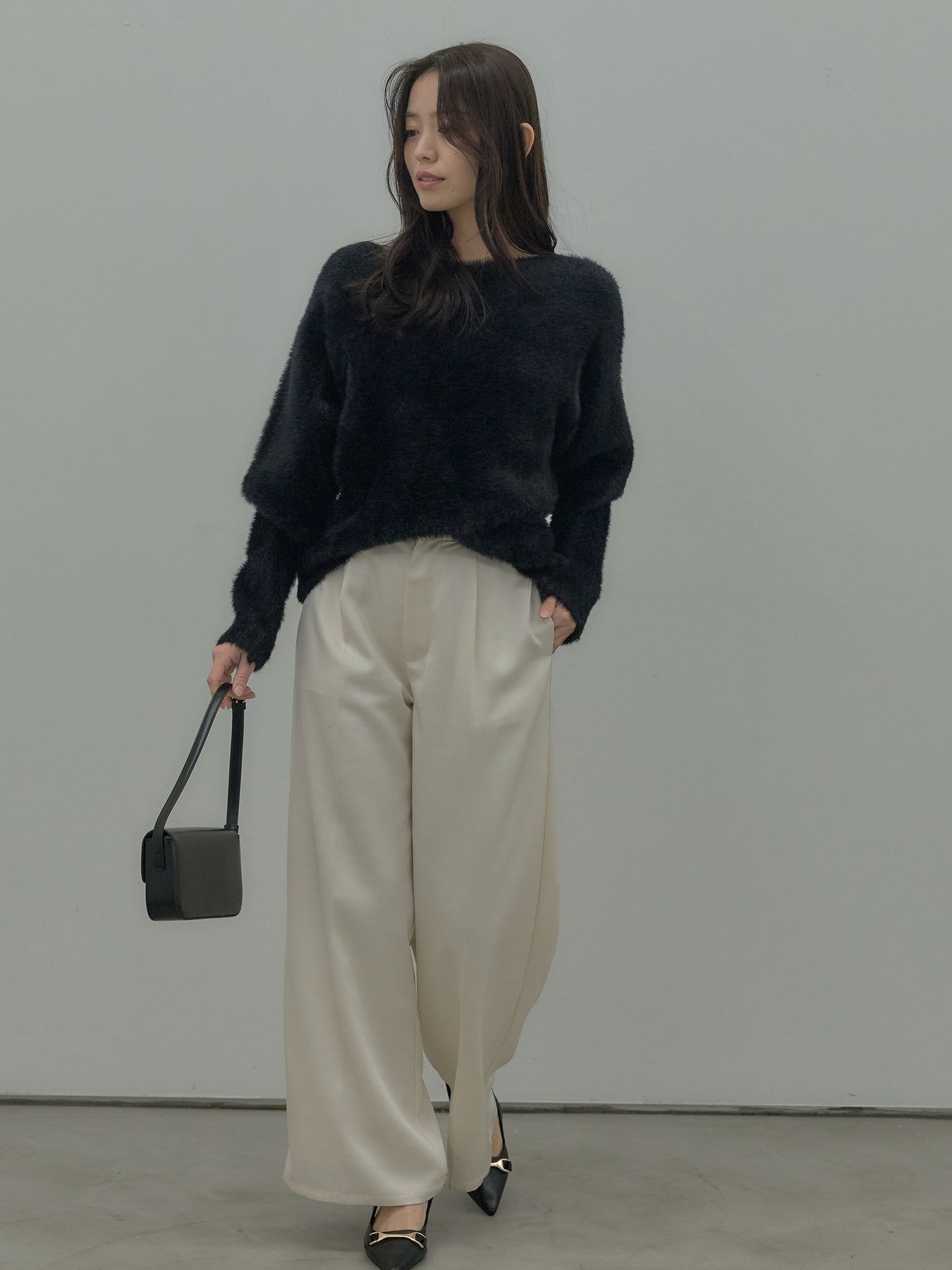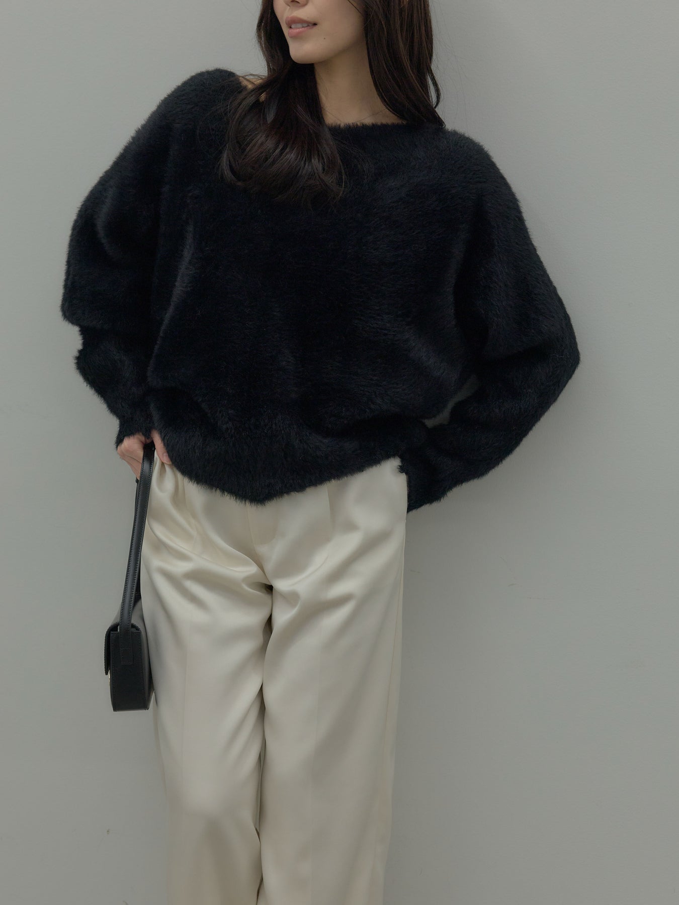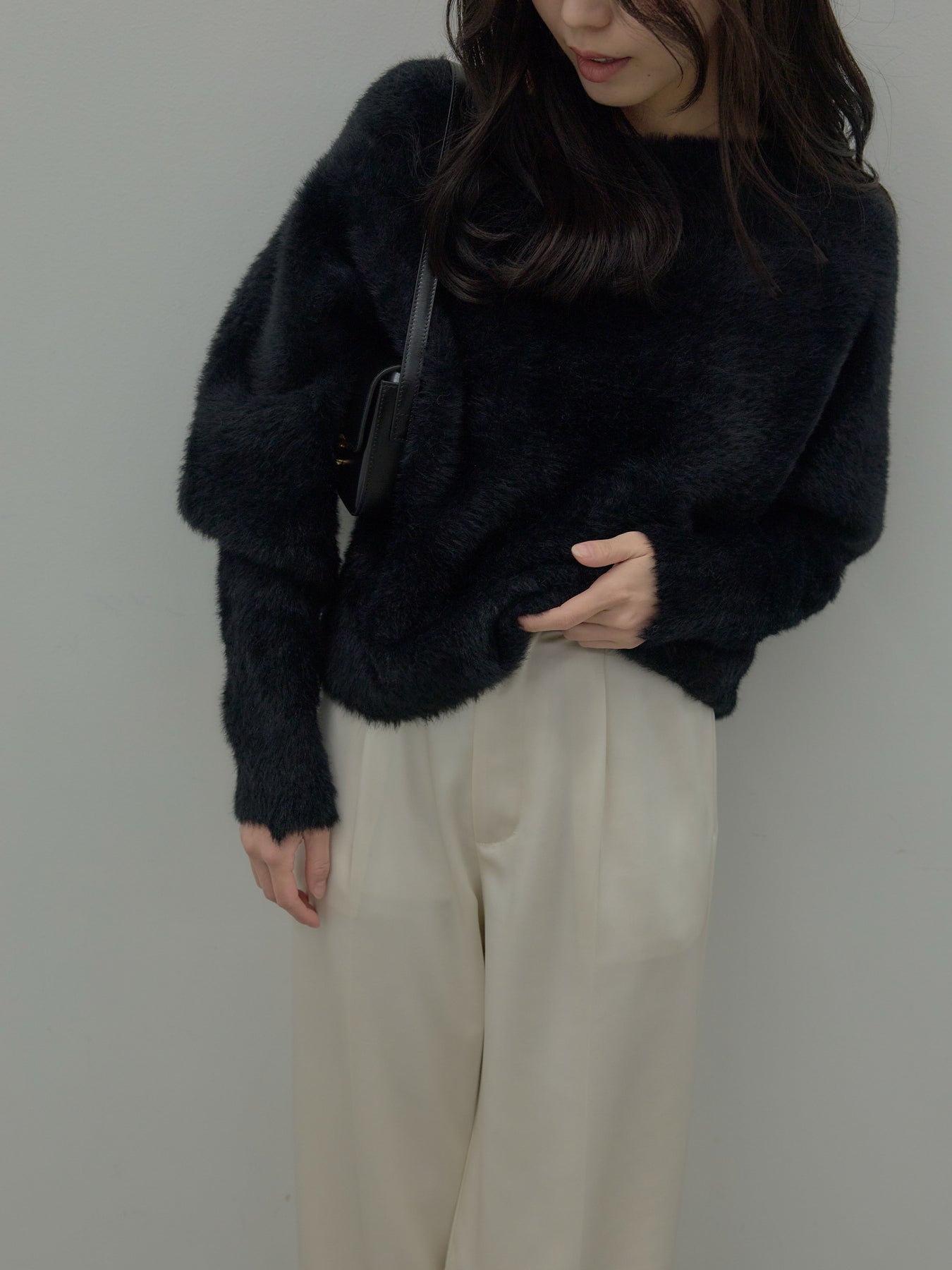 ふんわりとしたシャギー素材が存在感のあるニット。