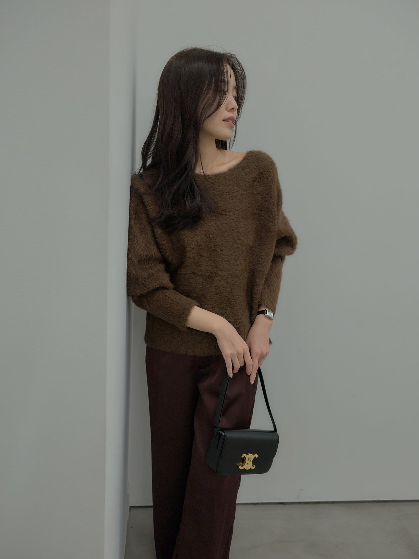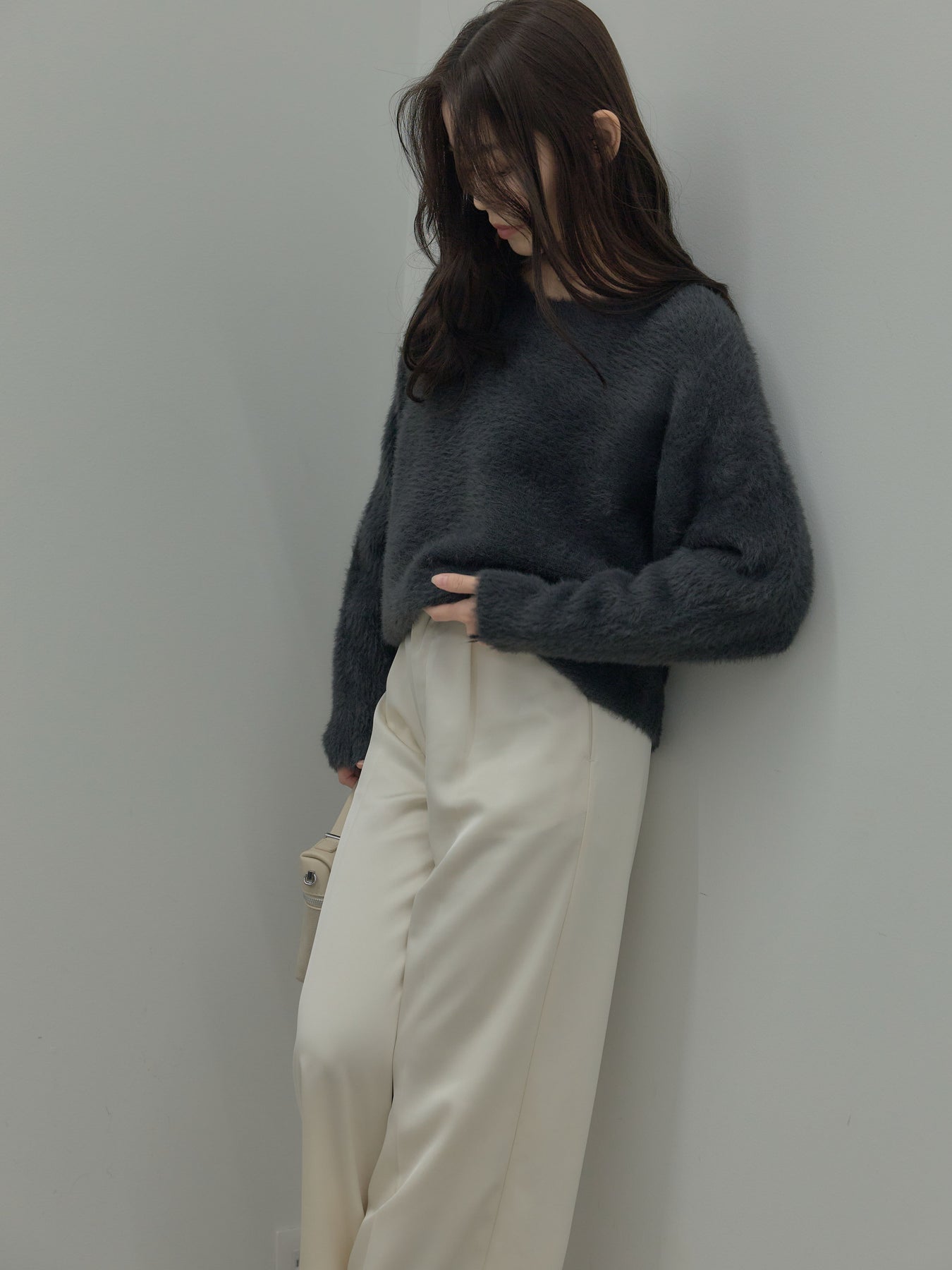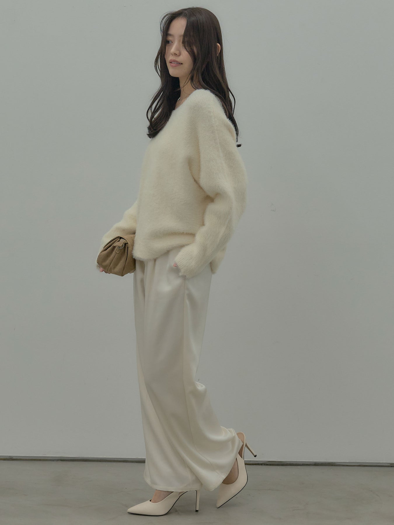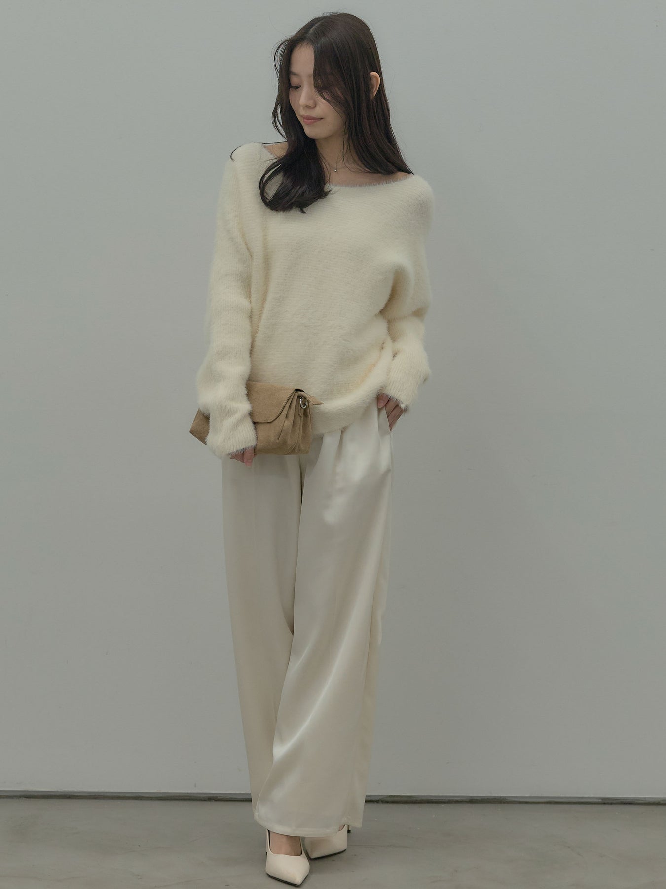 ふんわりとしたシャギー素材が存在感のあるニット。
