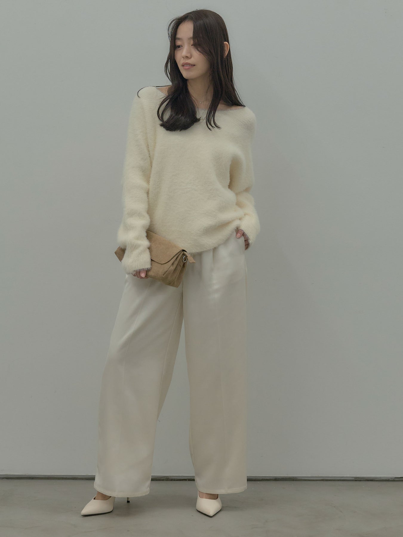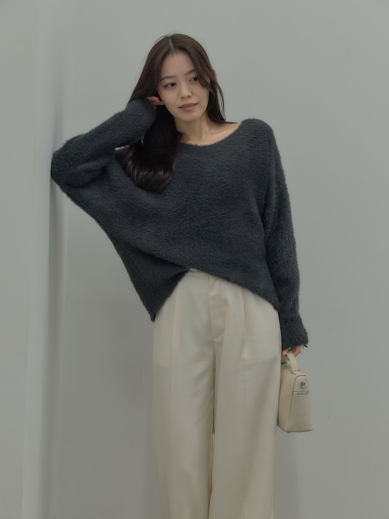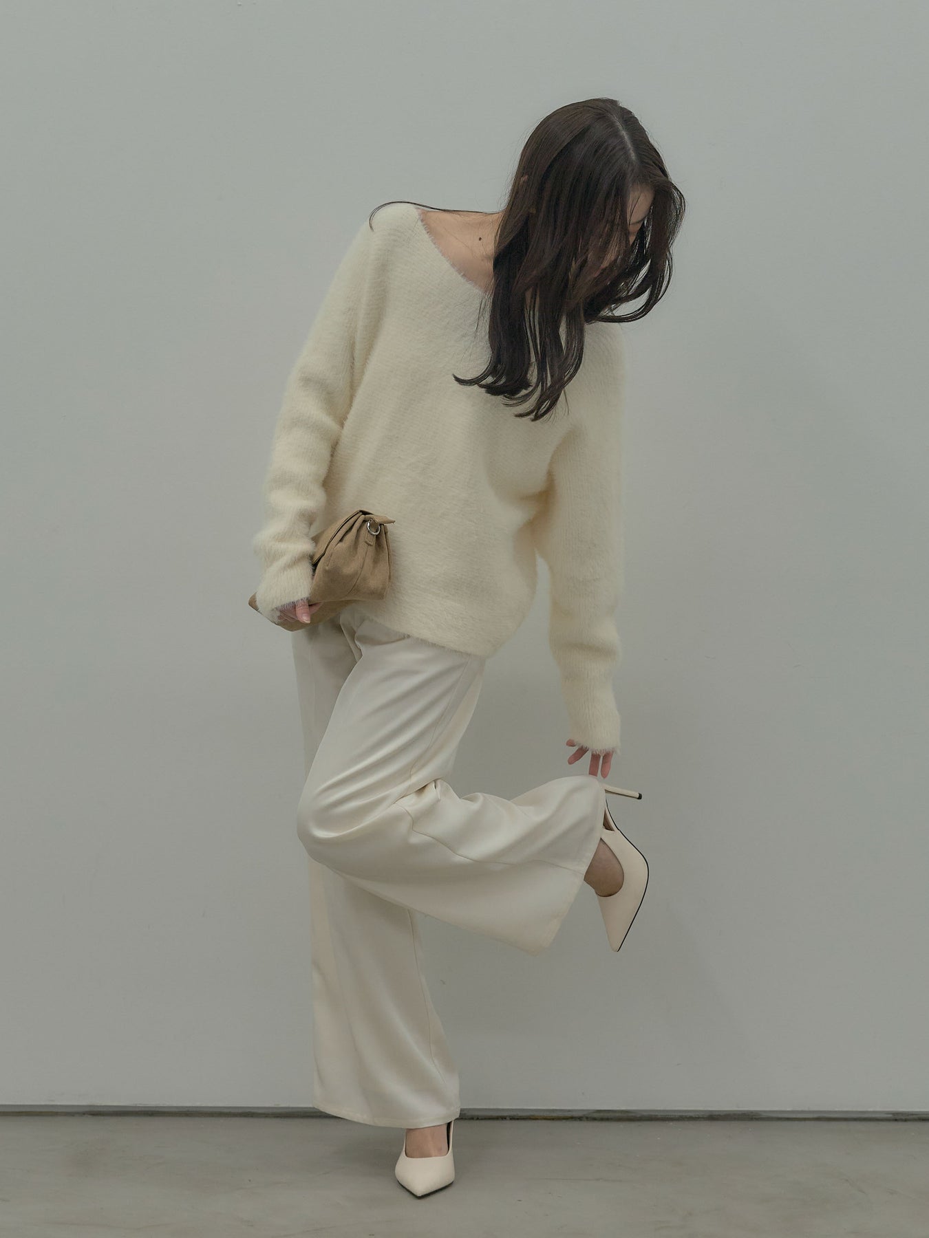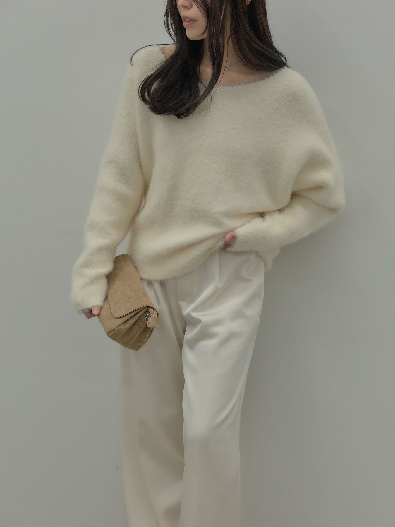 ふんわりとしたシャギー素材が存在感のあるニット。