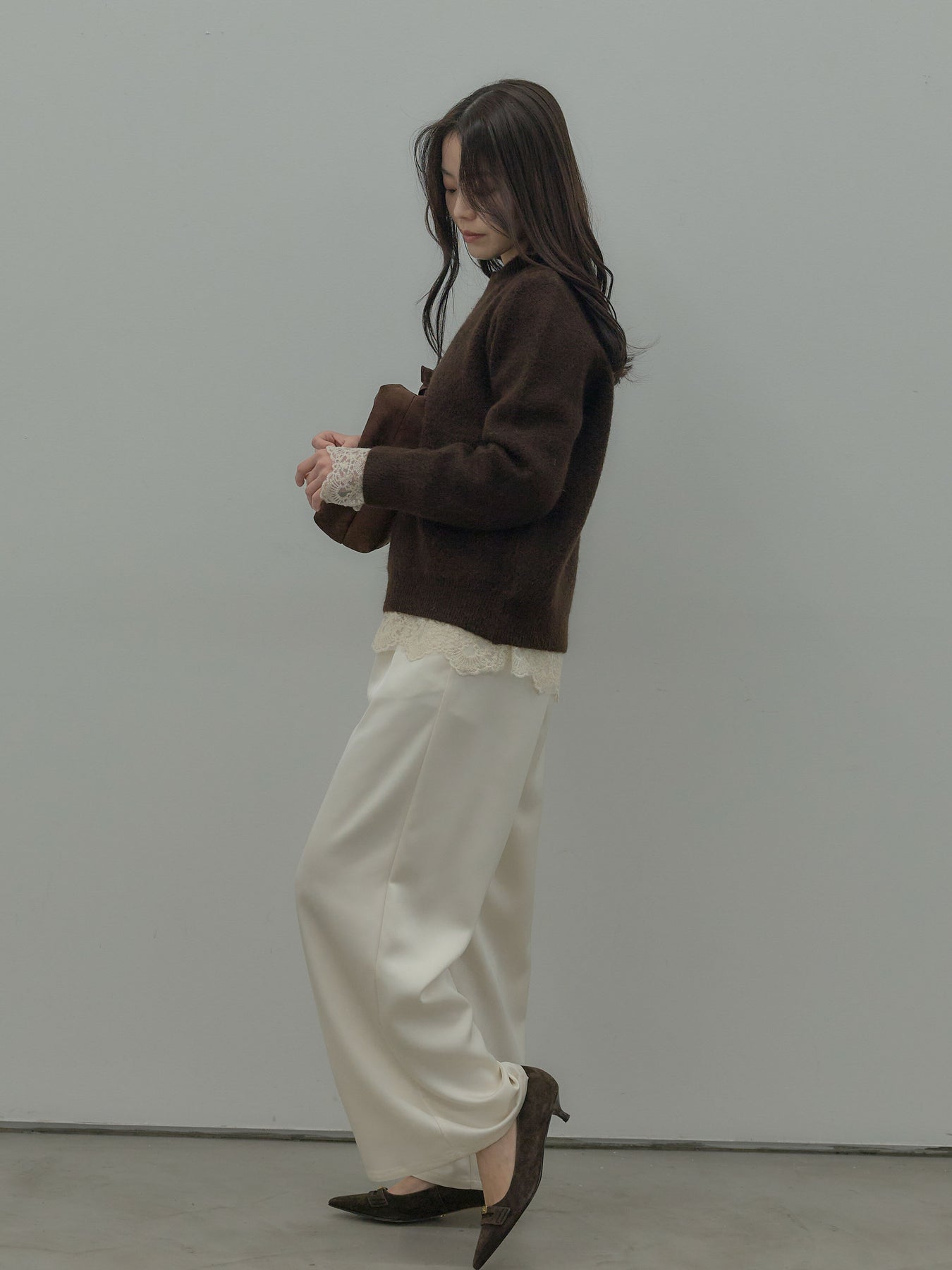 シンプルながら素材の上質さが際立ち、デイリーに取り入れやすい一枚です。