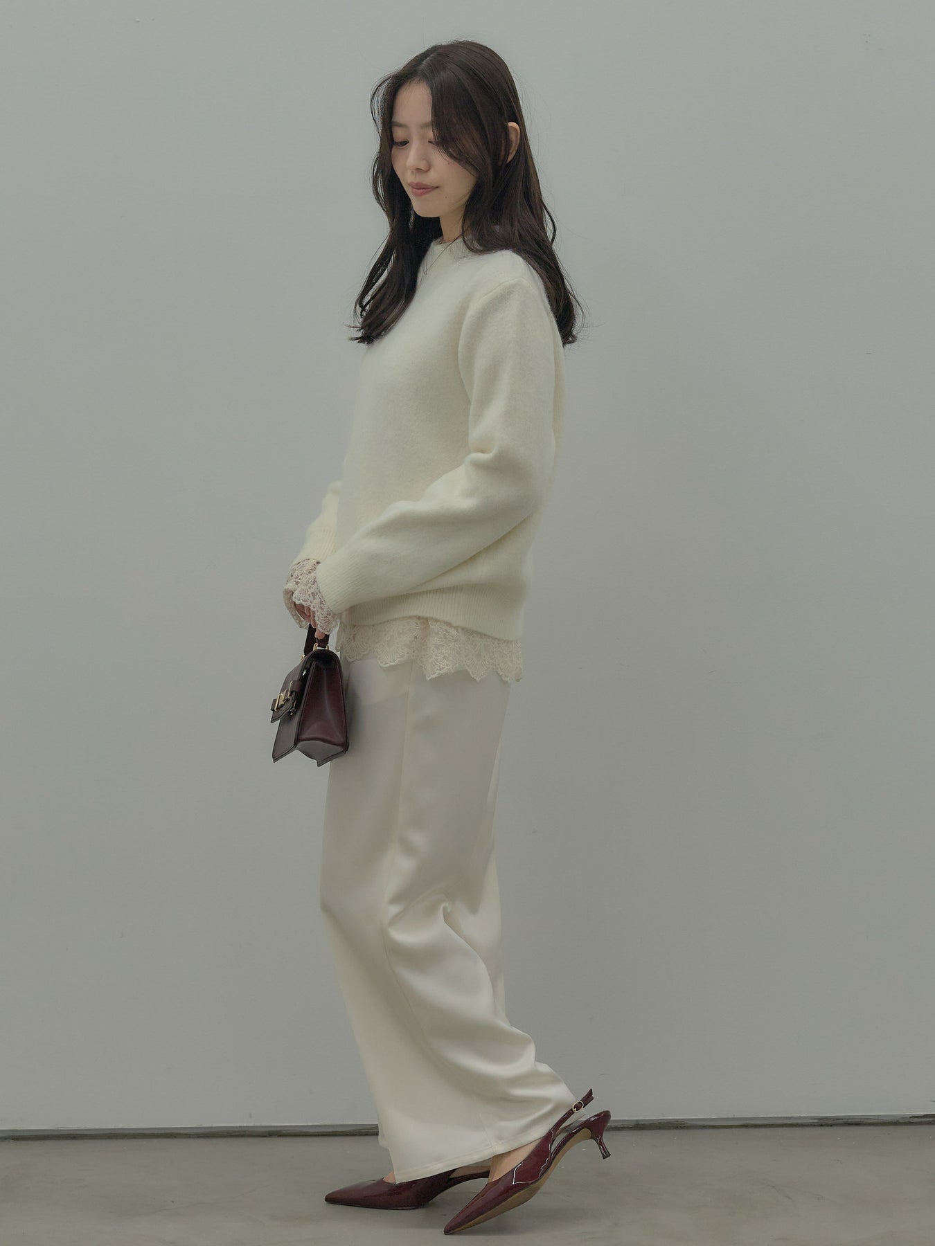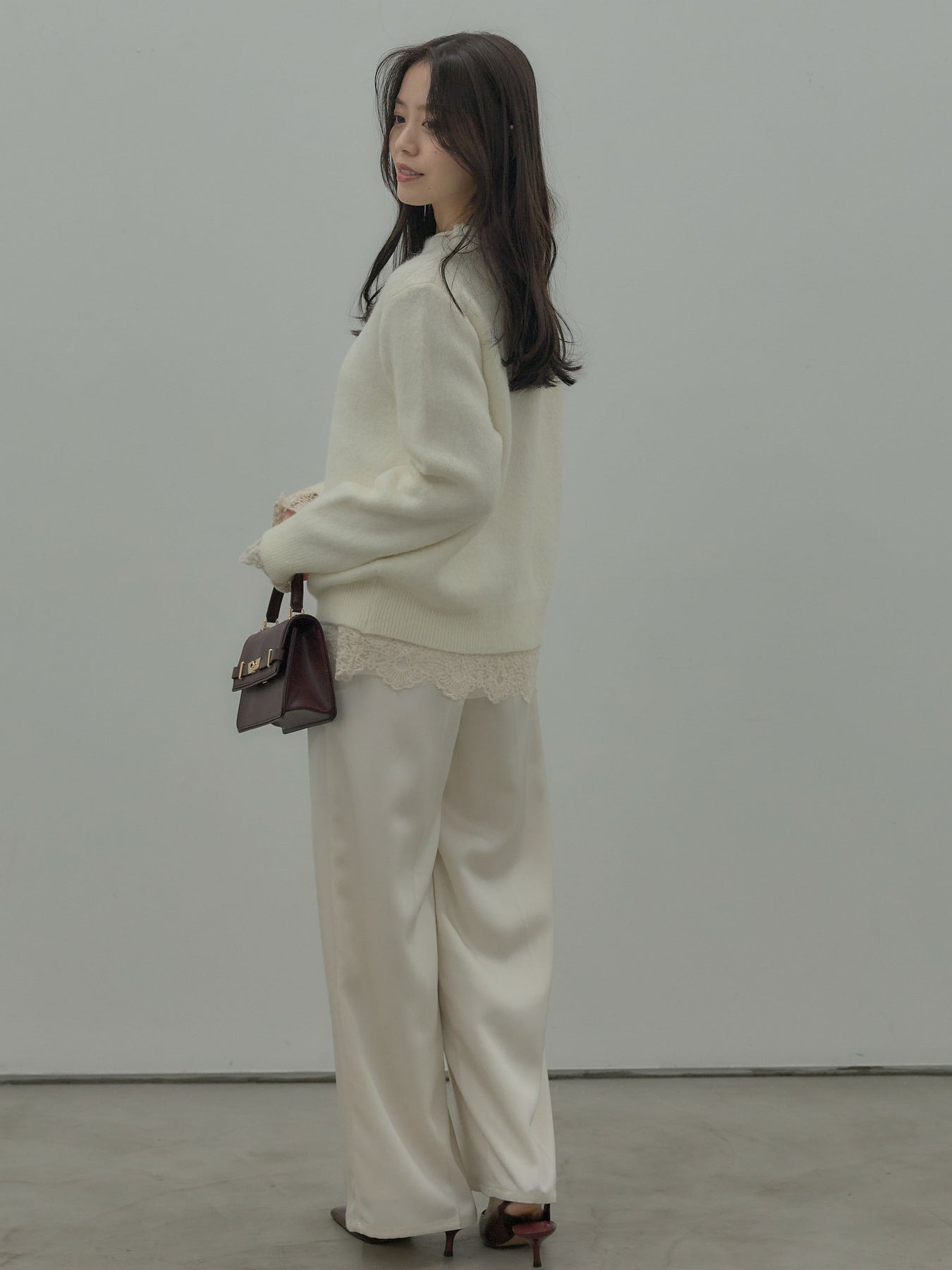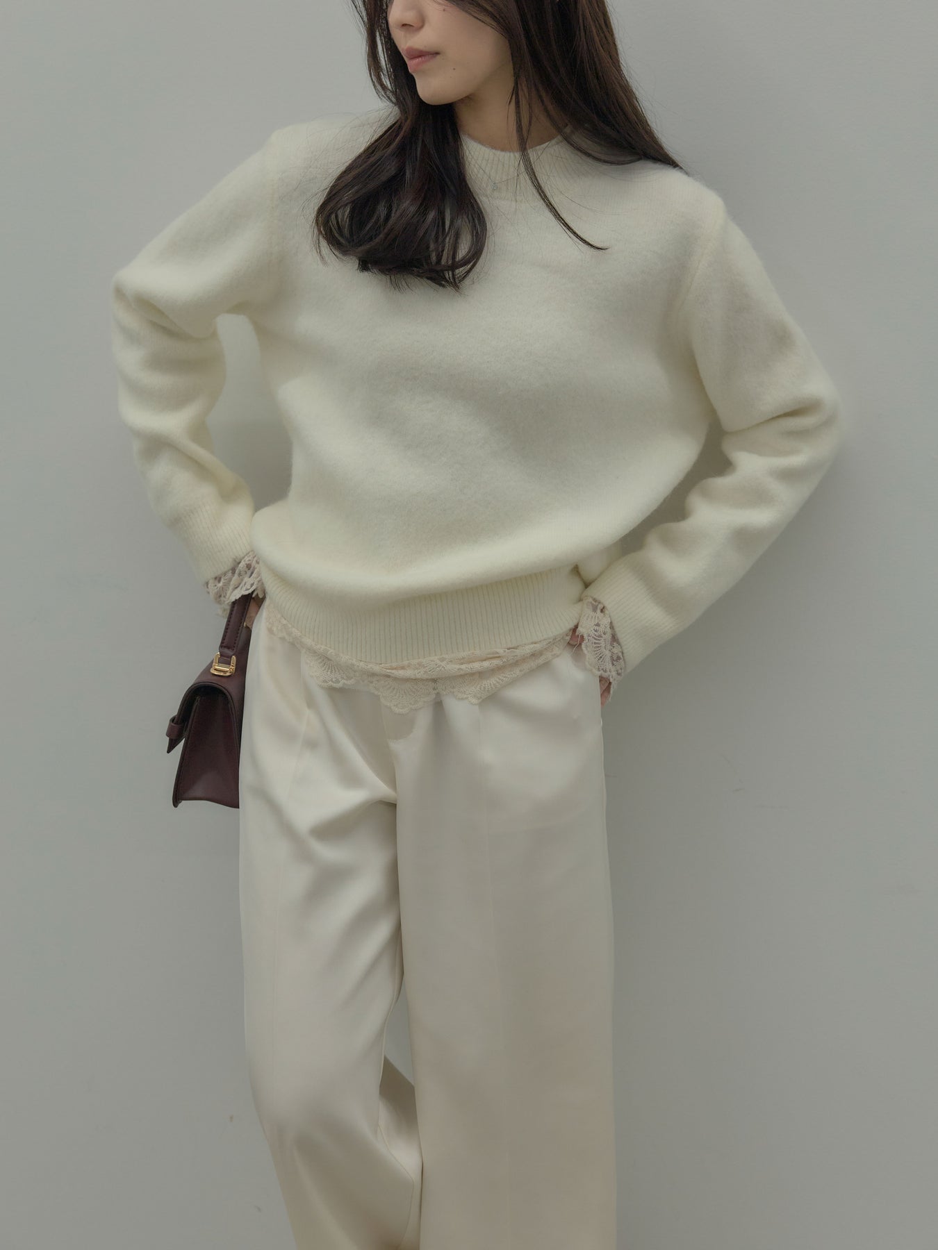 アイボリーの柔らかな色味が女性らしさを引き立て、レイヤードにも活躍します。