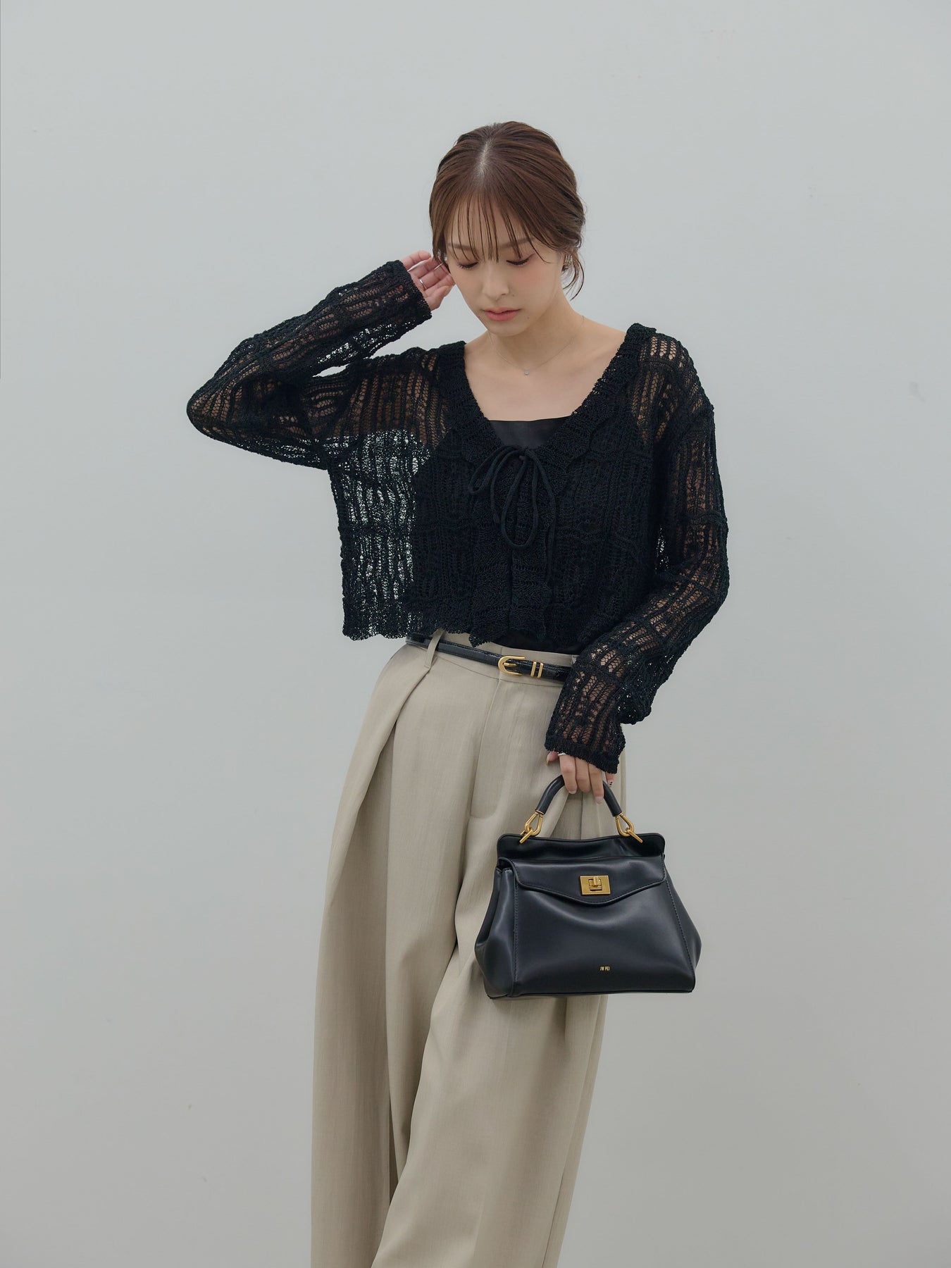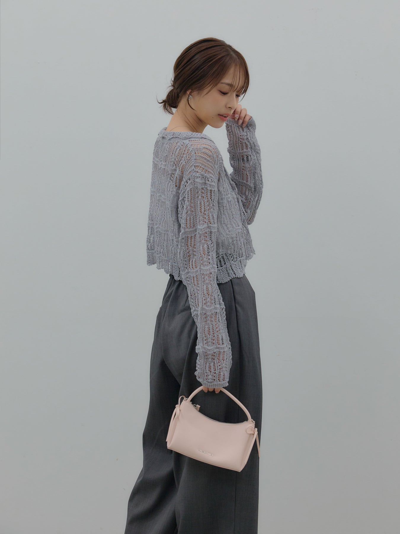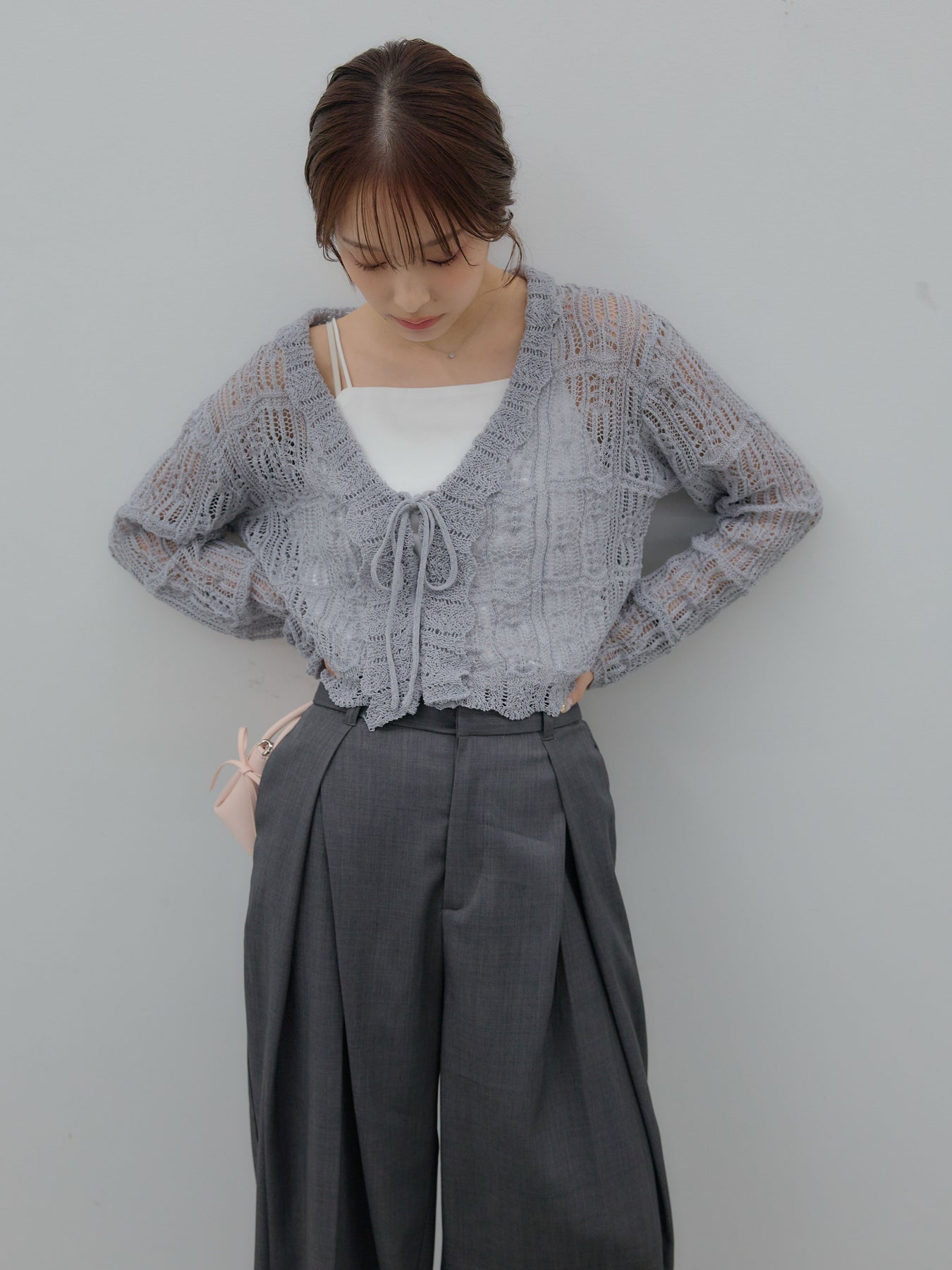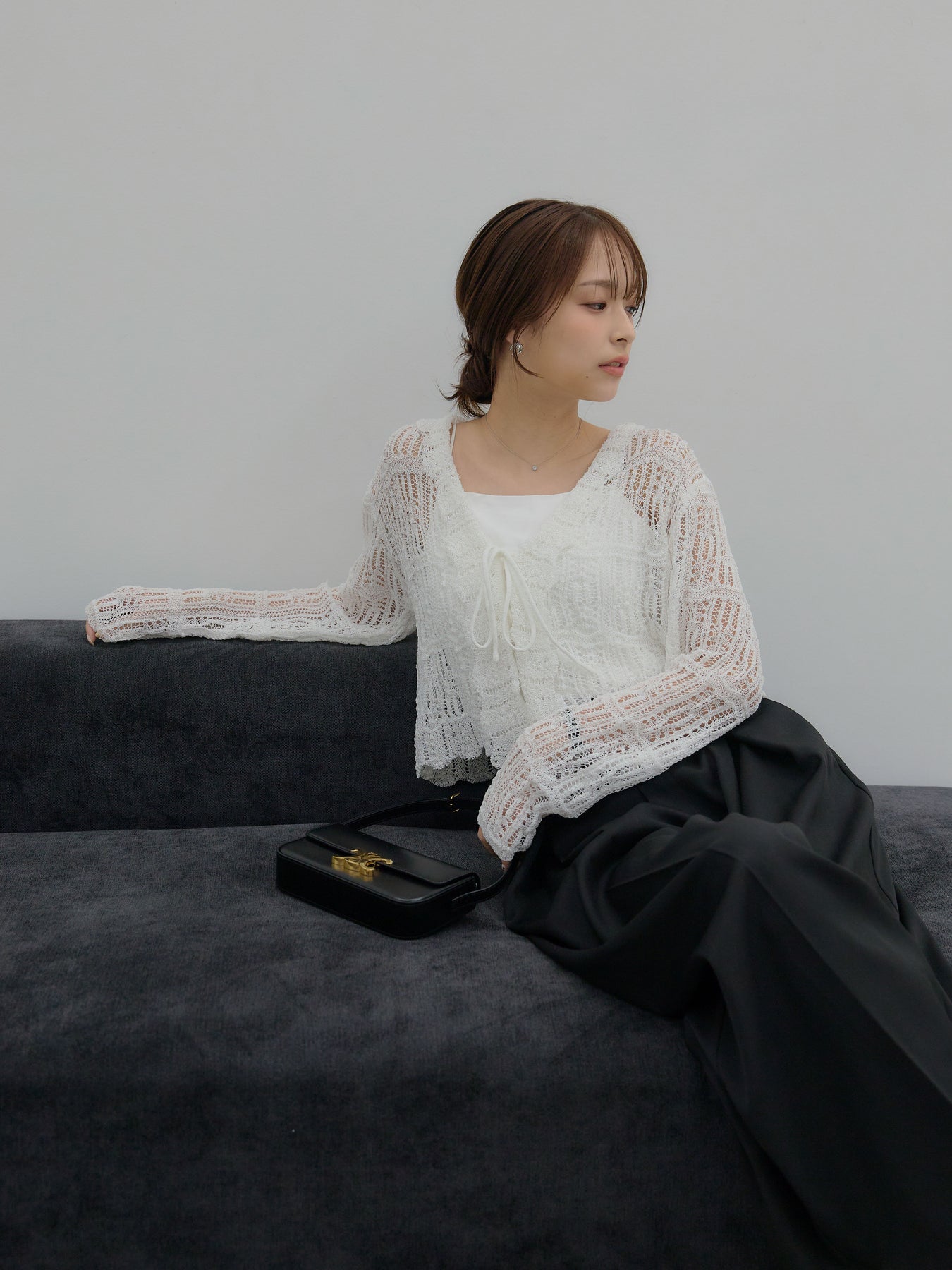繊細な編み柄が印象的な、シアー感のあるカーディガン。