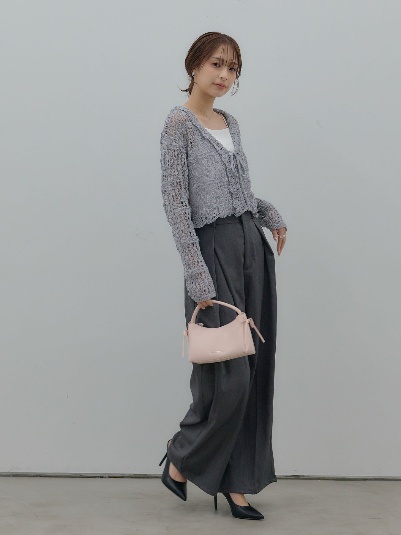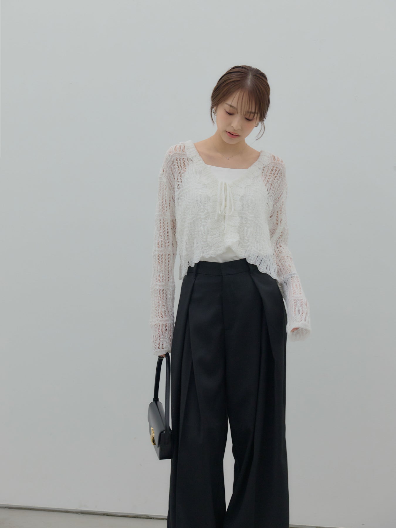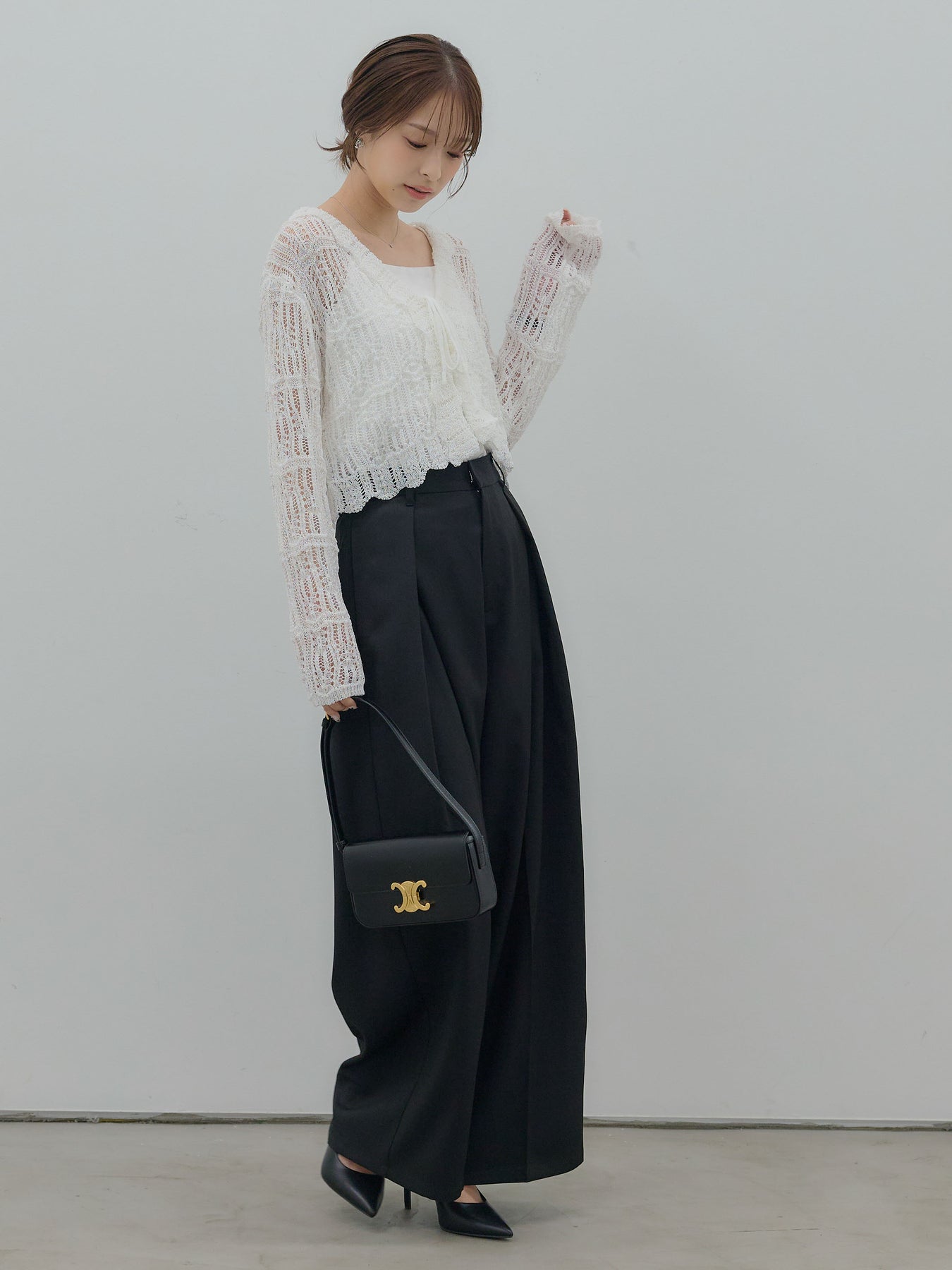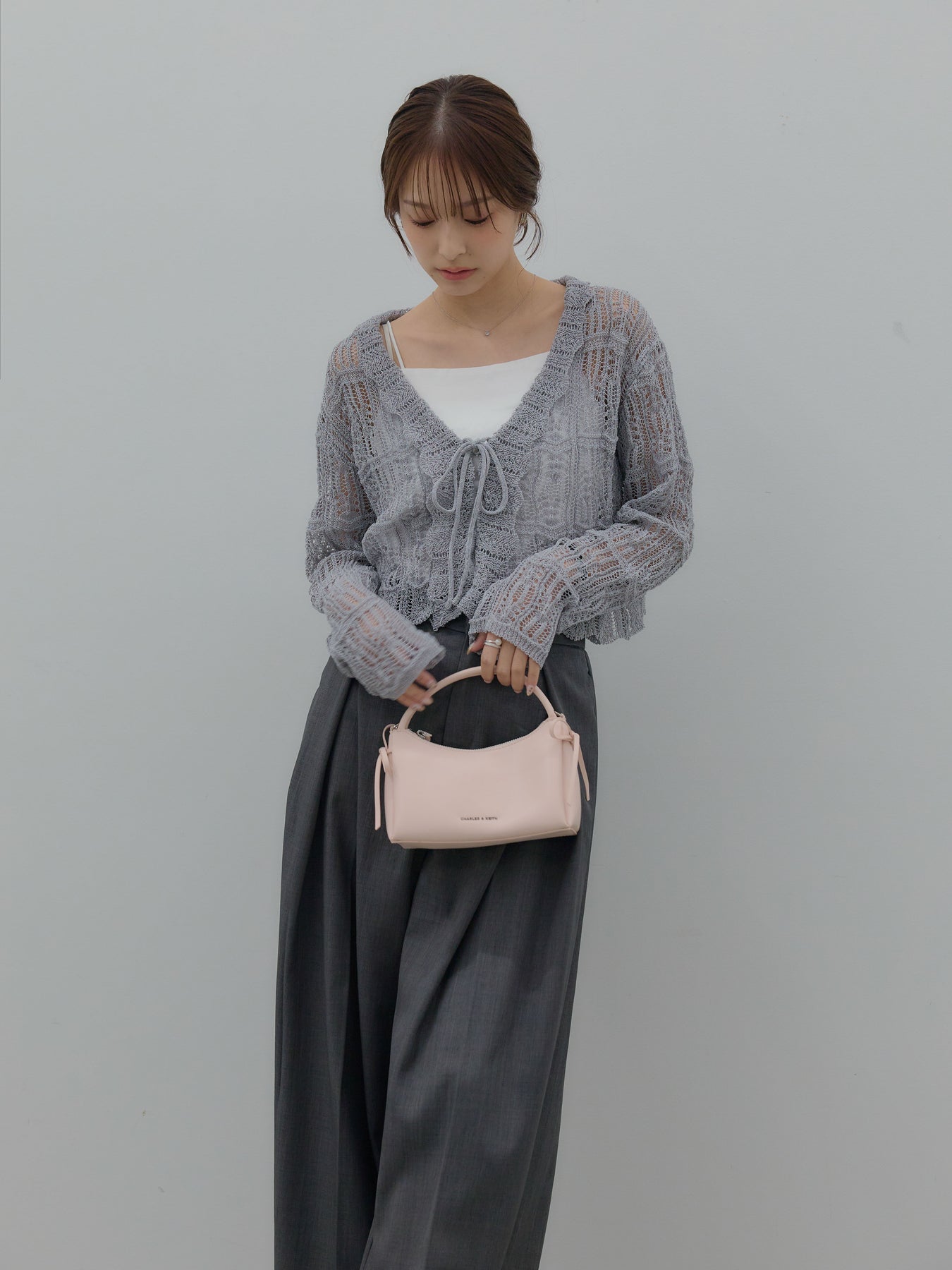 繊細な編み柄が印象的な、シアー感のあるカーディガン。