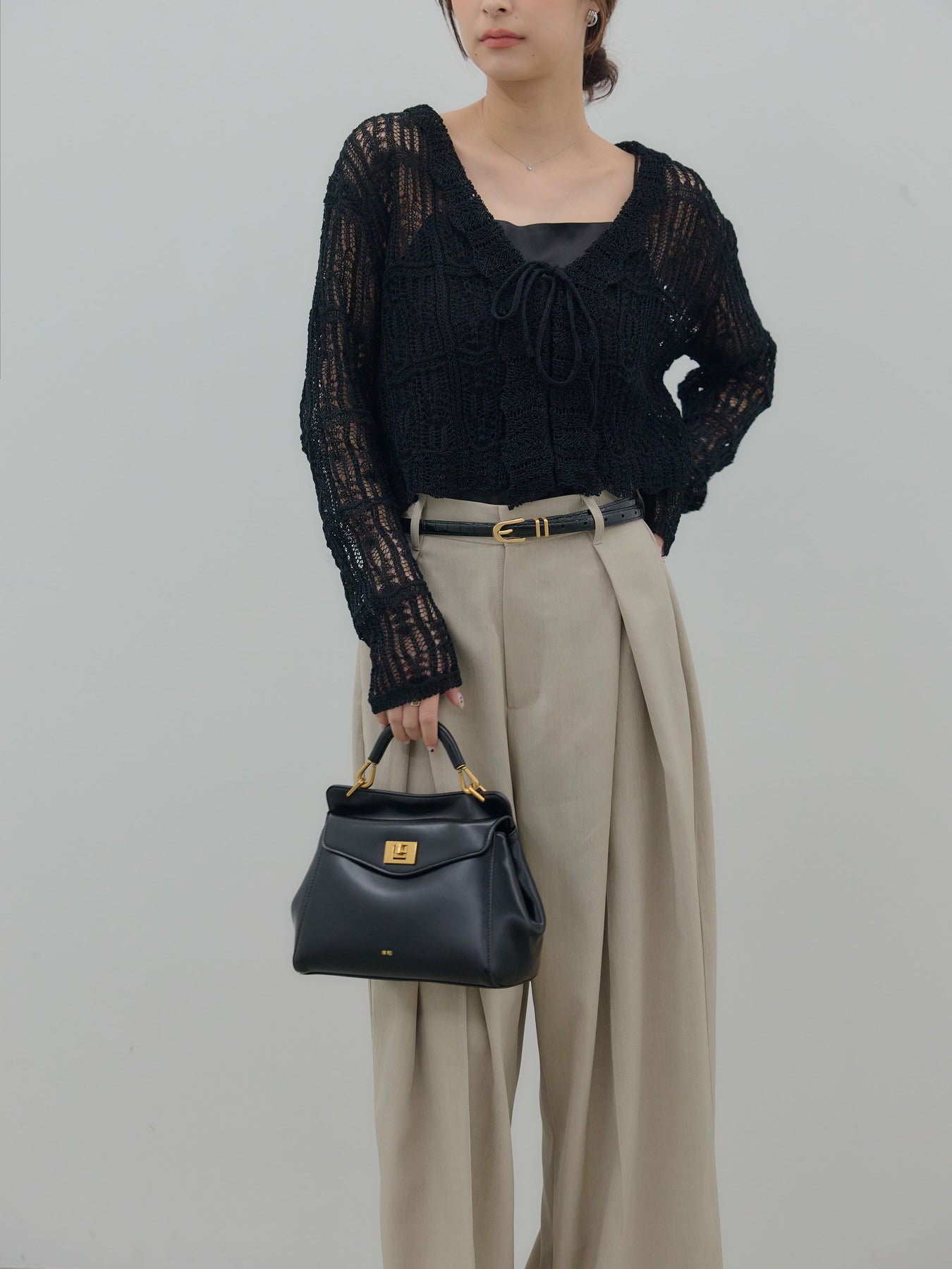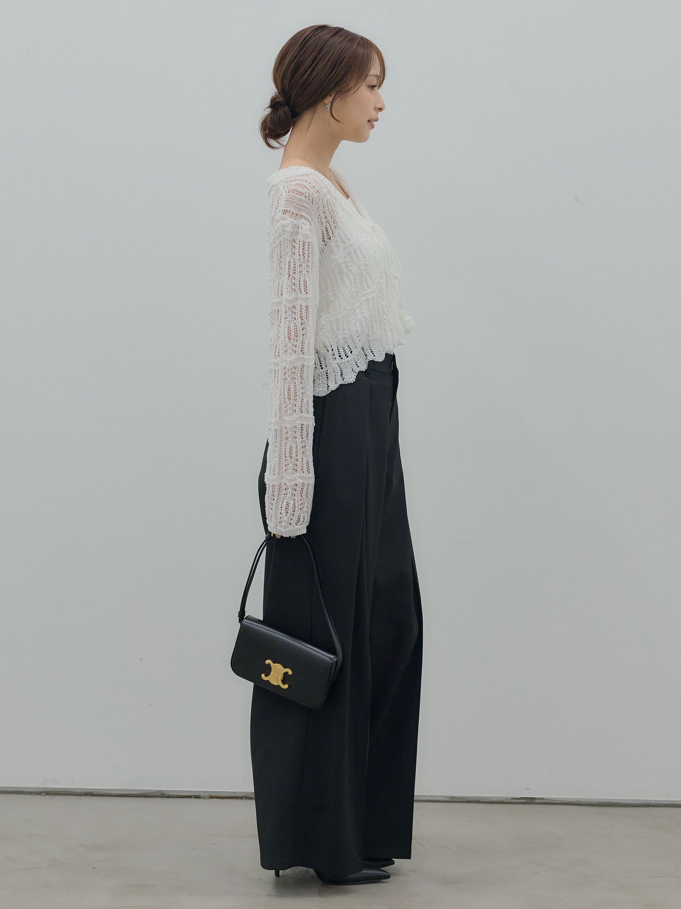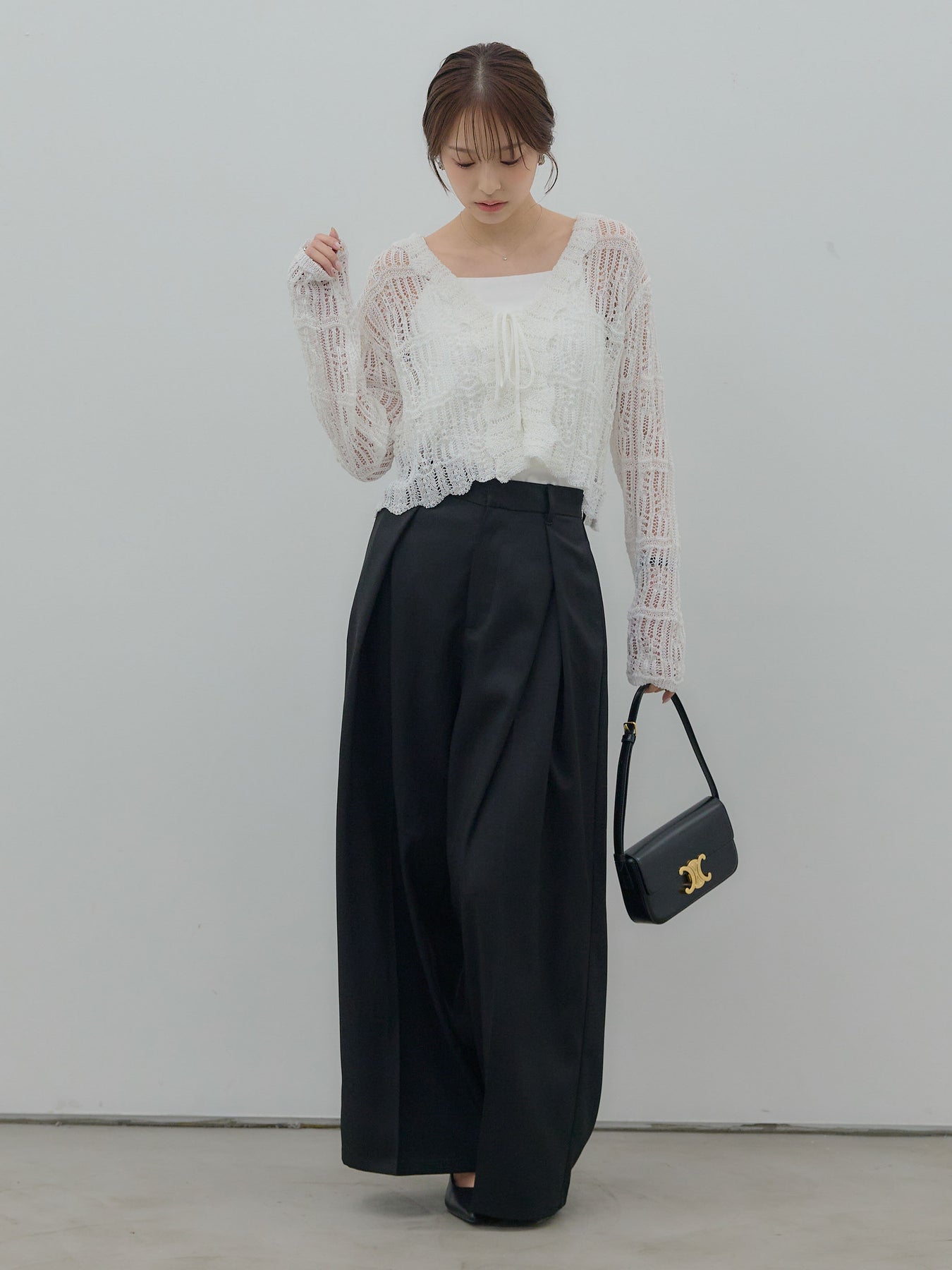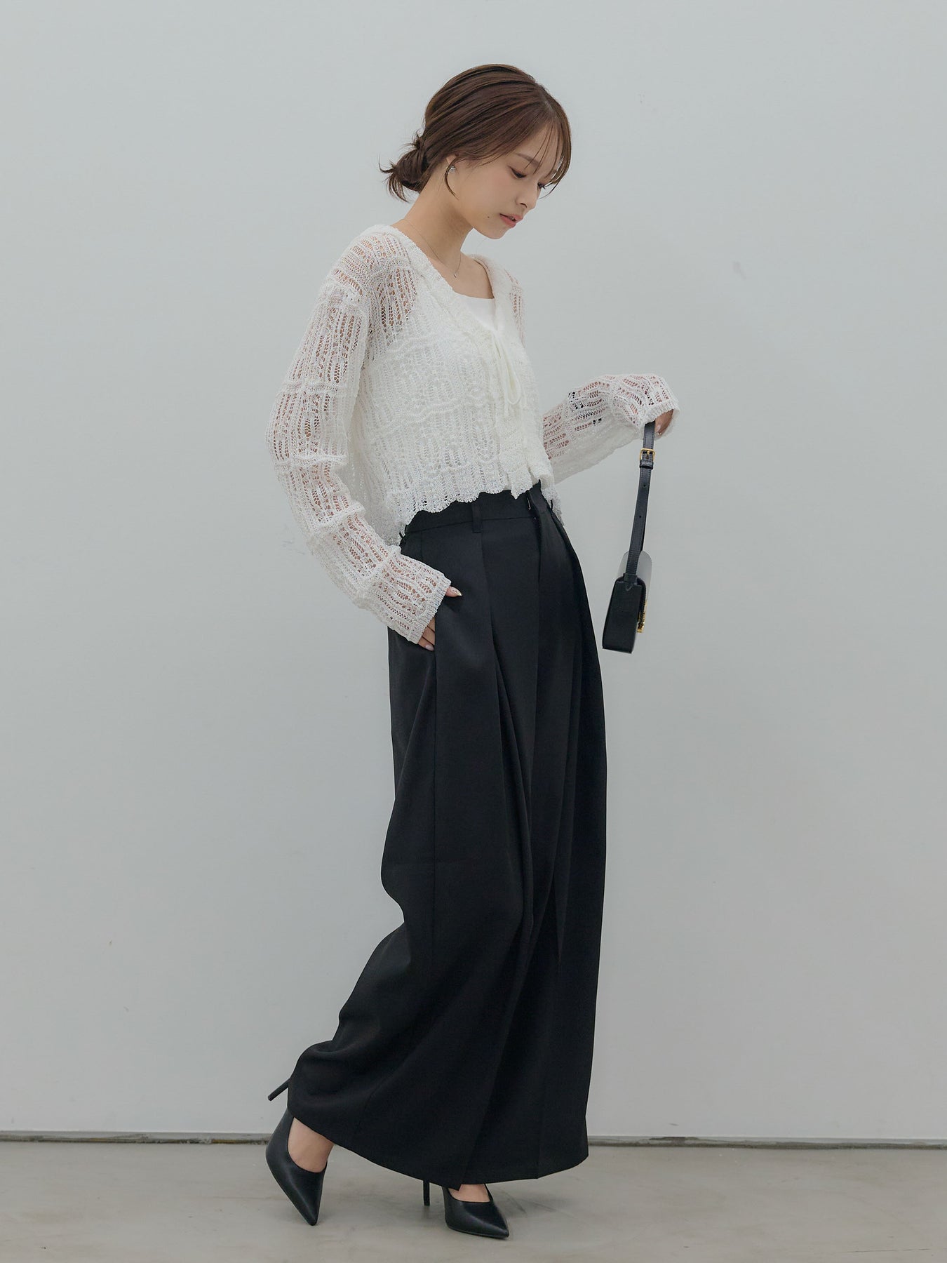 繊細な編み柄が印象的な、シアー感のあるカーディガン。