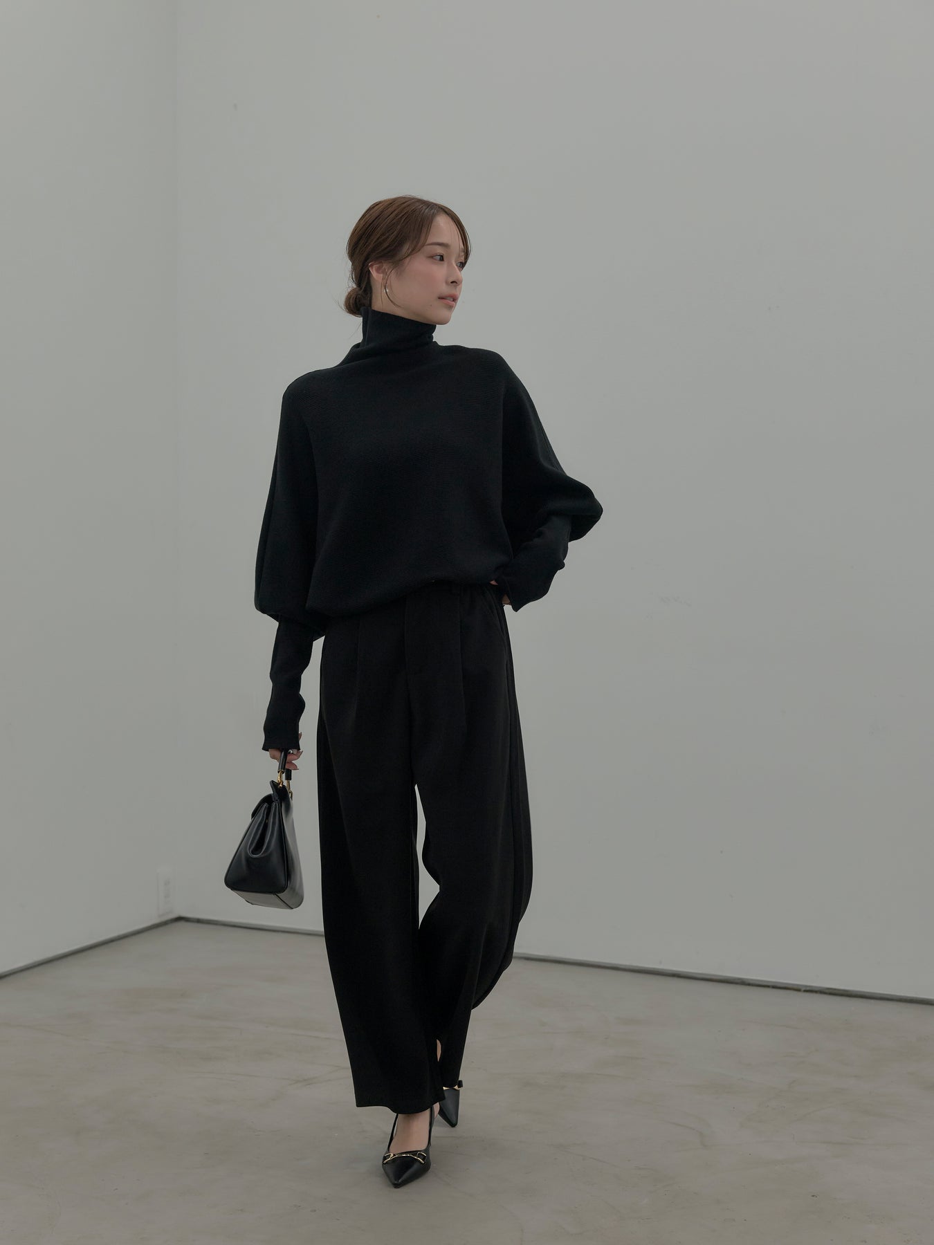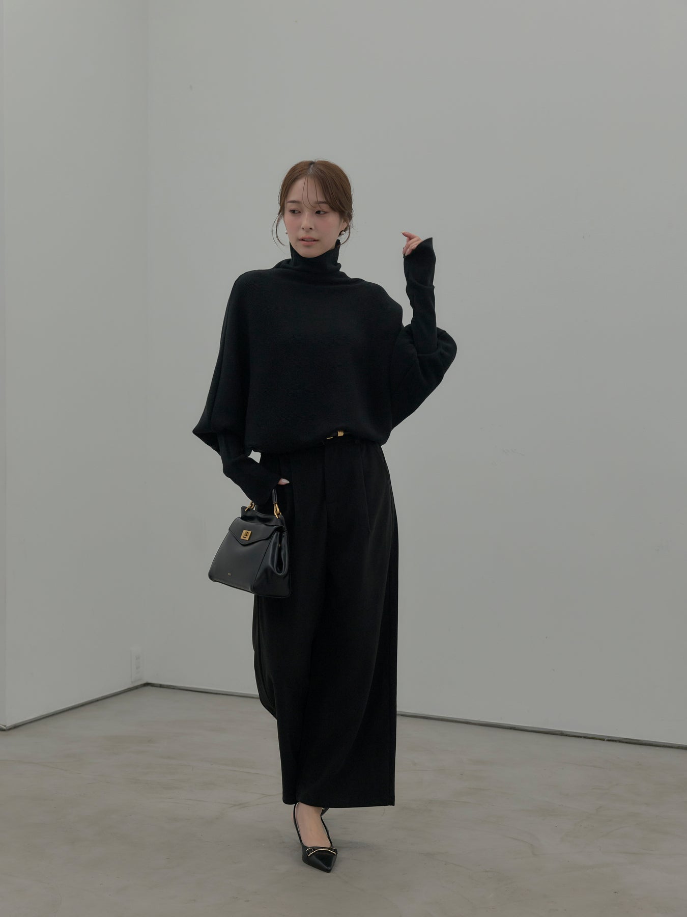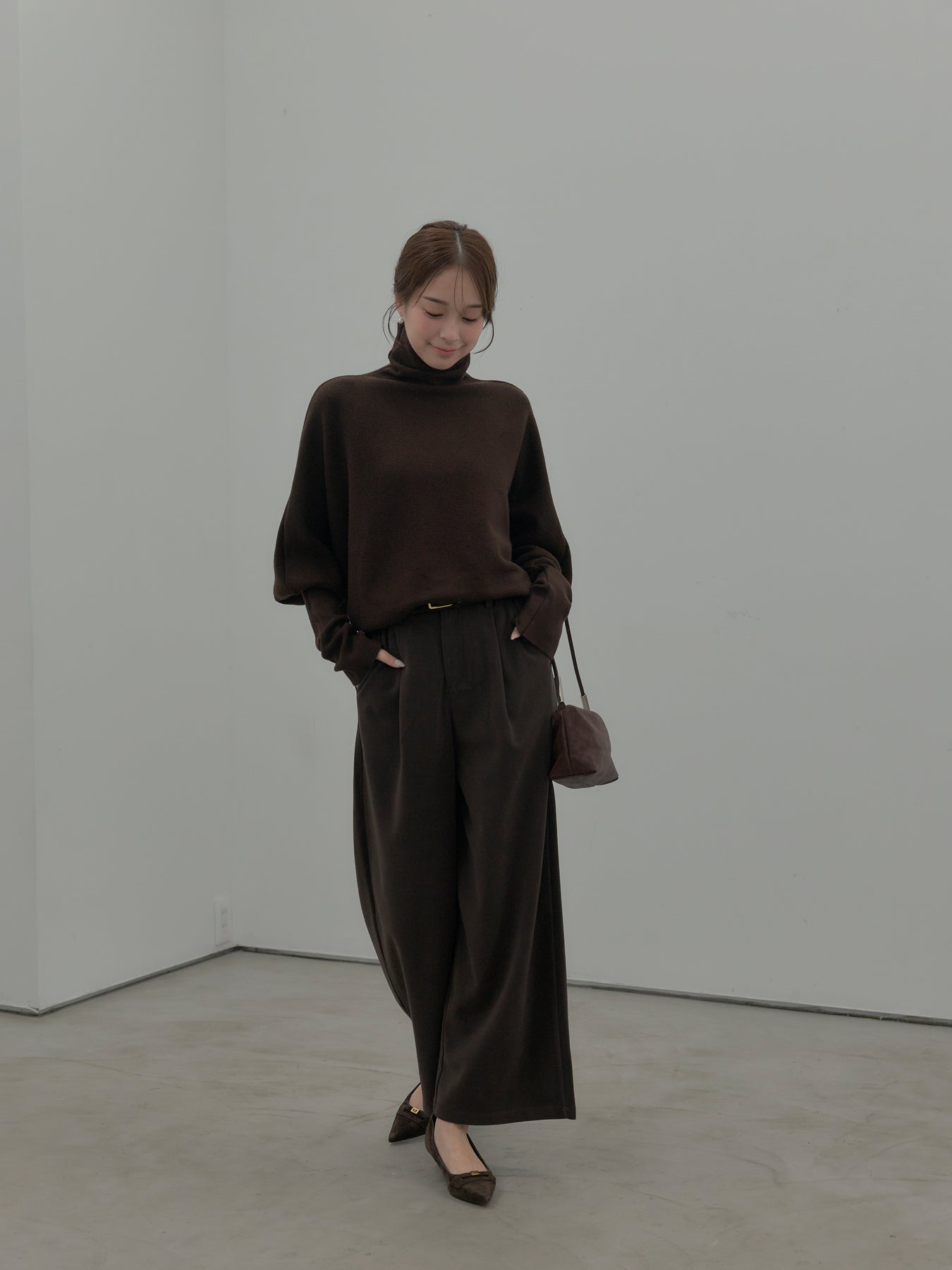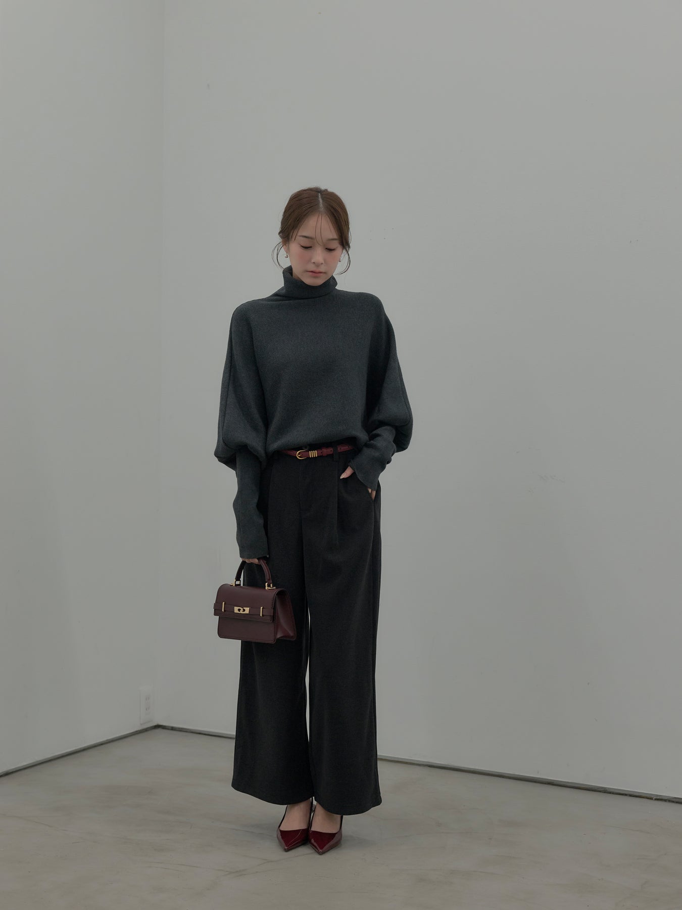 【SET】ドルマンハイネックニットトップス+センタータックウールタッチパンツ(2set)
