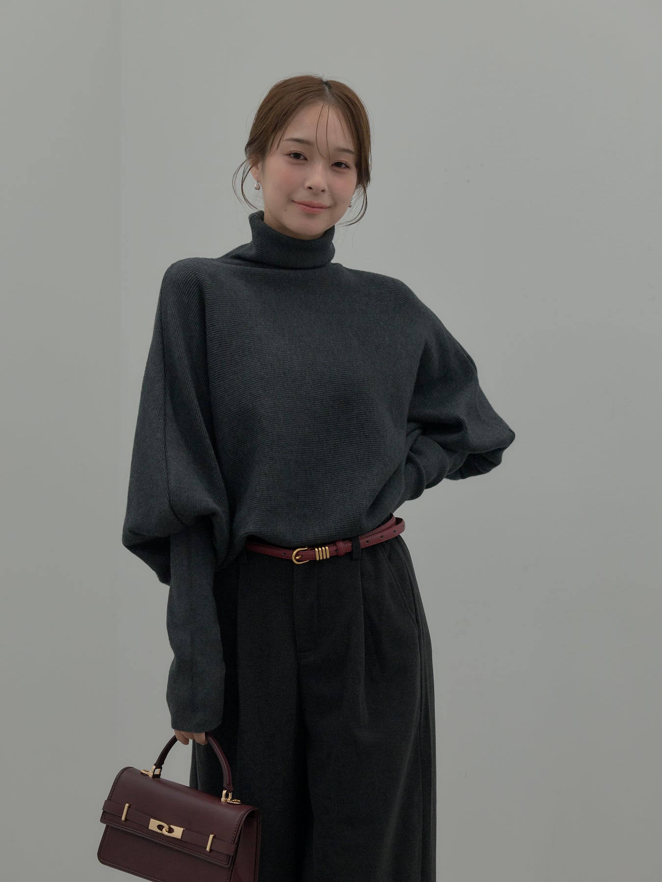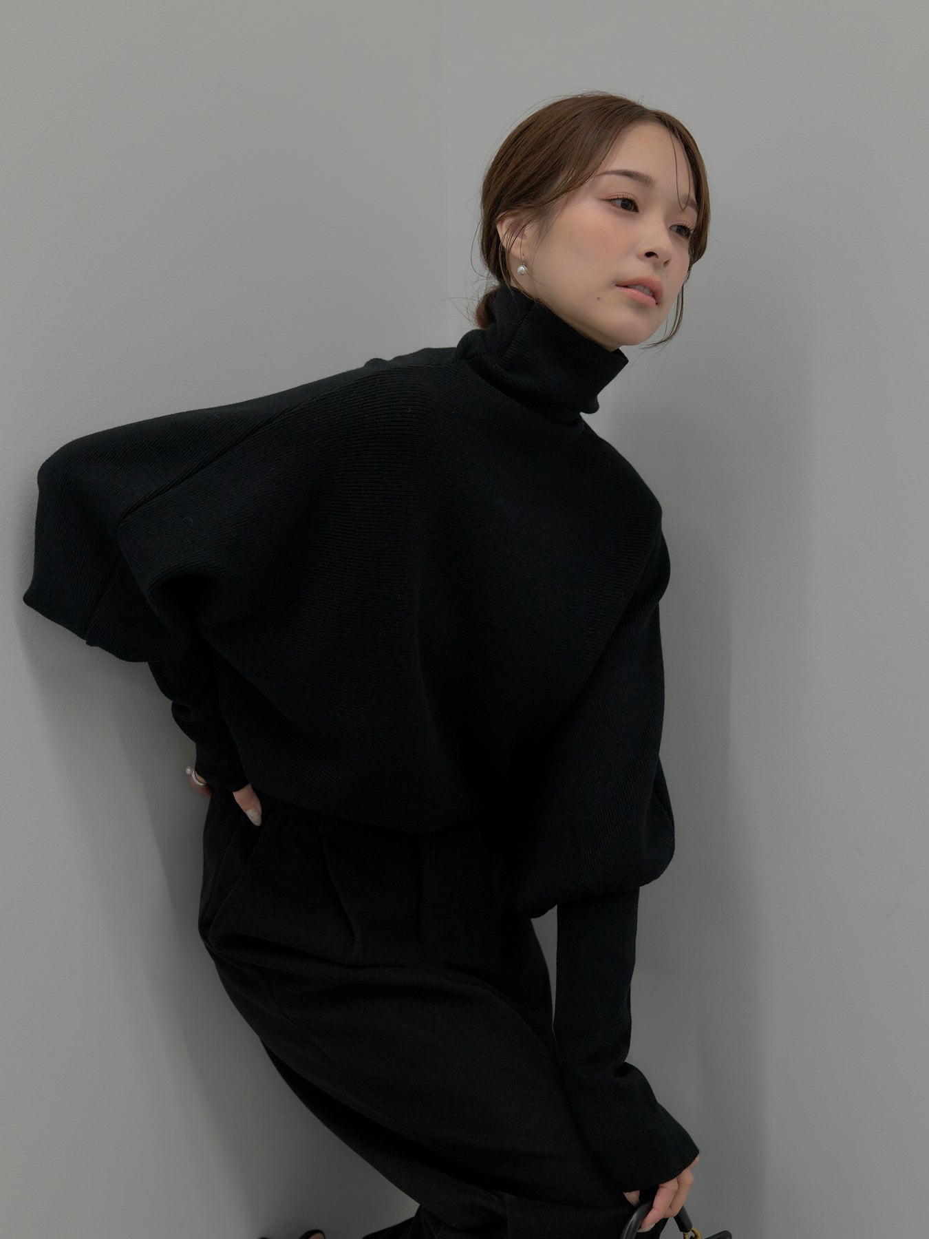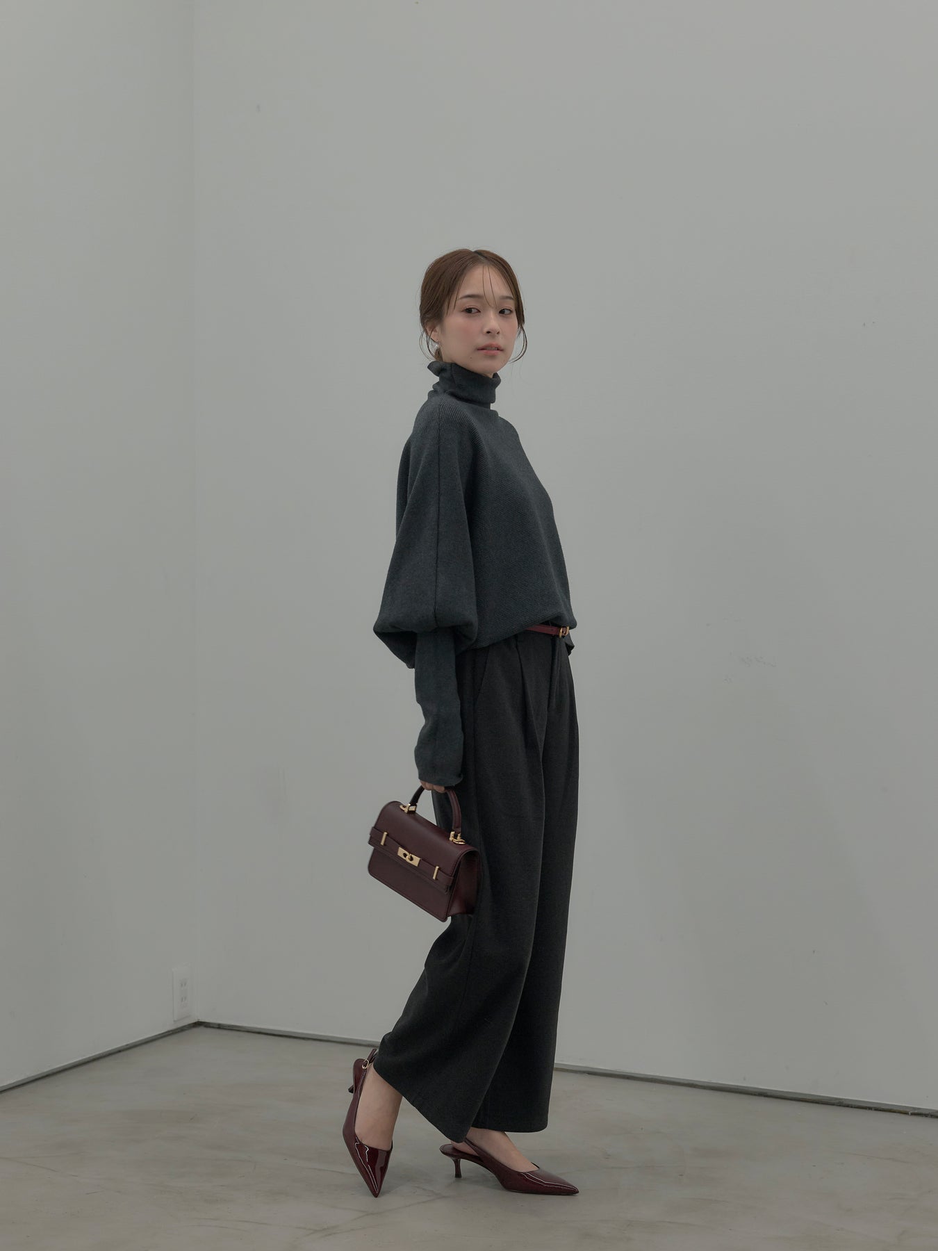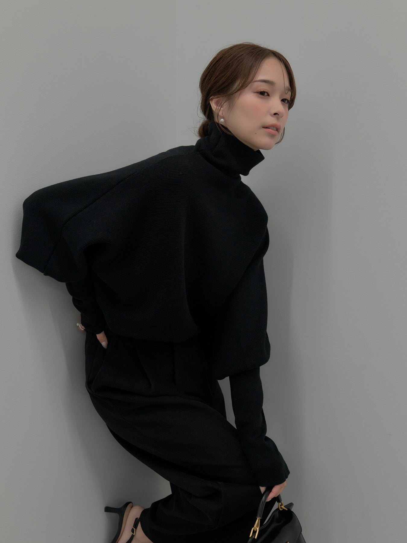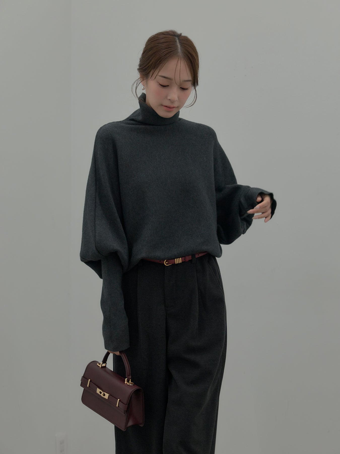 【SET】ドルマンハイネックニットトップス+センタータックウールタッチパンツ(2set)