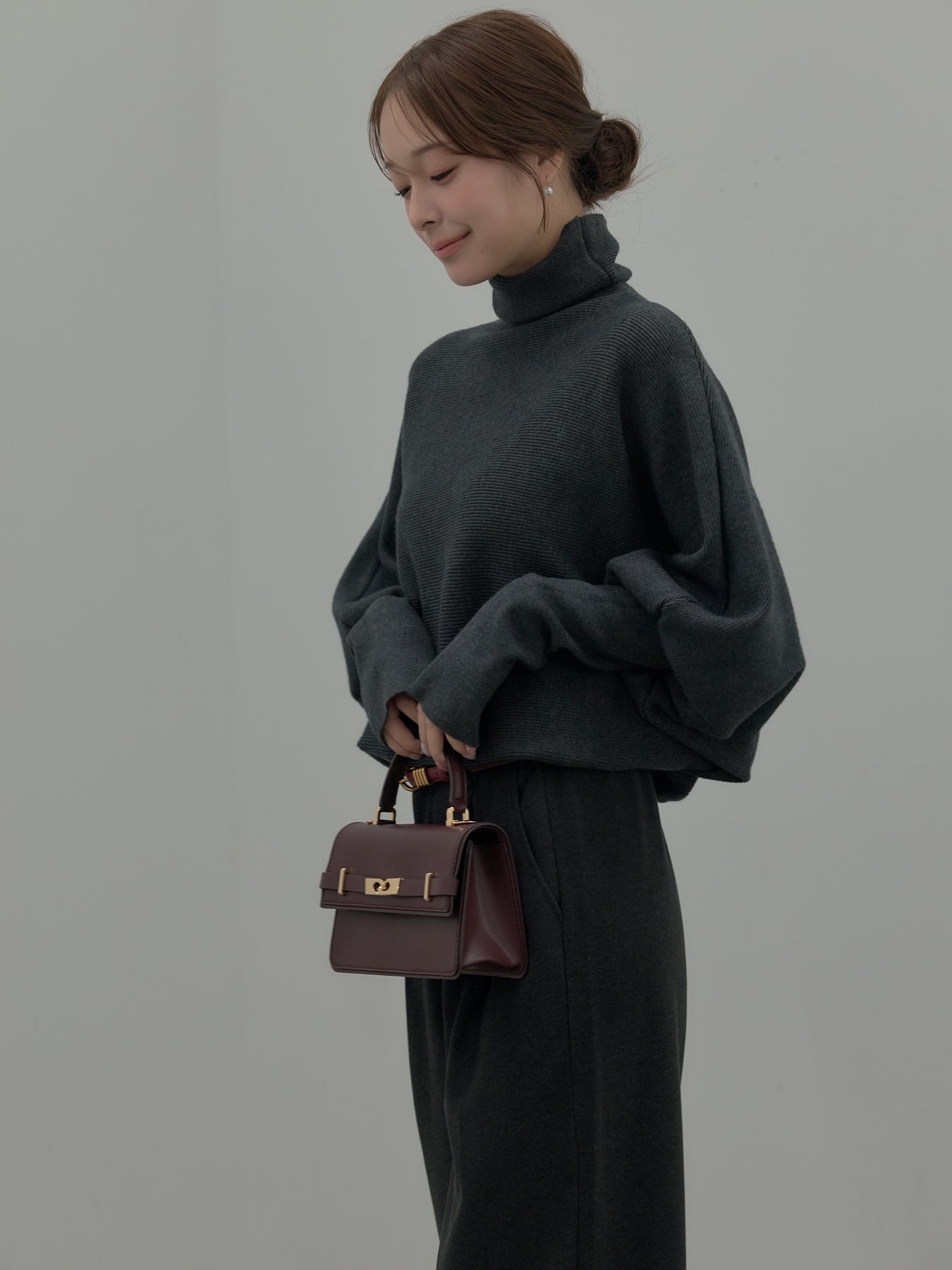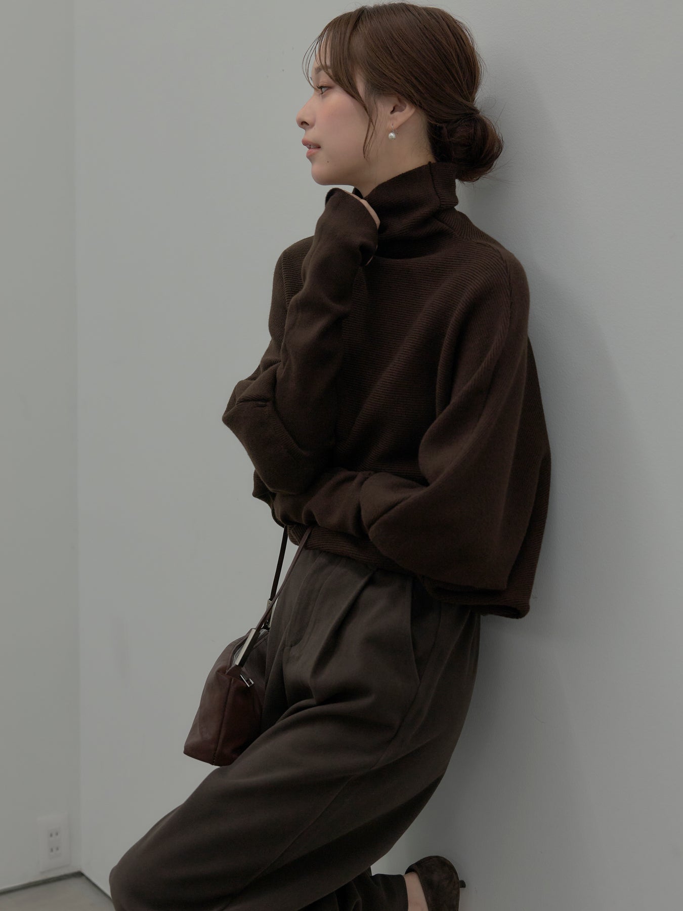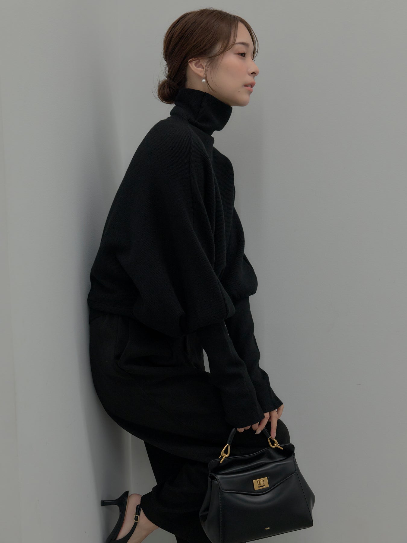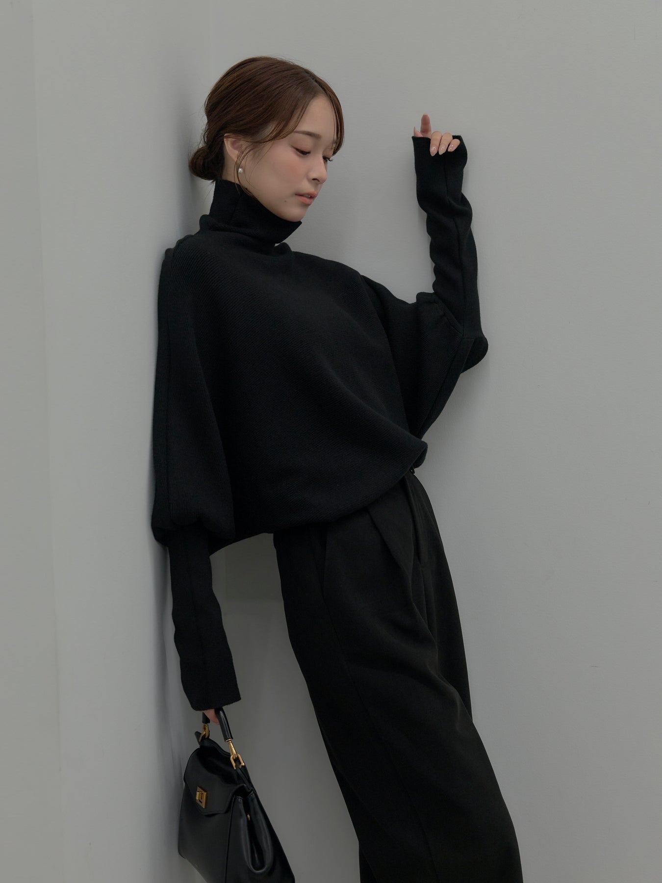 【SET】ドルマンハイネックニットトップス+センタータックウールタッチパンツ(2set)