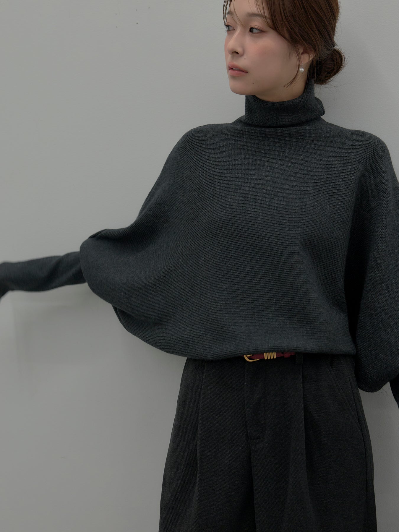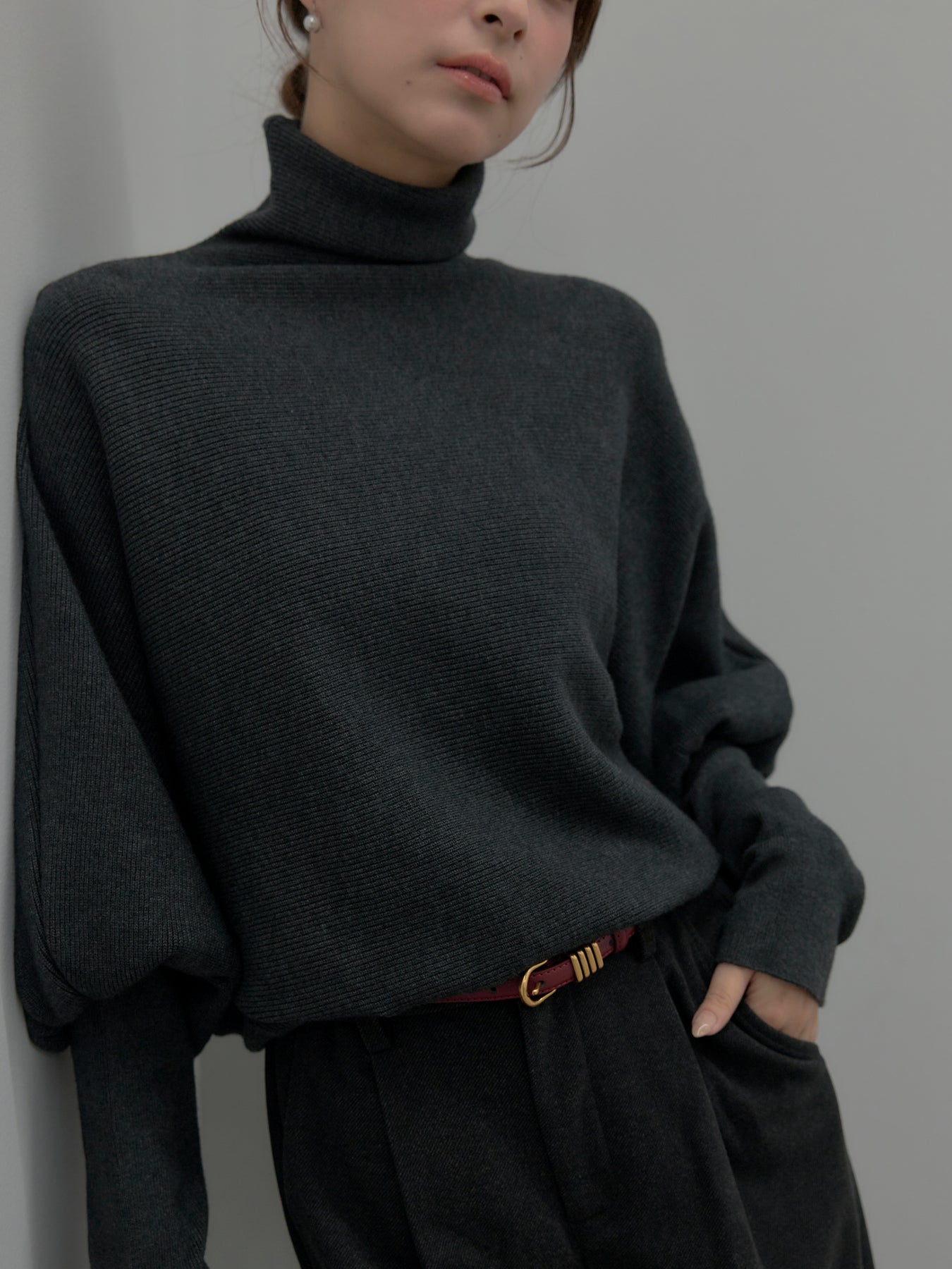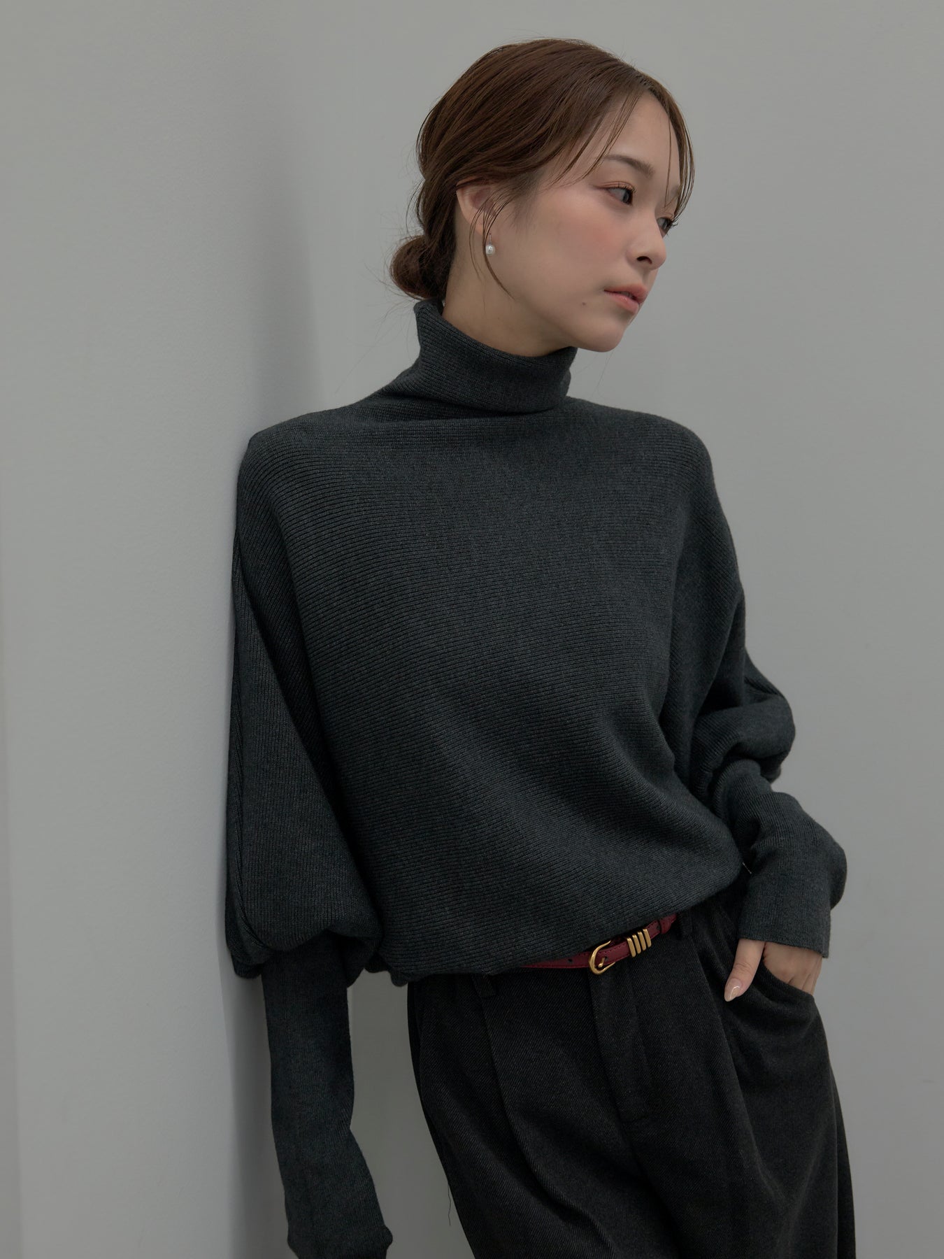 ゆるやかなドルマンスリーブが抜け感をつくるハイネックニットトップス。 程よいボリューム感と落ち感のあるシルエットで、体のラインを上品にカバー。 一枚でこなれた雰囲気が完成する、万能ニットです。