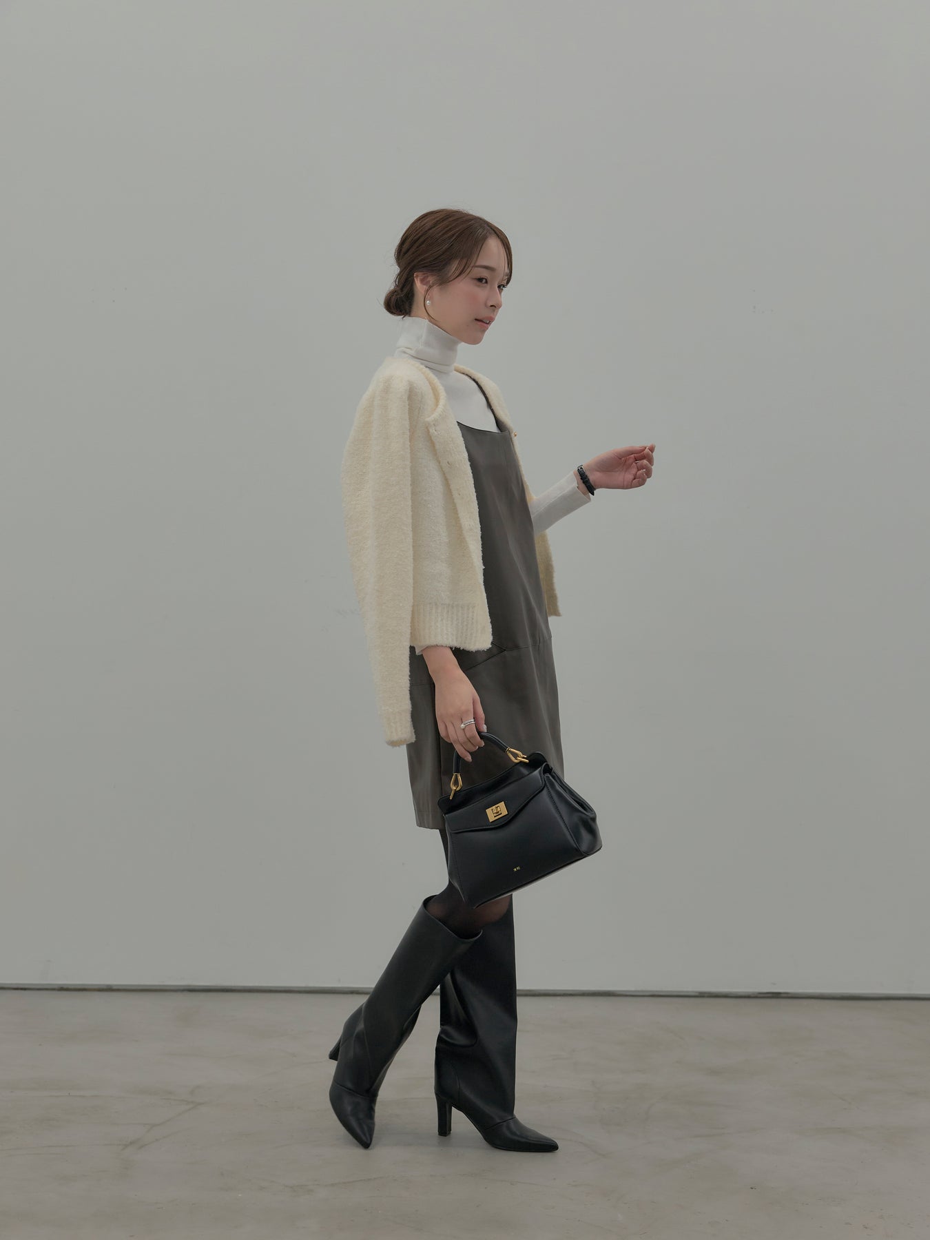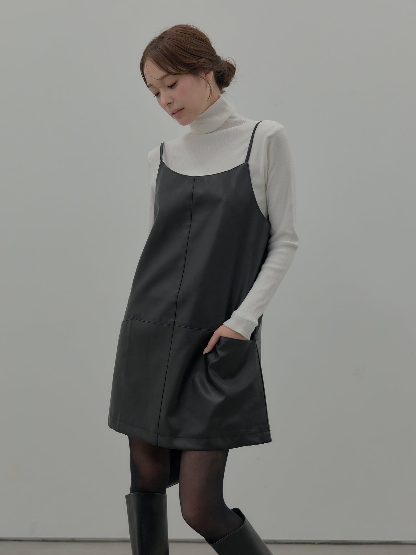 上品な艶のあるフェイクレザーが大人の存在感を引き立てるキャミソールワンピース。 すっきりとしたIラインでスタイルアップが叶い、インナー次第でロングシーズン着回せます。 一枚でモードな雰囲気が完成する、主役ワンピースです。