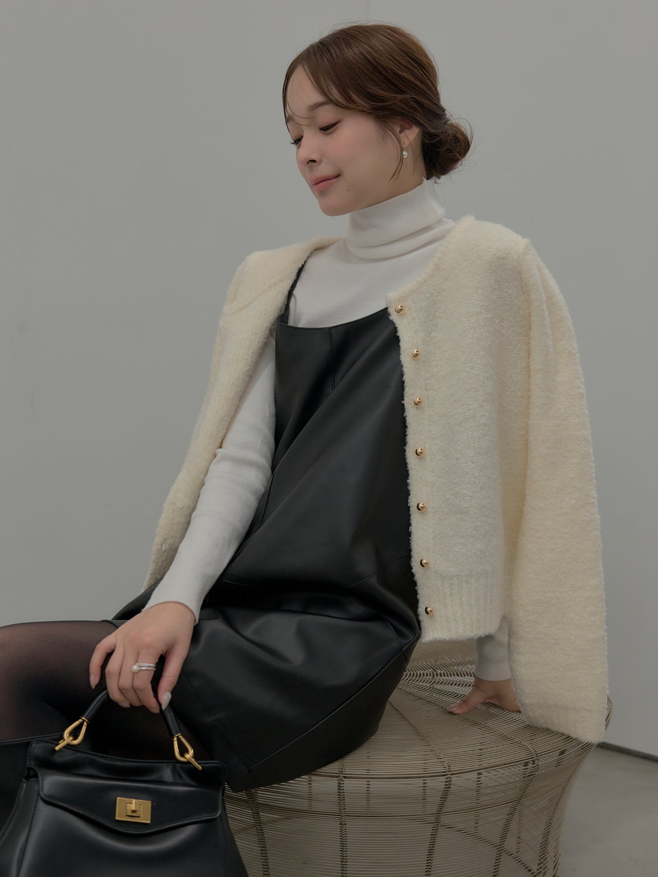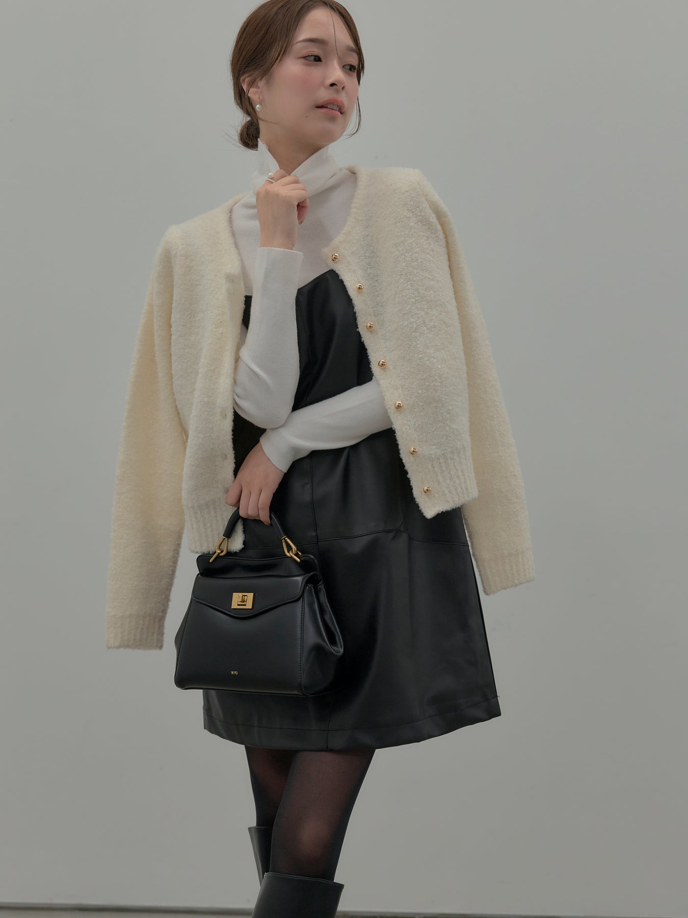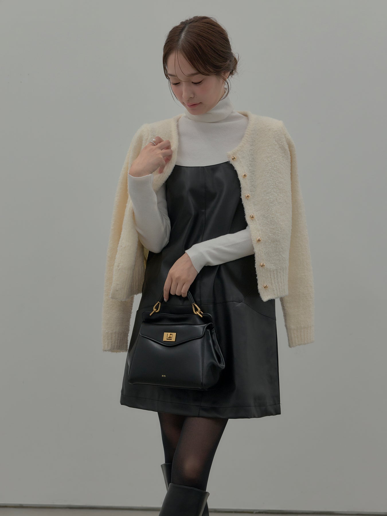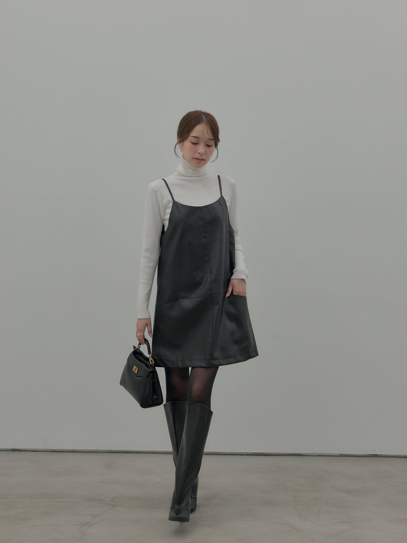 【SET】レザーキャミソールワンピース+ベーシックリブタートルネック(2set)