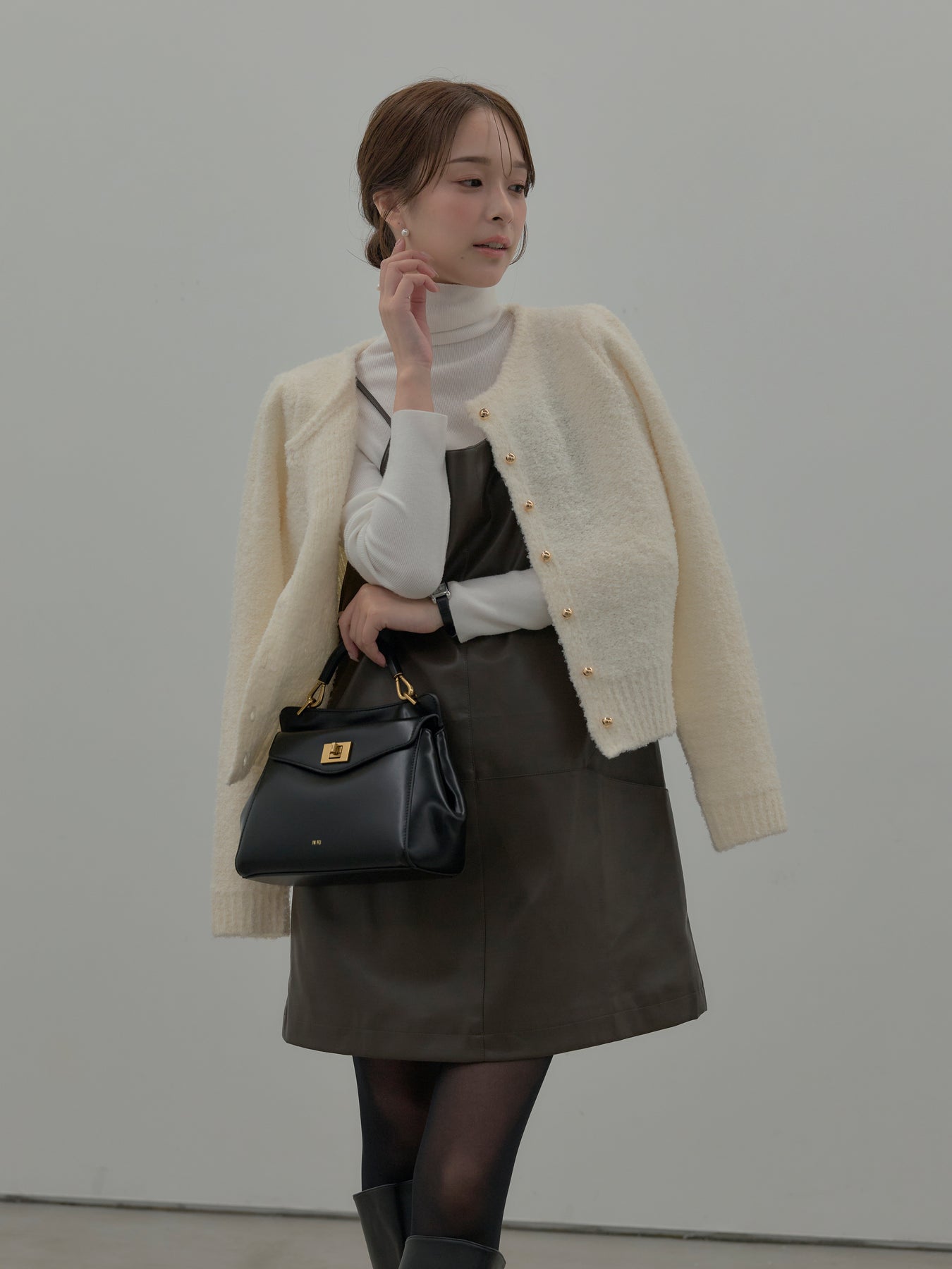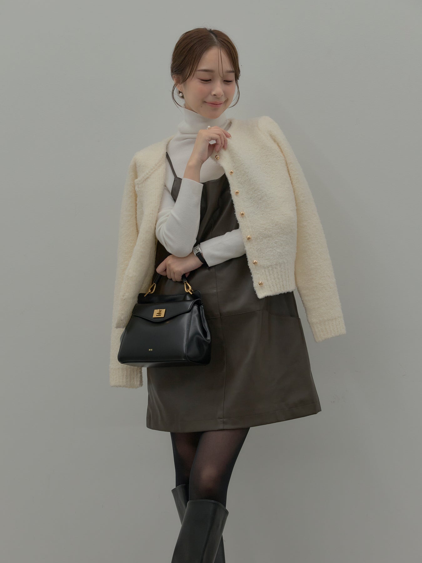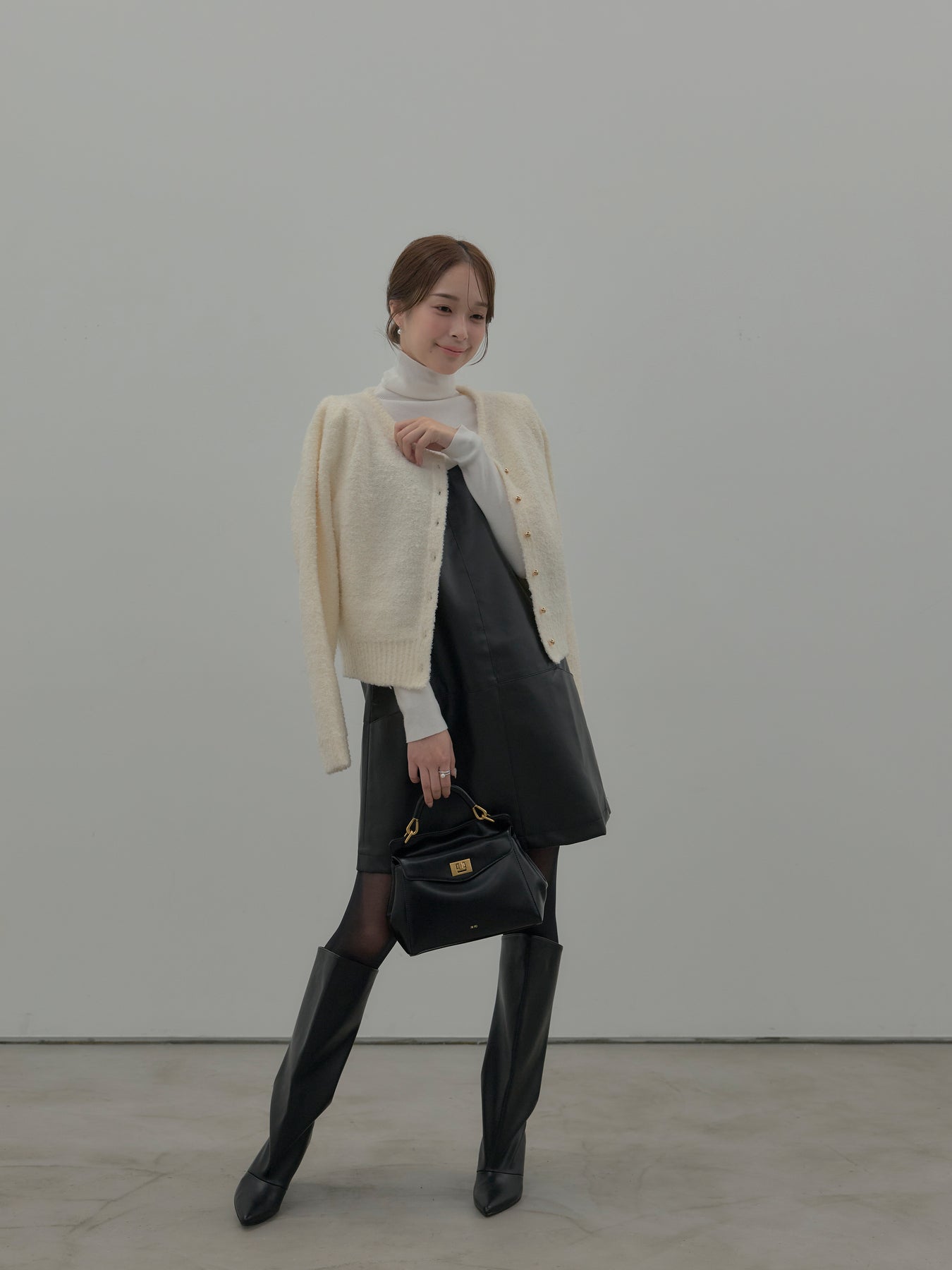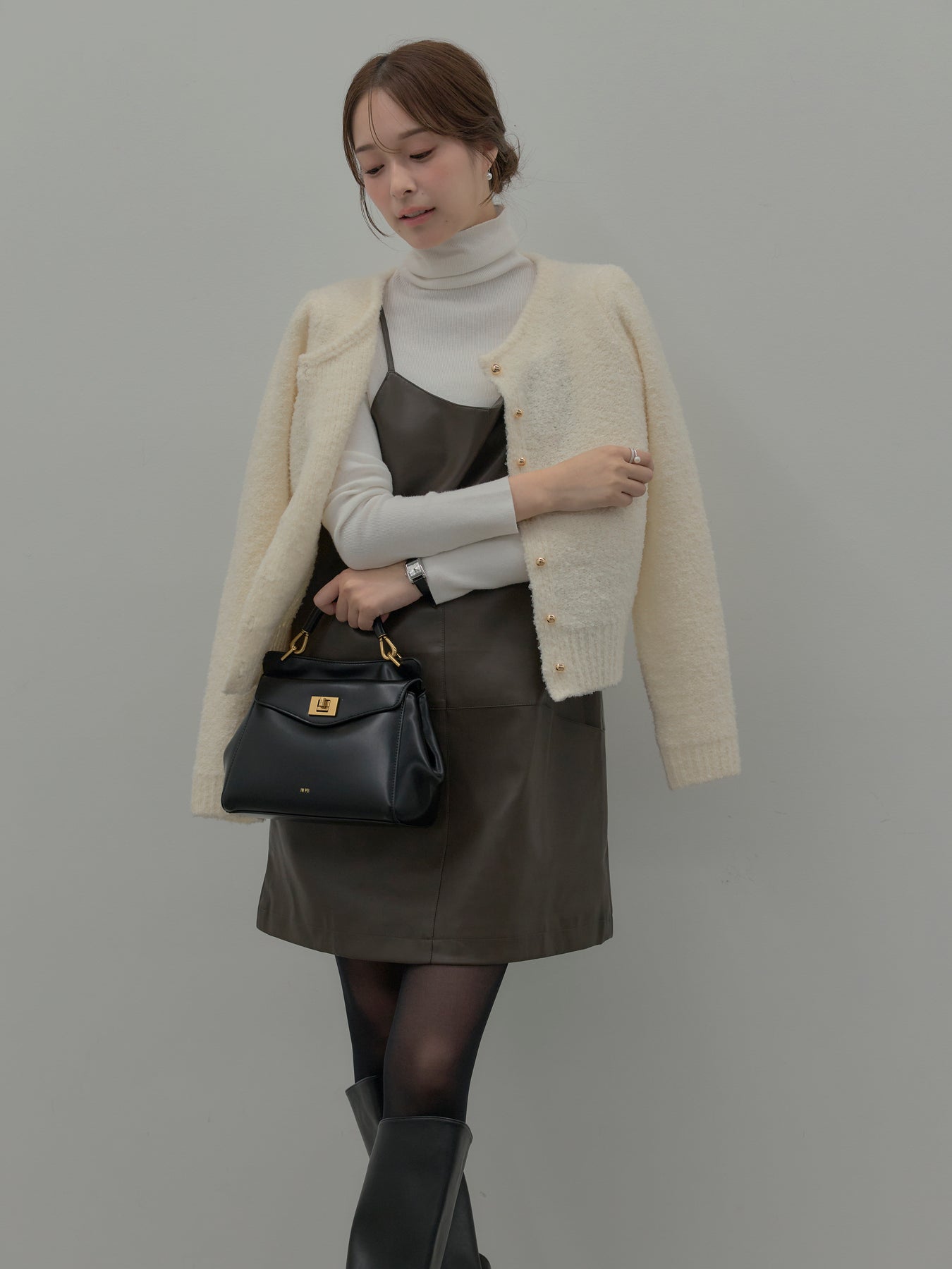 【SET】レザーキャミソールワンピース+ベーシックリブタートルネック(2set)