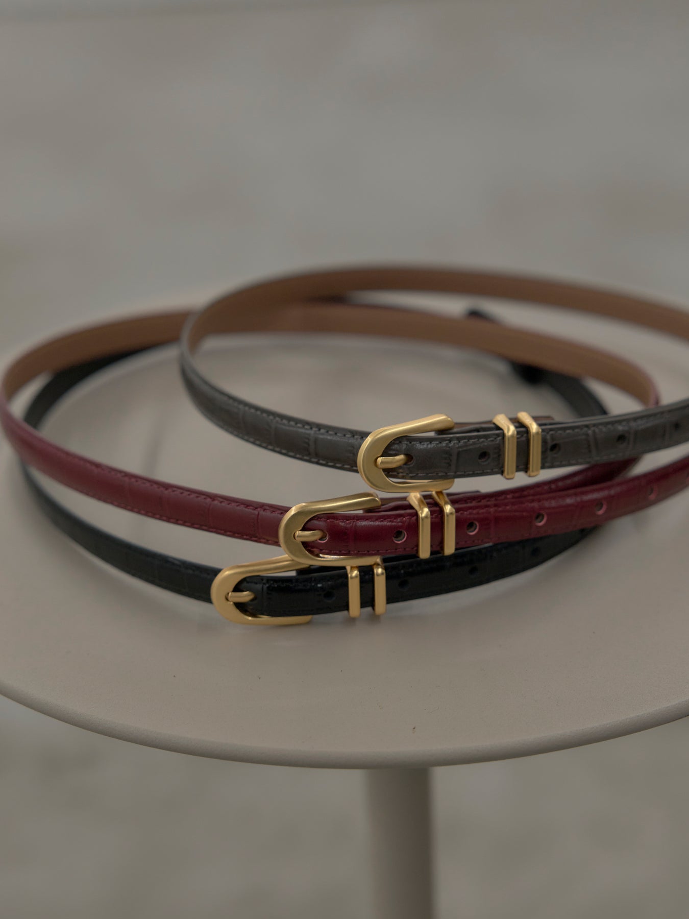 【SET】ベーシックゴールドミニバックルベルト+クロコ調エンボスミニバックルベルト(2set)
